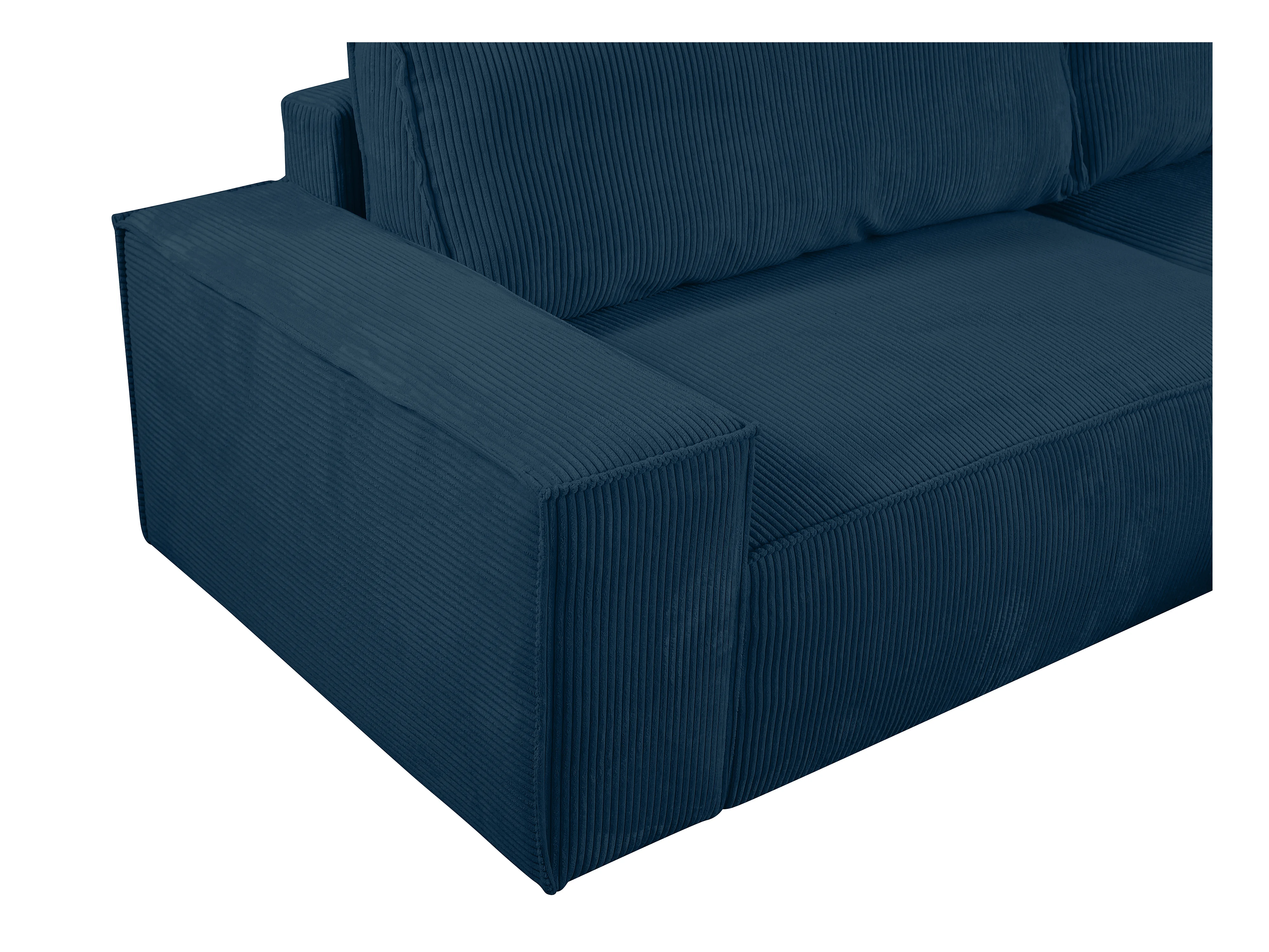 Canapé d'angle droit convertible en velours côtelé bleu AMELIA