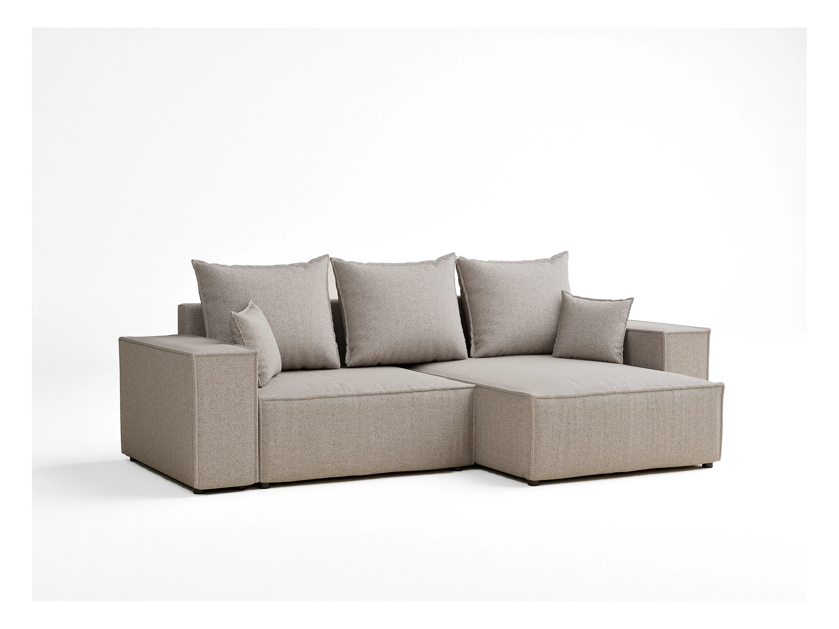 Canapé d'angle convertible Moyo im tissu tresse - 3 places - beige clair