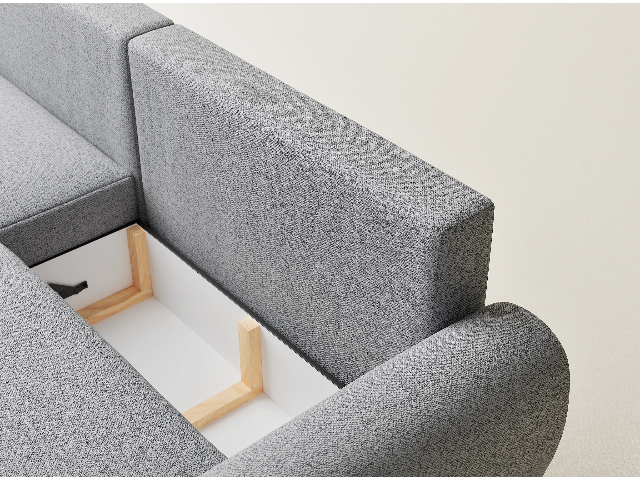 Canapé d'angle convertible Numba im tissu tresse - 3 places - gris clair