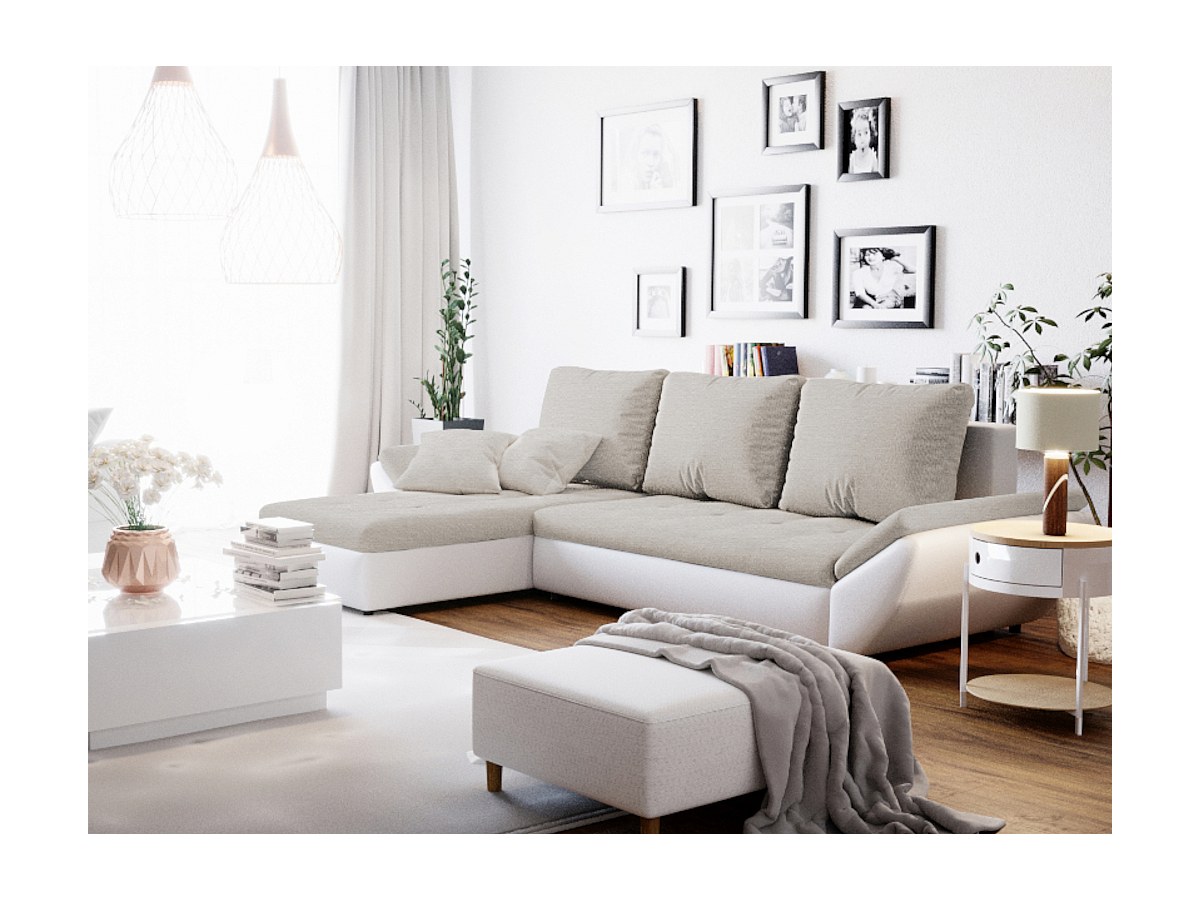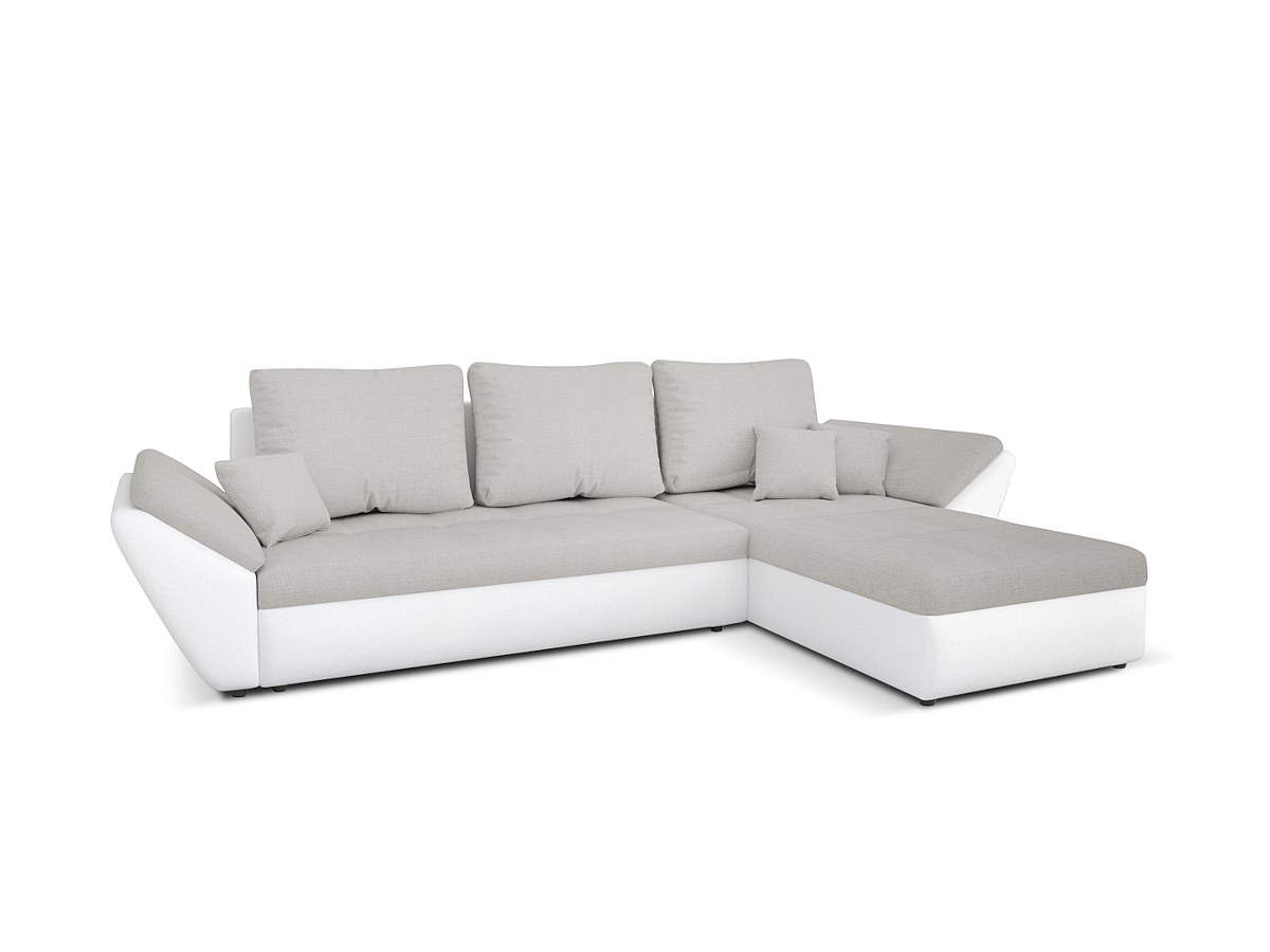 Canapé d'angle convertible réversible en tissu et simili CARRY - Blanc et gris clair