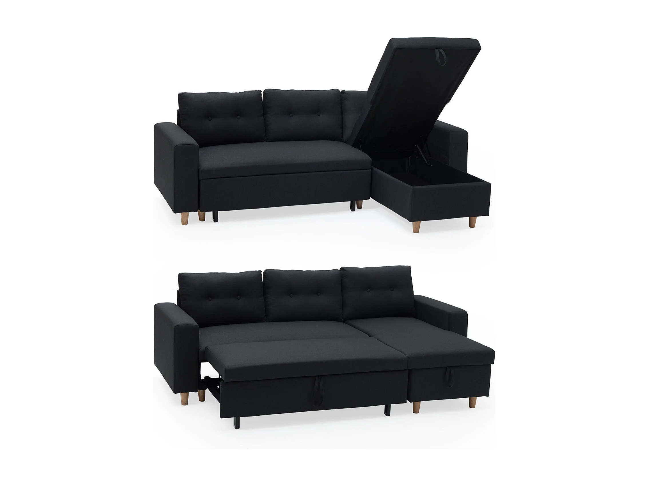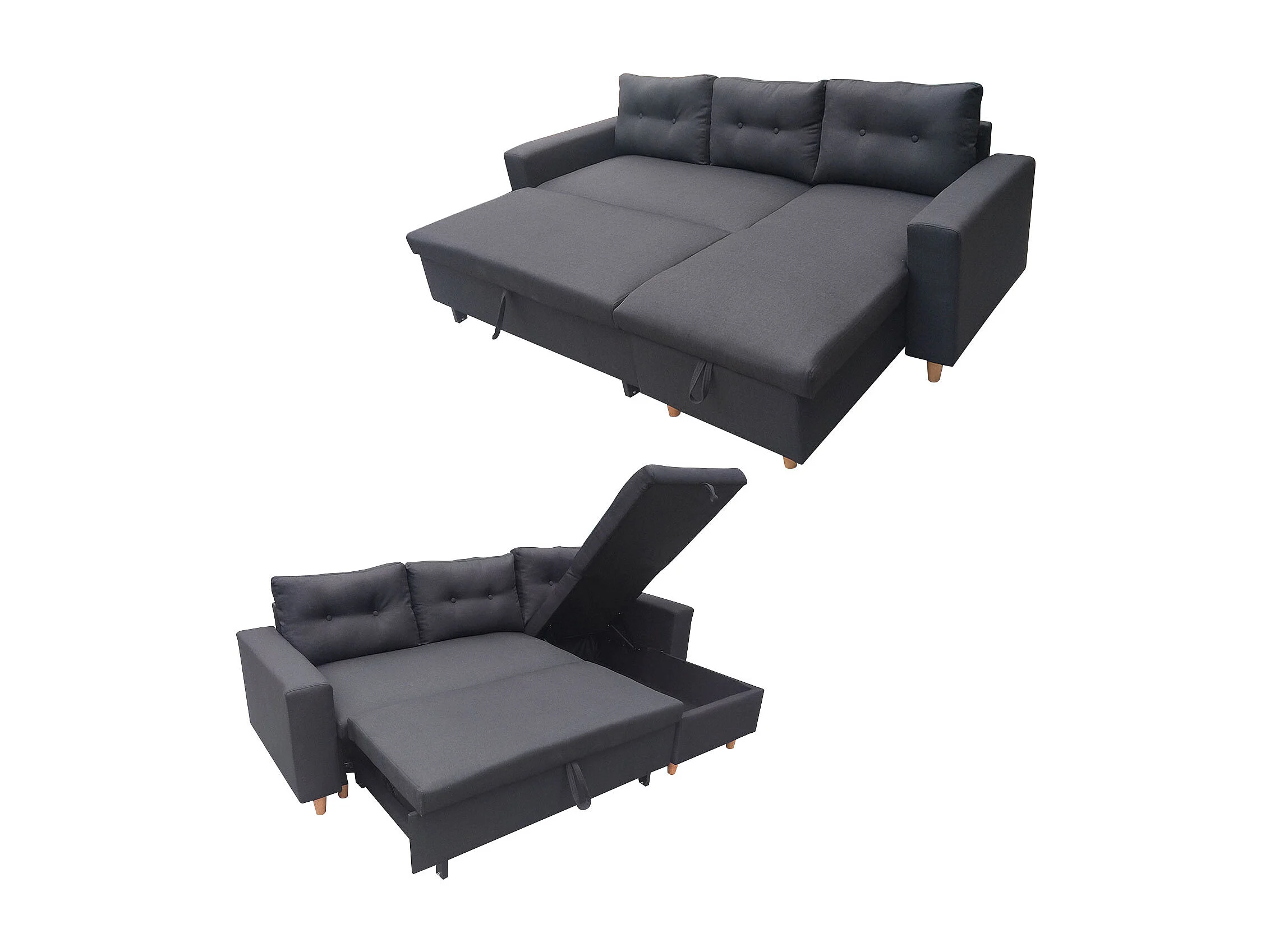 Canapé d'angle convertible WADE 3 places gris anthracite - HAPPY GARDEN