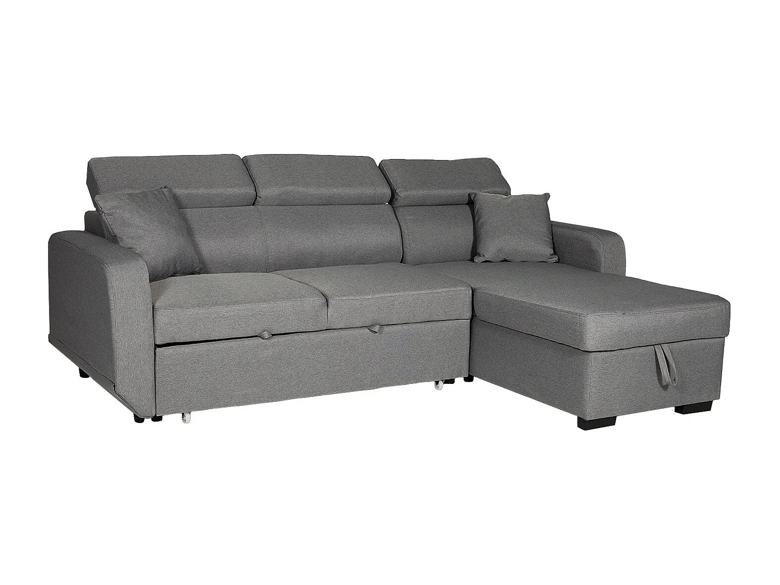 Canapé d'angle convertible WARREN 3 places gris avec méridienne réversible et coffre de rangement