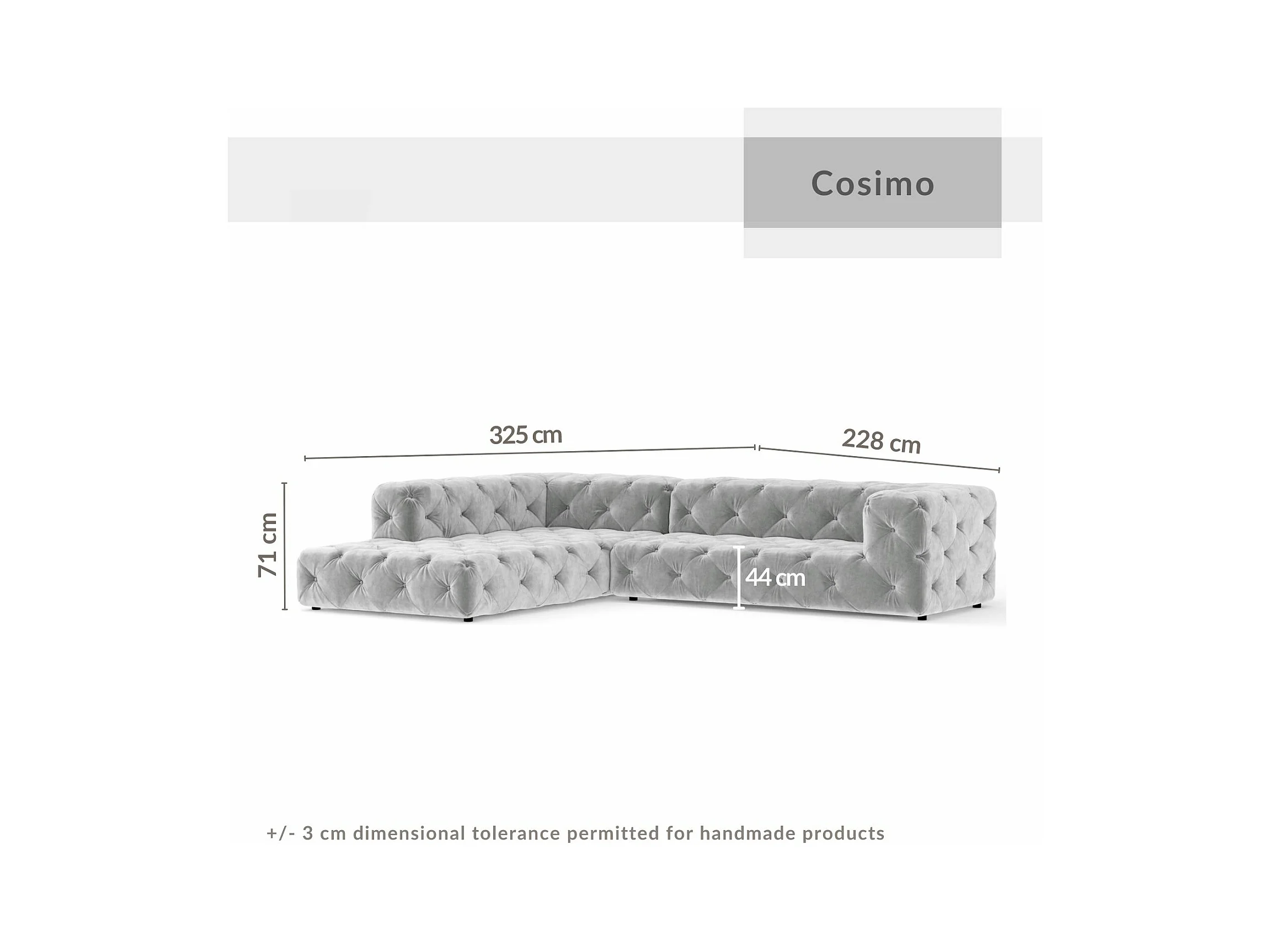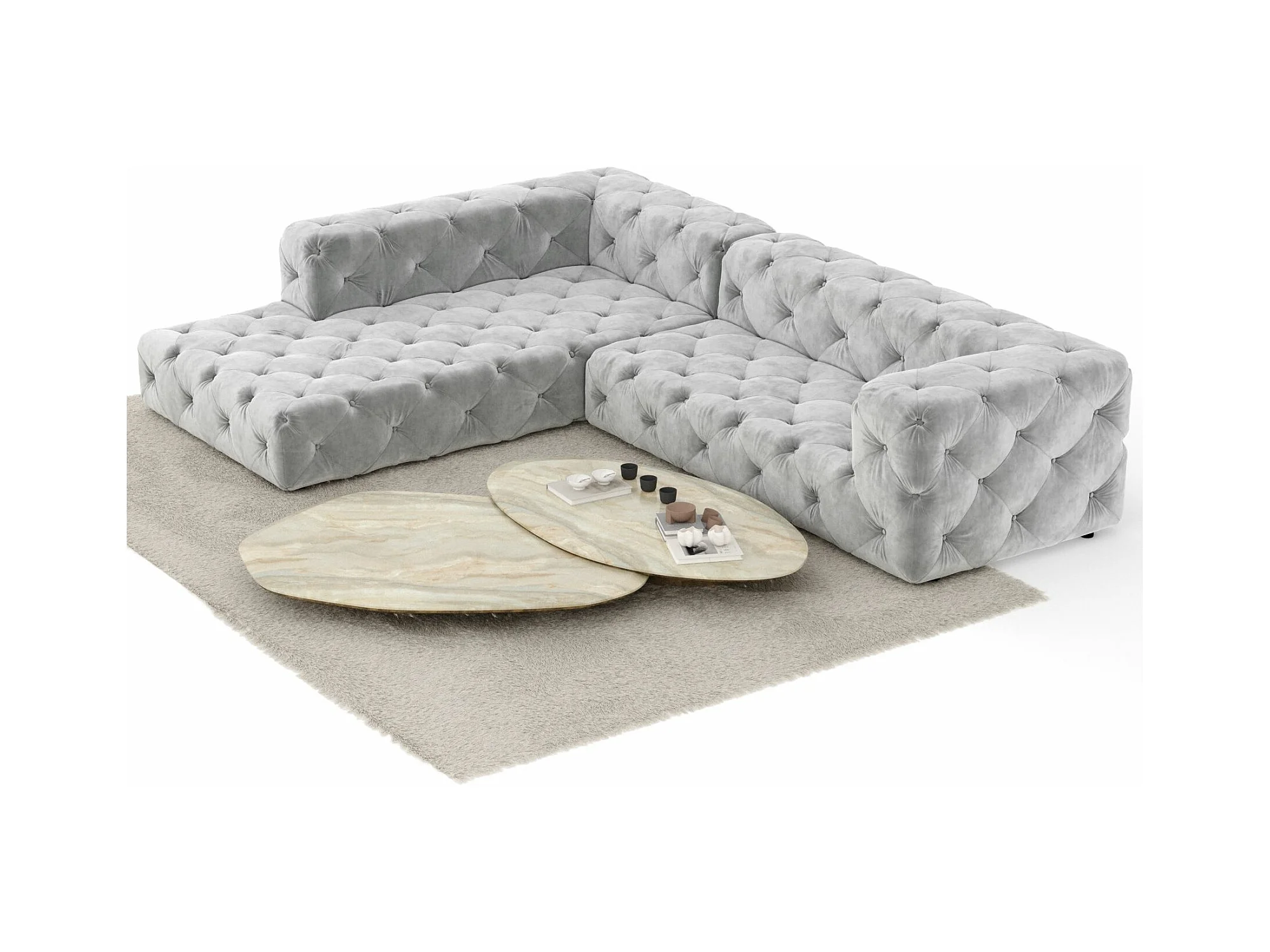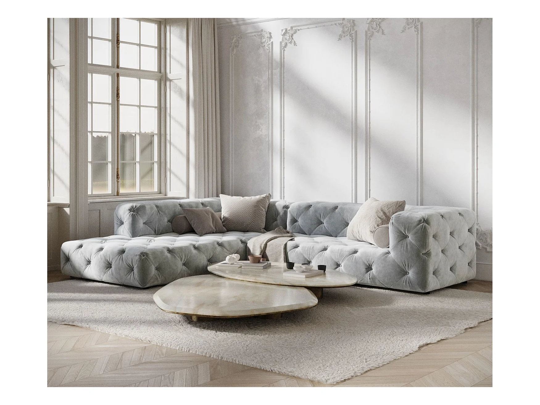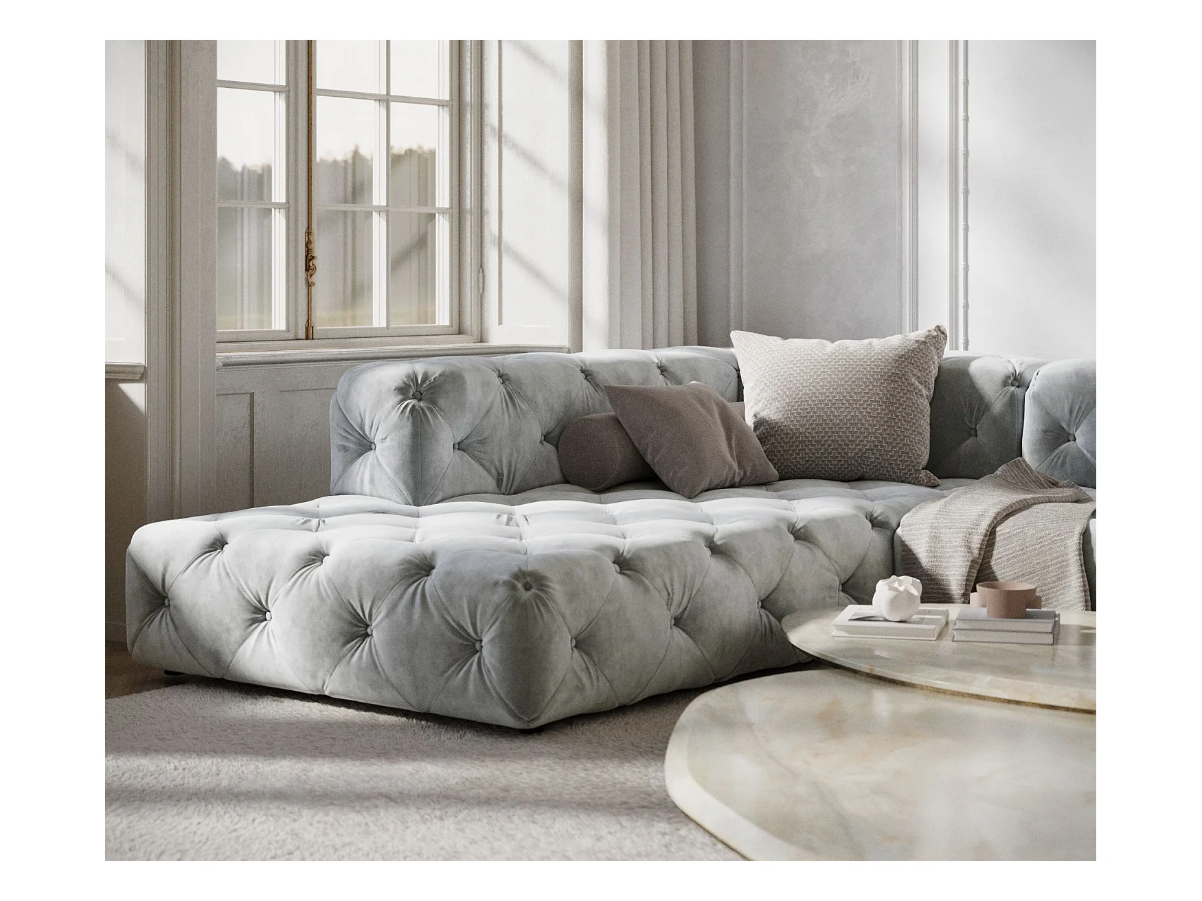 Canapé d'angle Cosimo - velours - 5 places - gris clair