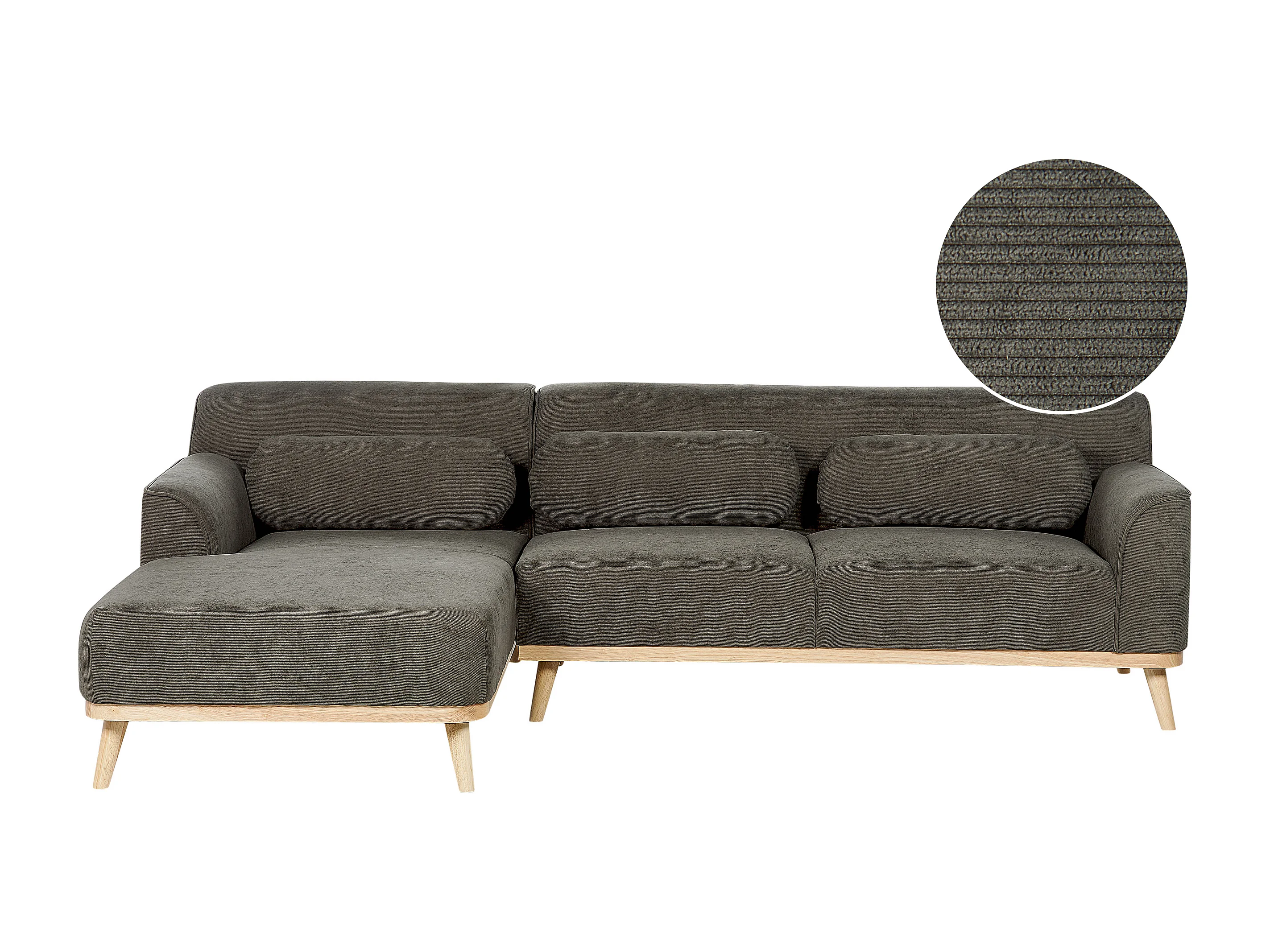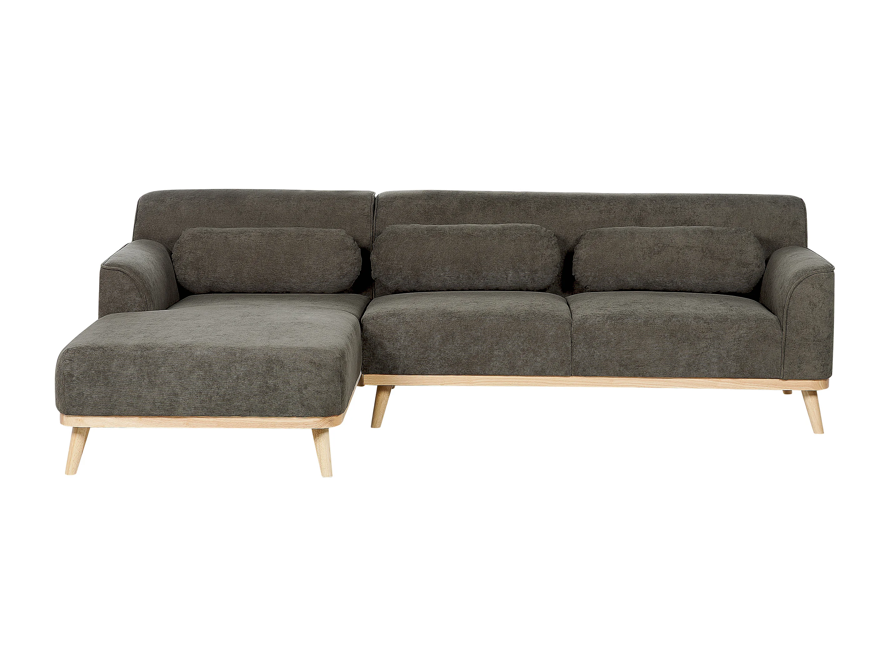 Canapé d'Angle Côté Droit en Velours Côtelé Vert Foncé Bois d'Hévéa et d'Eucalyptus 3 Places Simos