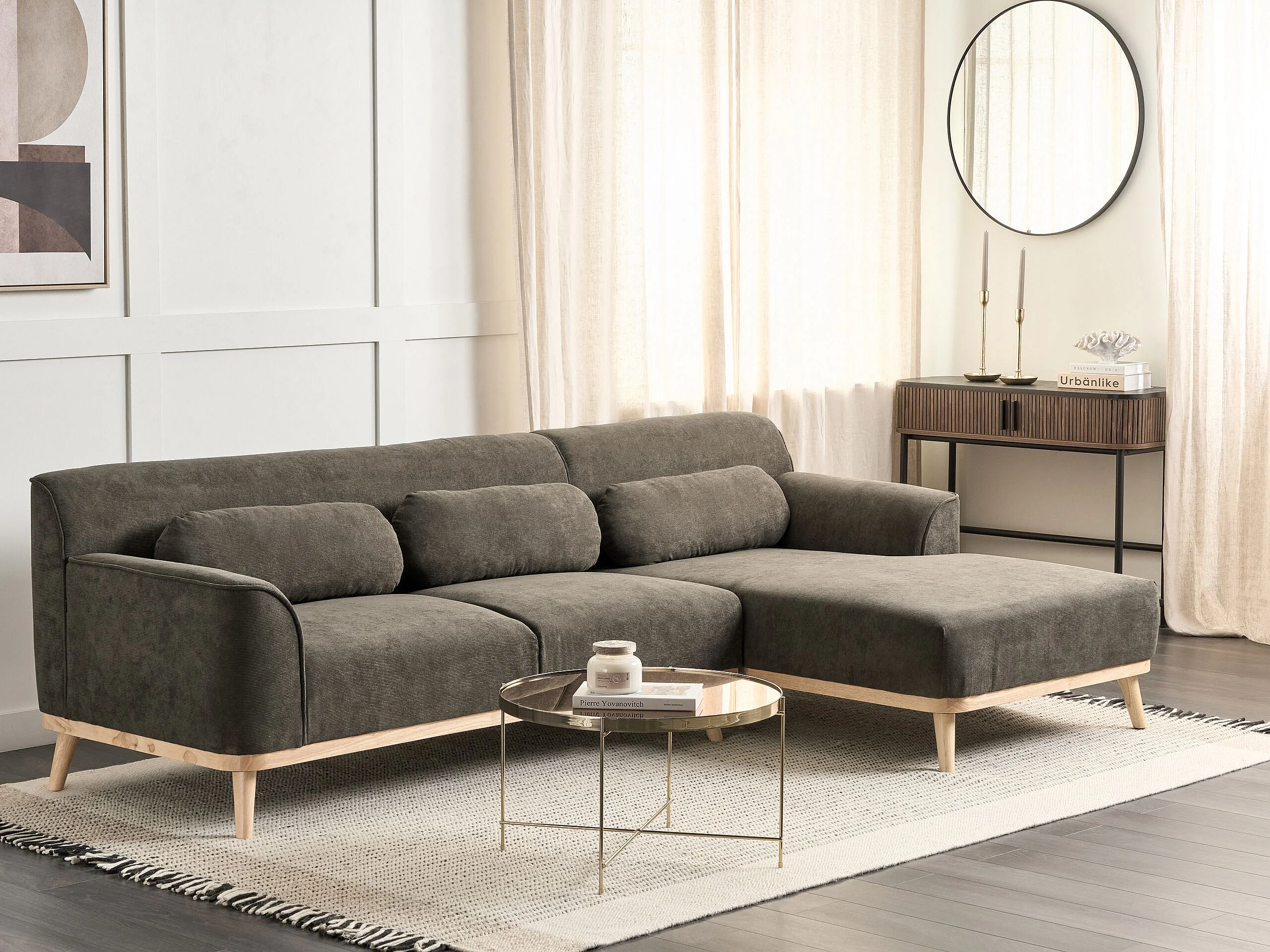 Canapé d'Angle Côté Gauche en Velours Côtelé Vert Foncé Bois d'Hévéa et d'Eucalyptus 3 Places Simos