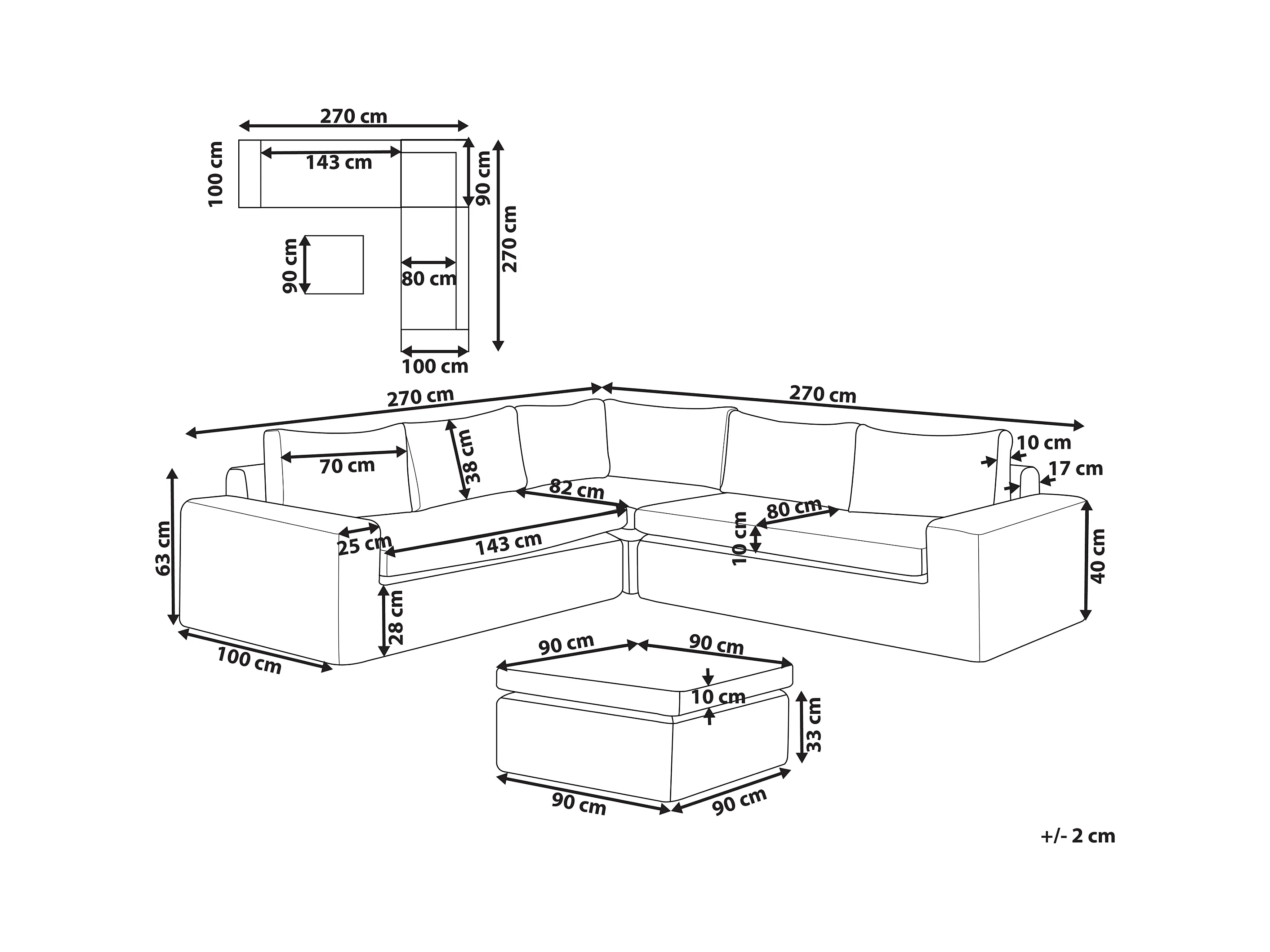 Canapé d'angle de jardin avec ottoman 6 places PALERMO Marron clair