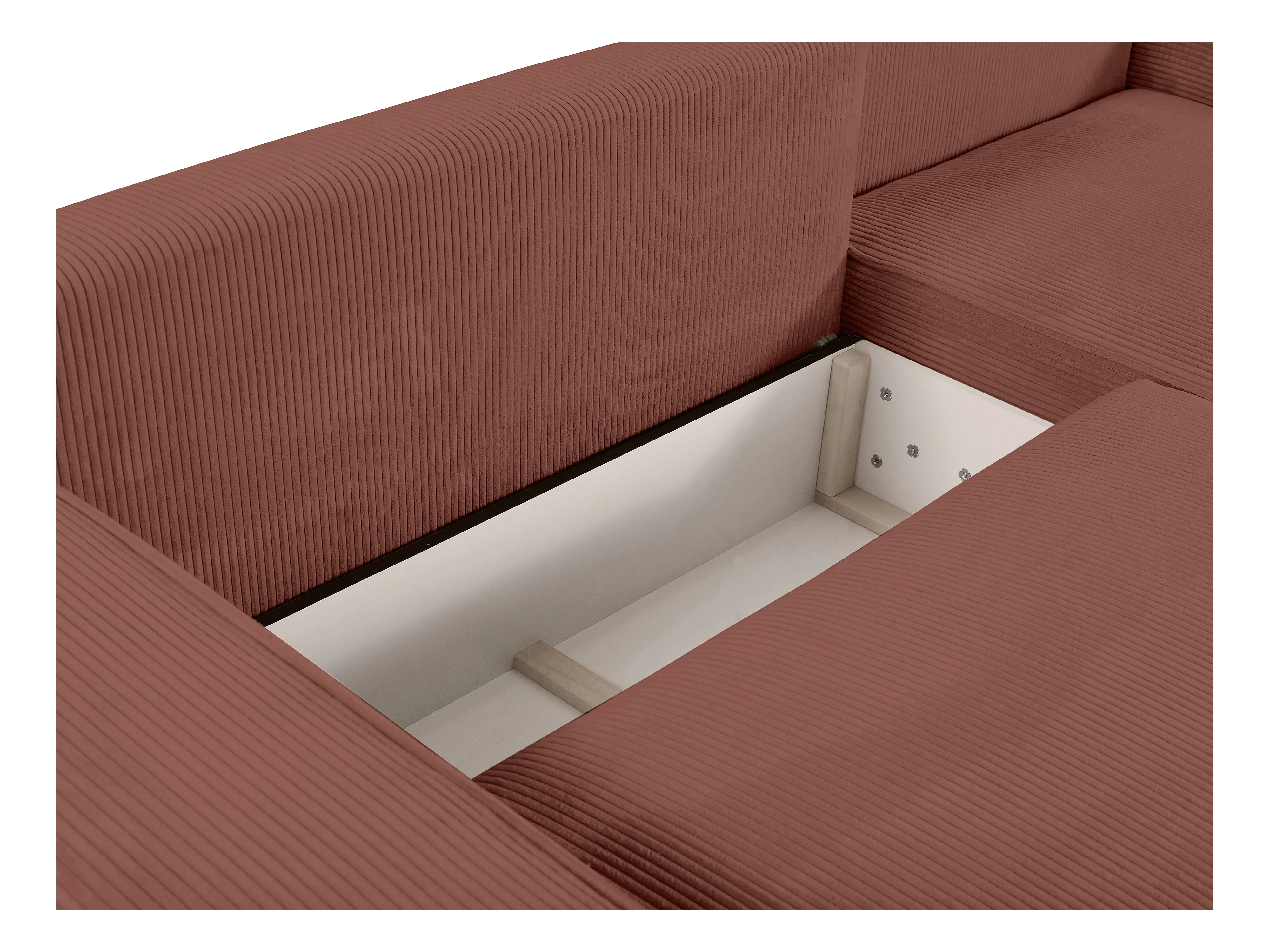 Canapé d'angle droit convertible en velours côtelé rose AMELIA