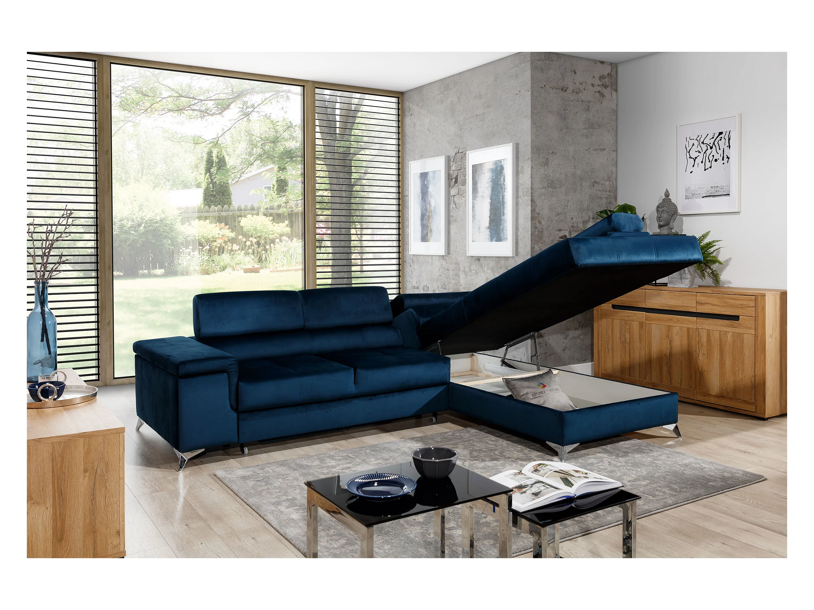 Canapé angle droit convertible tissu noir avec têtières réglables Nikos 265cm
