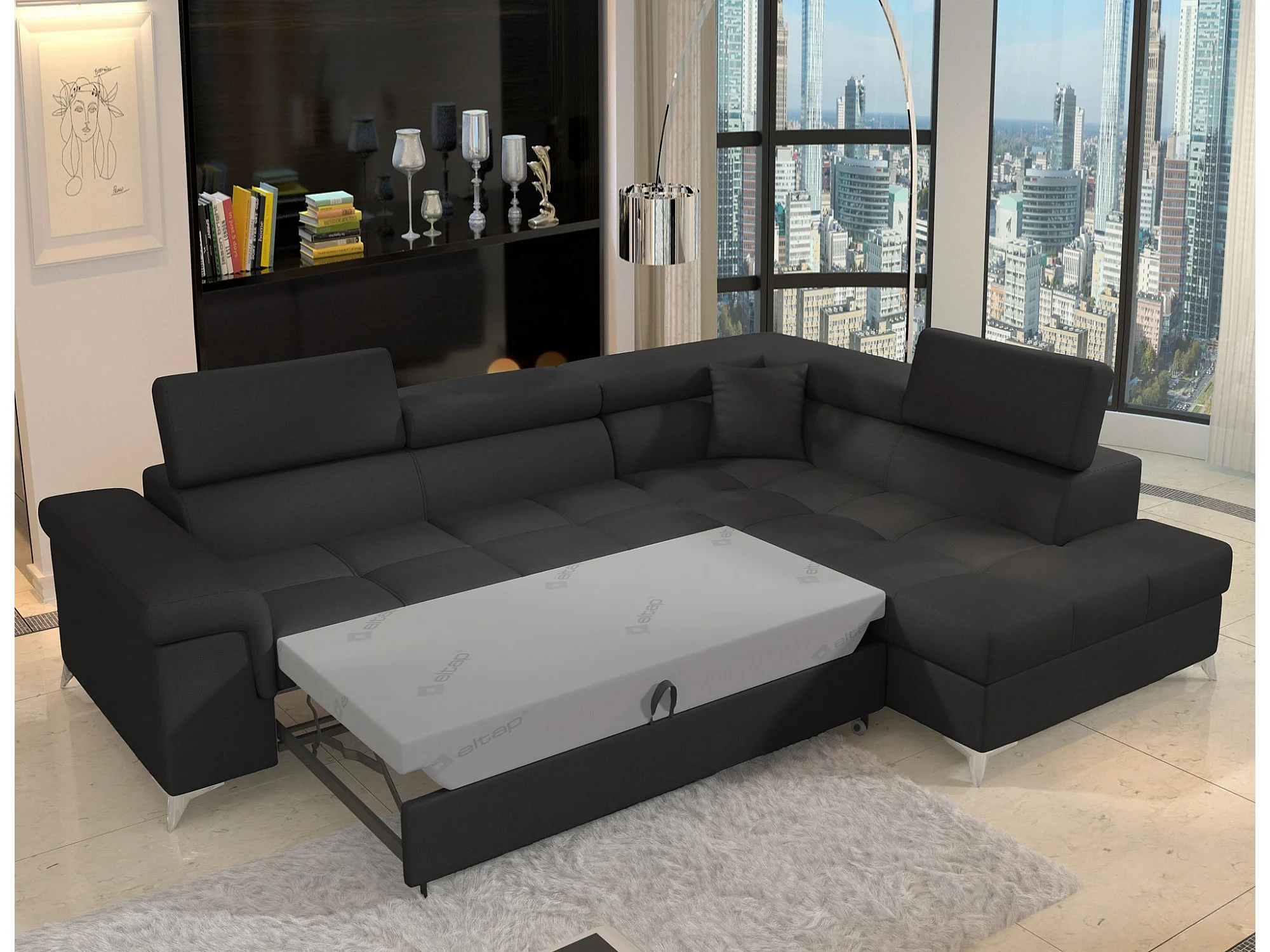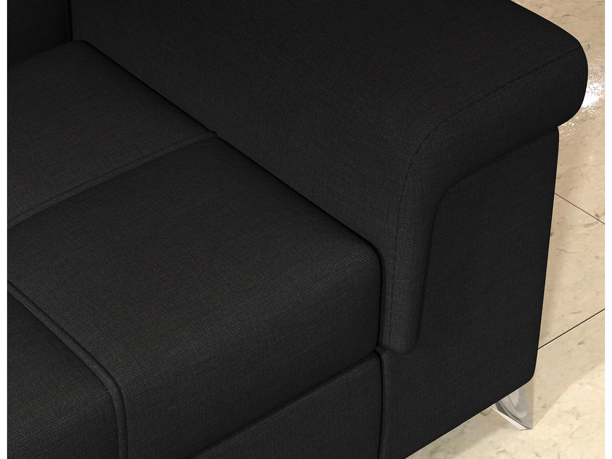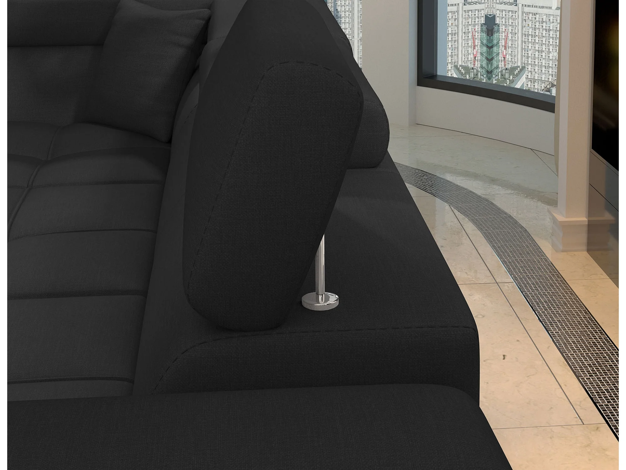Canapé d'angle convertible tissu MARIDO - Coffre et appuis-tête réglables-Noir-angle droit