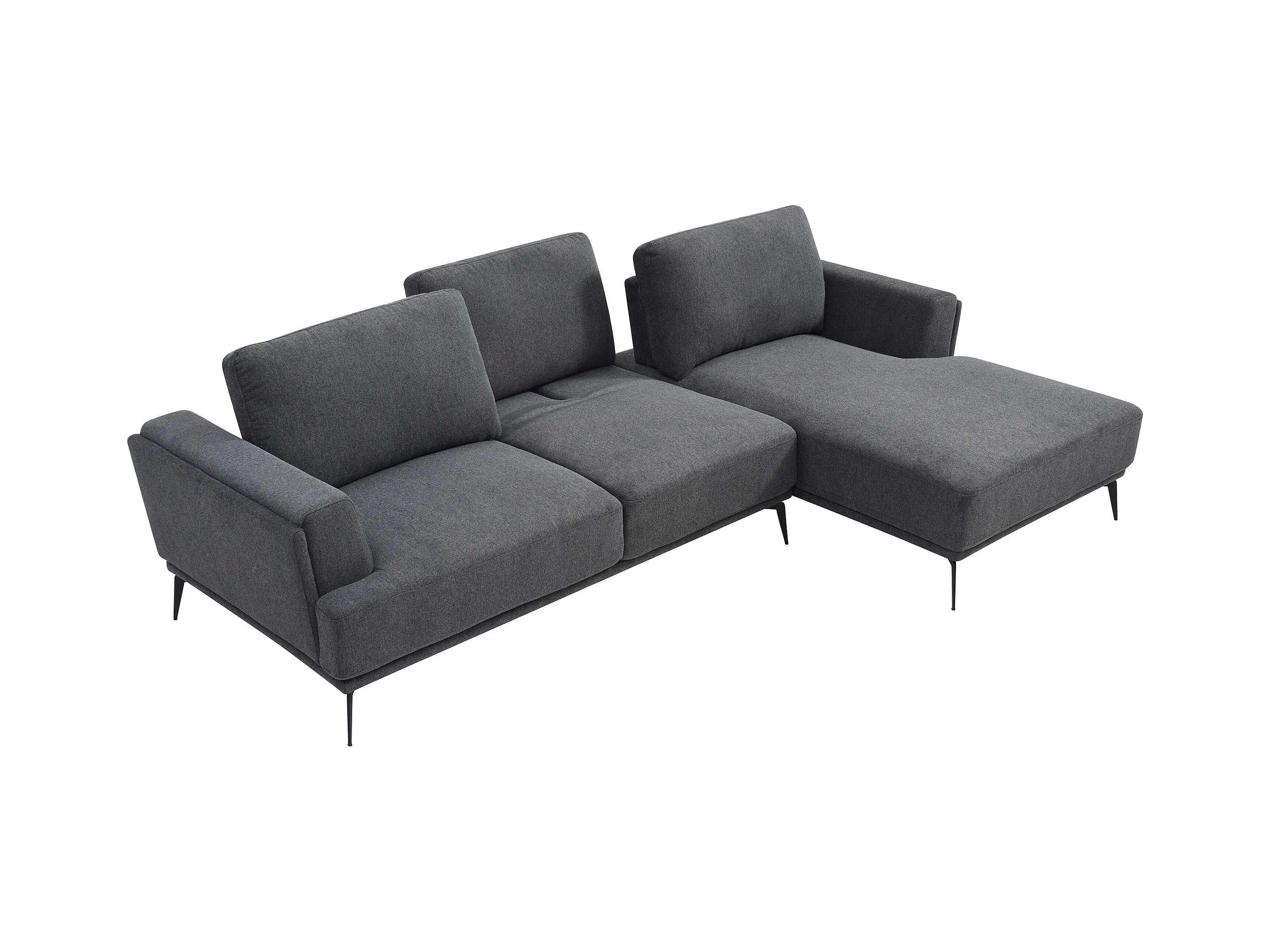 Canapé d'angle droit dossier avance-recule en tissu texturé gris anthracite ARSODA
