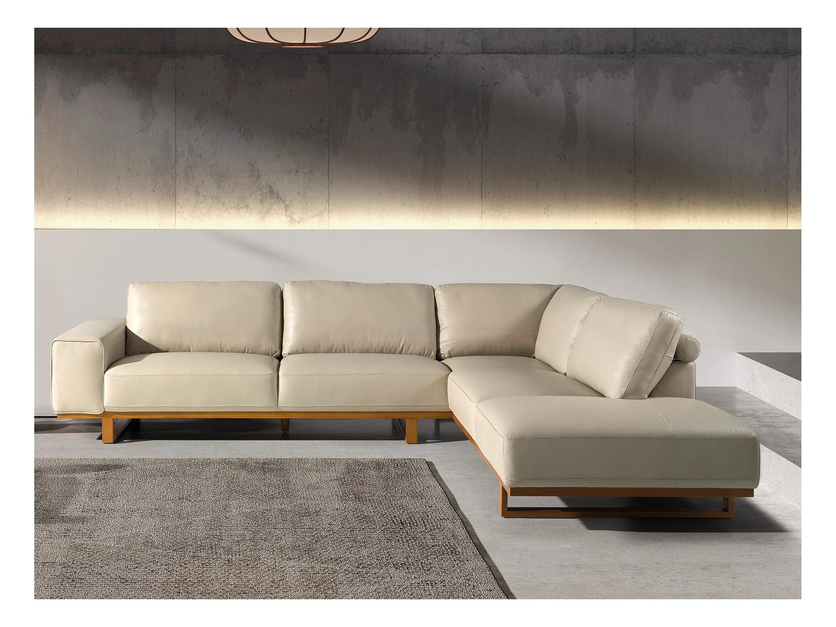 Canapé d'angle droit en cuir sable 6203 ANGEL CERDA