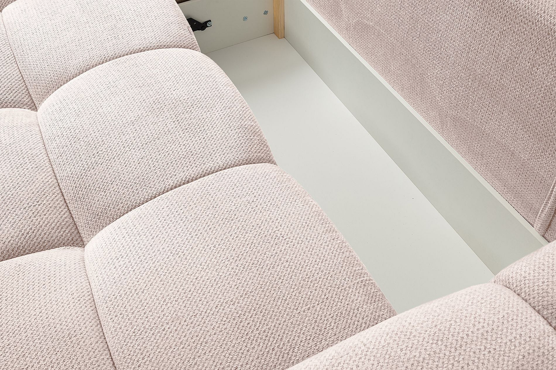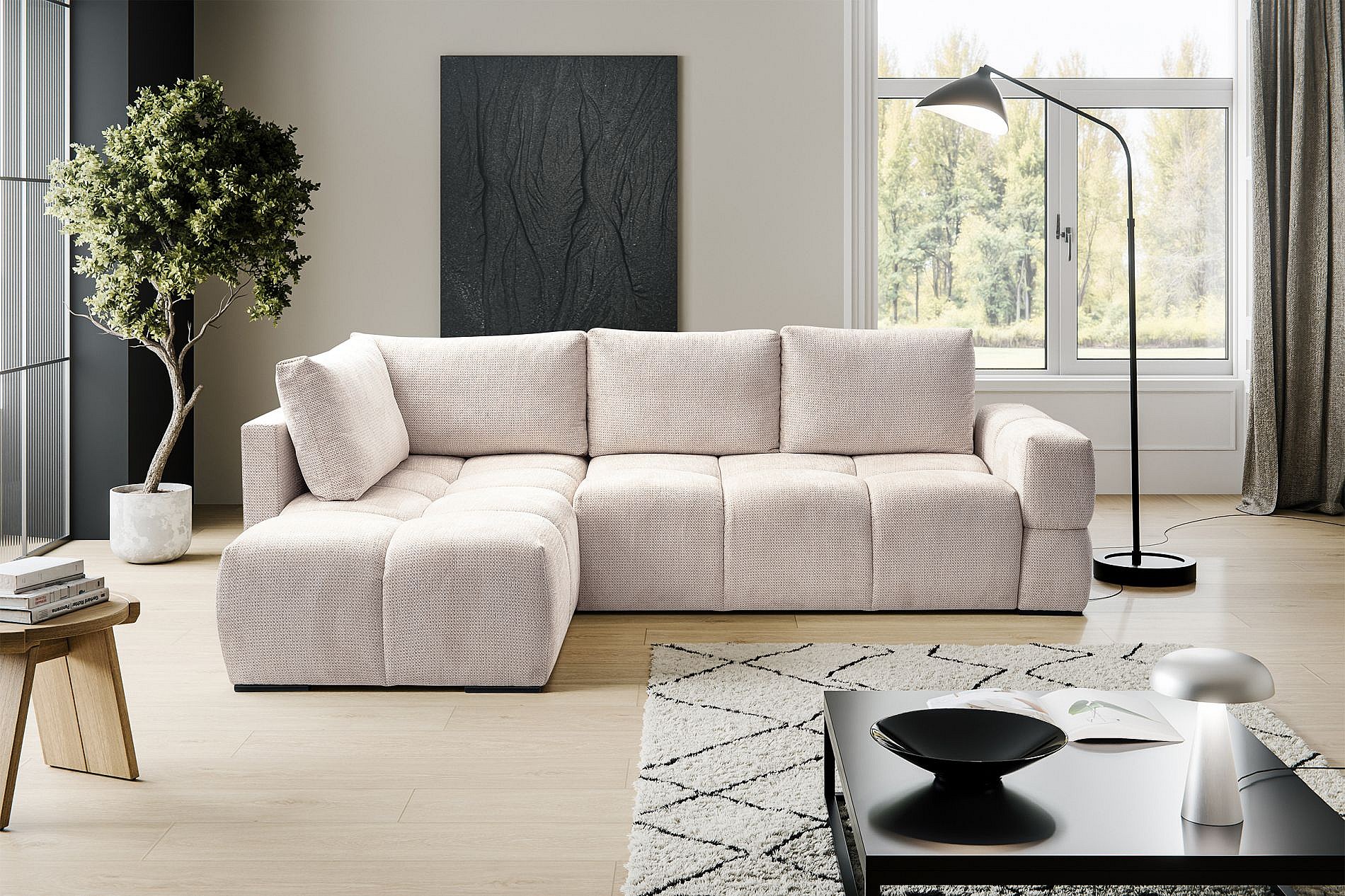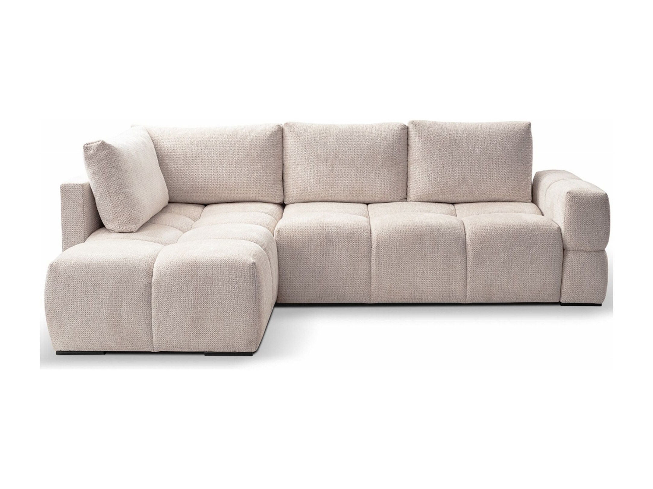 Canapé d’angle en chenille – convertible avec coffre de rangement – beige clair – réversible – TAREMI