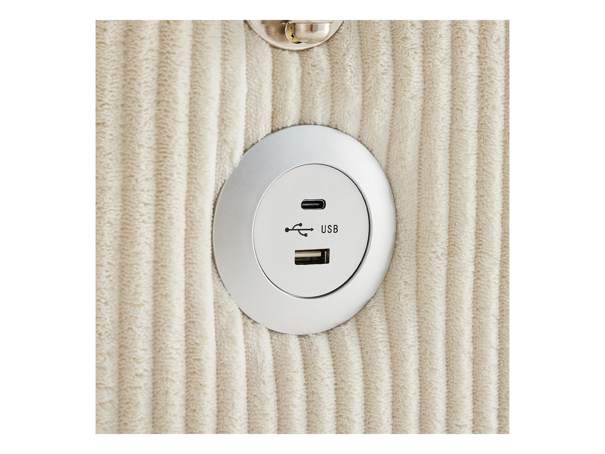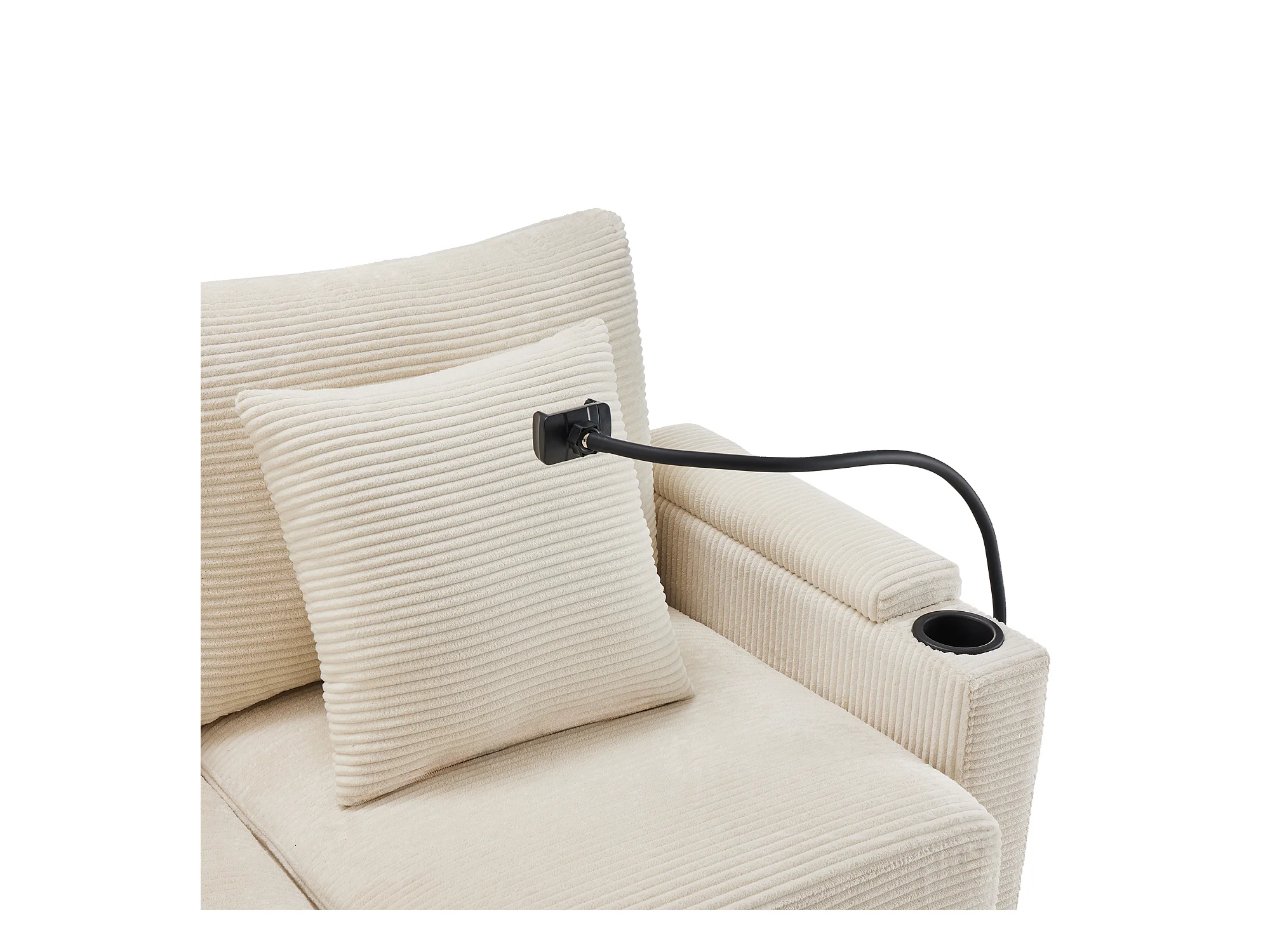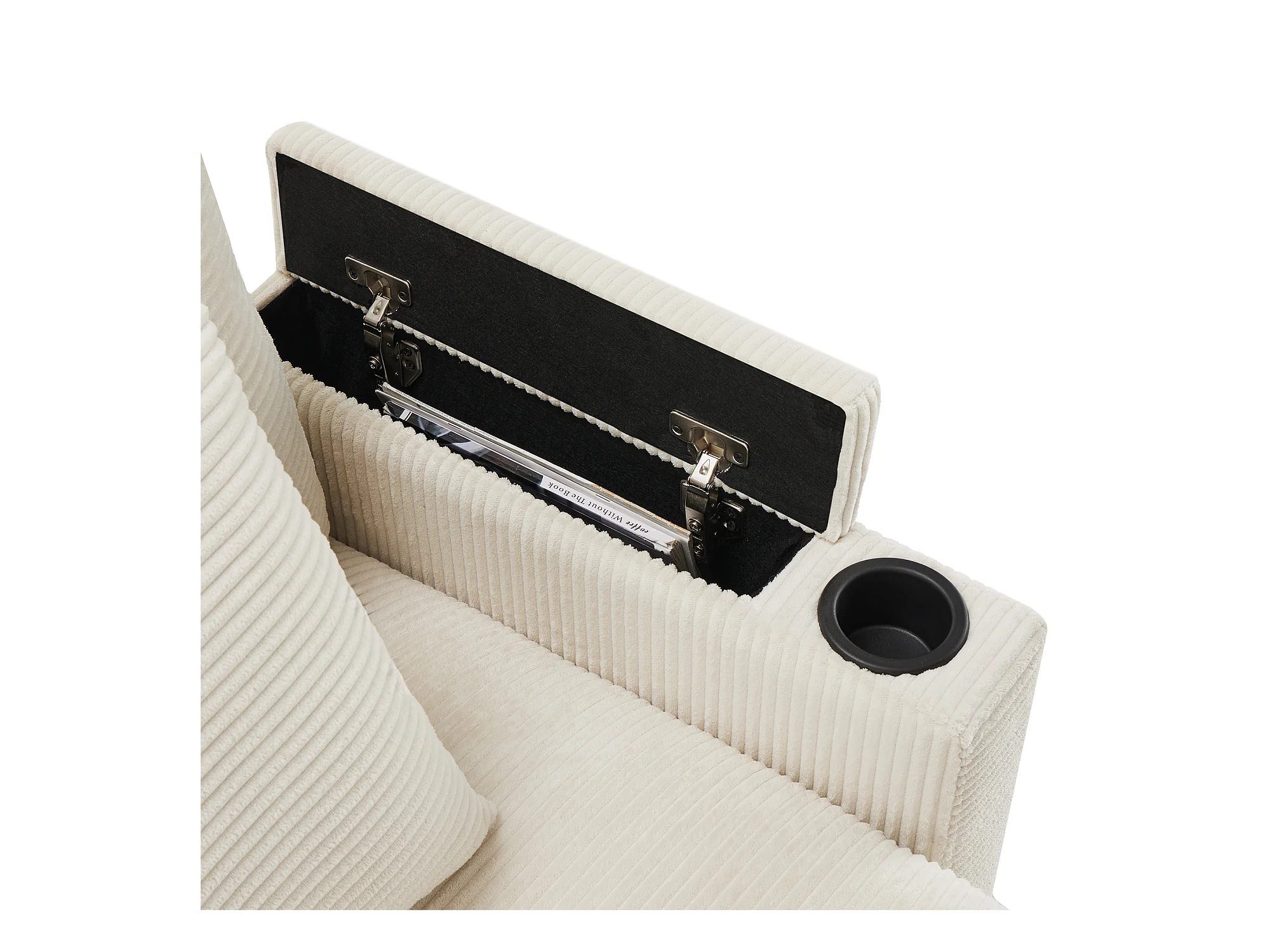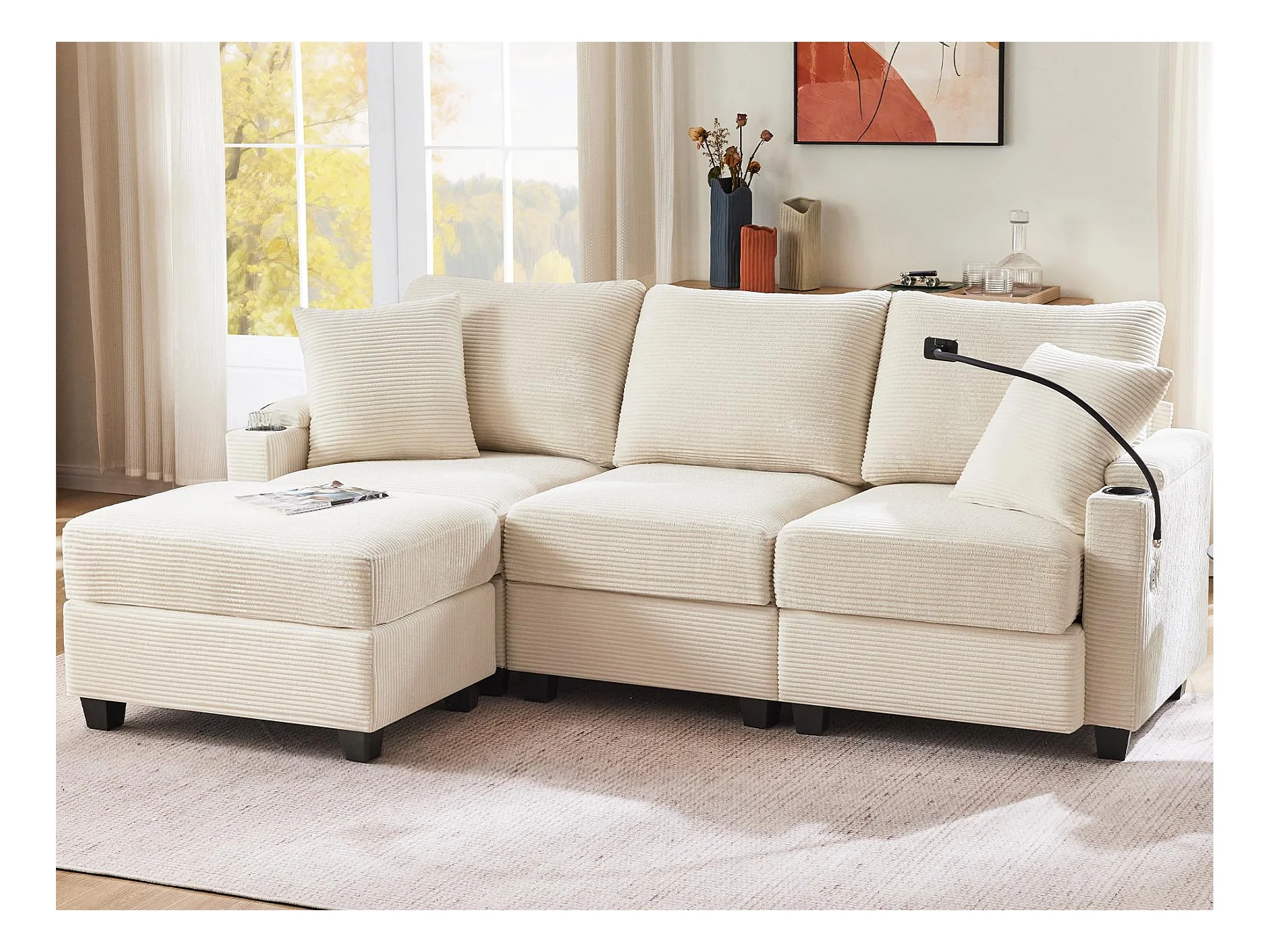 Canapé d'angle en L - 3 places - Avec repose-pieds + porte-gobelet - Chargeur USB - 2 coussins - Beige