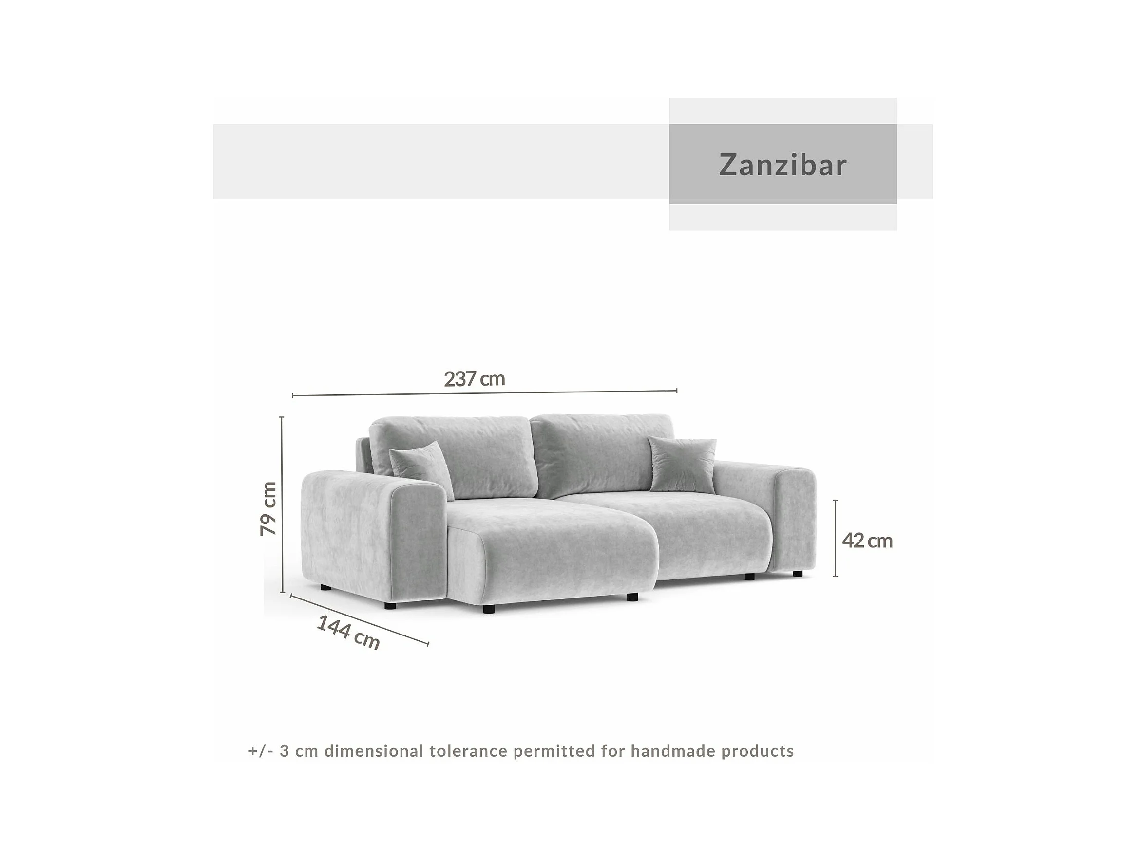Canapé d'angle en tissu velours Zanzibar - 4 places - gris clair