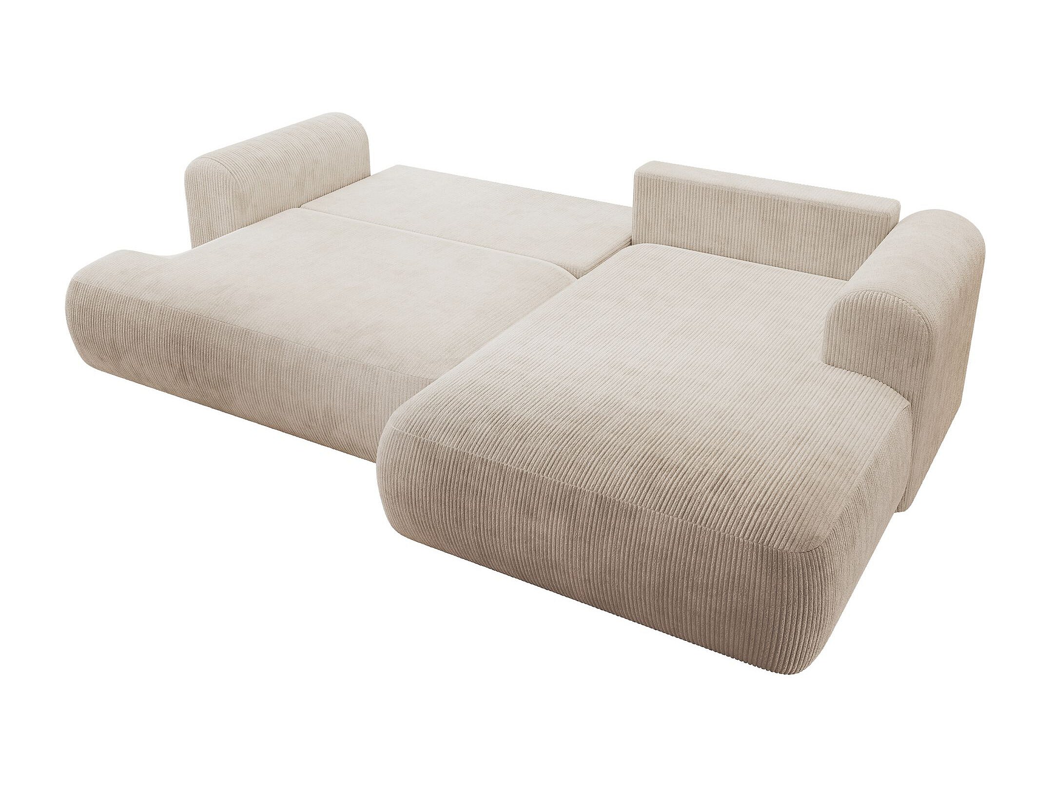 Canapé d’angle en velours côtelé – convertible avec coffre de rangement – beige clair – droit – OVO CORD