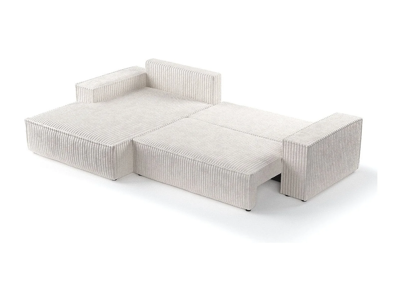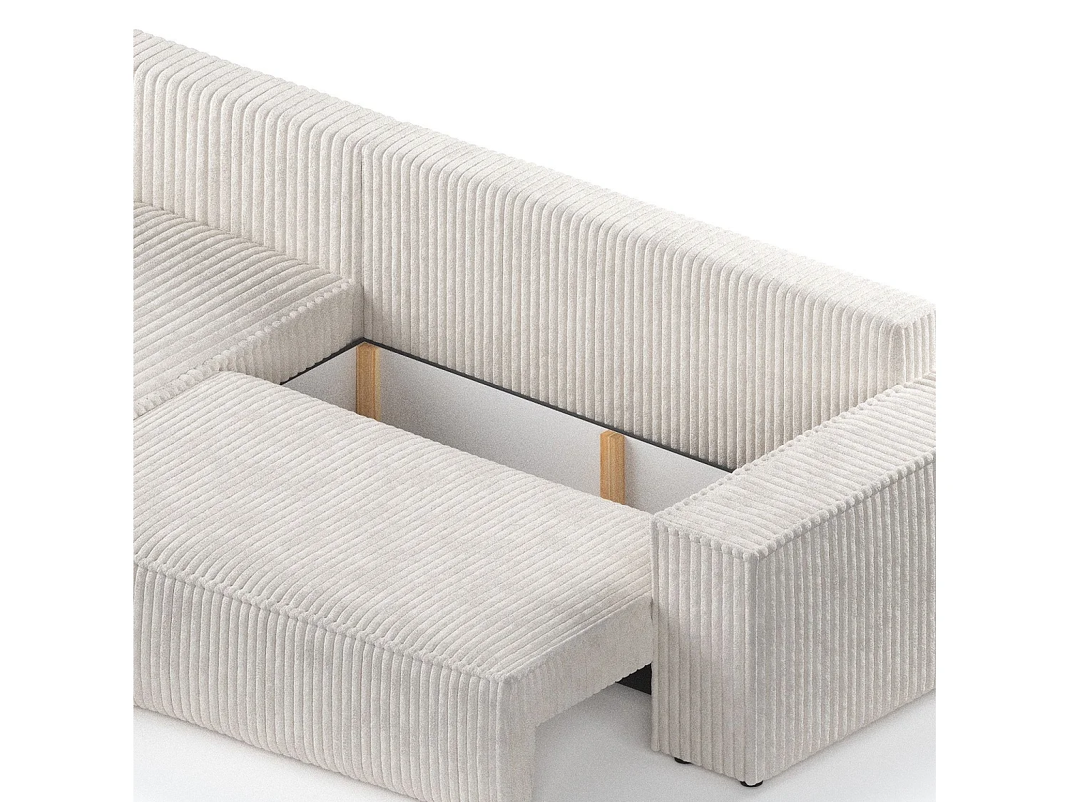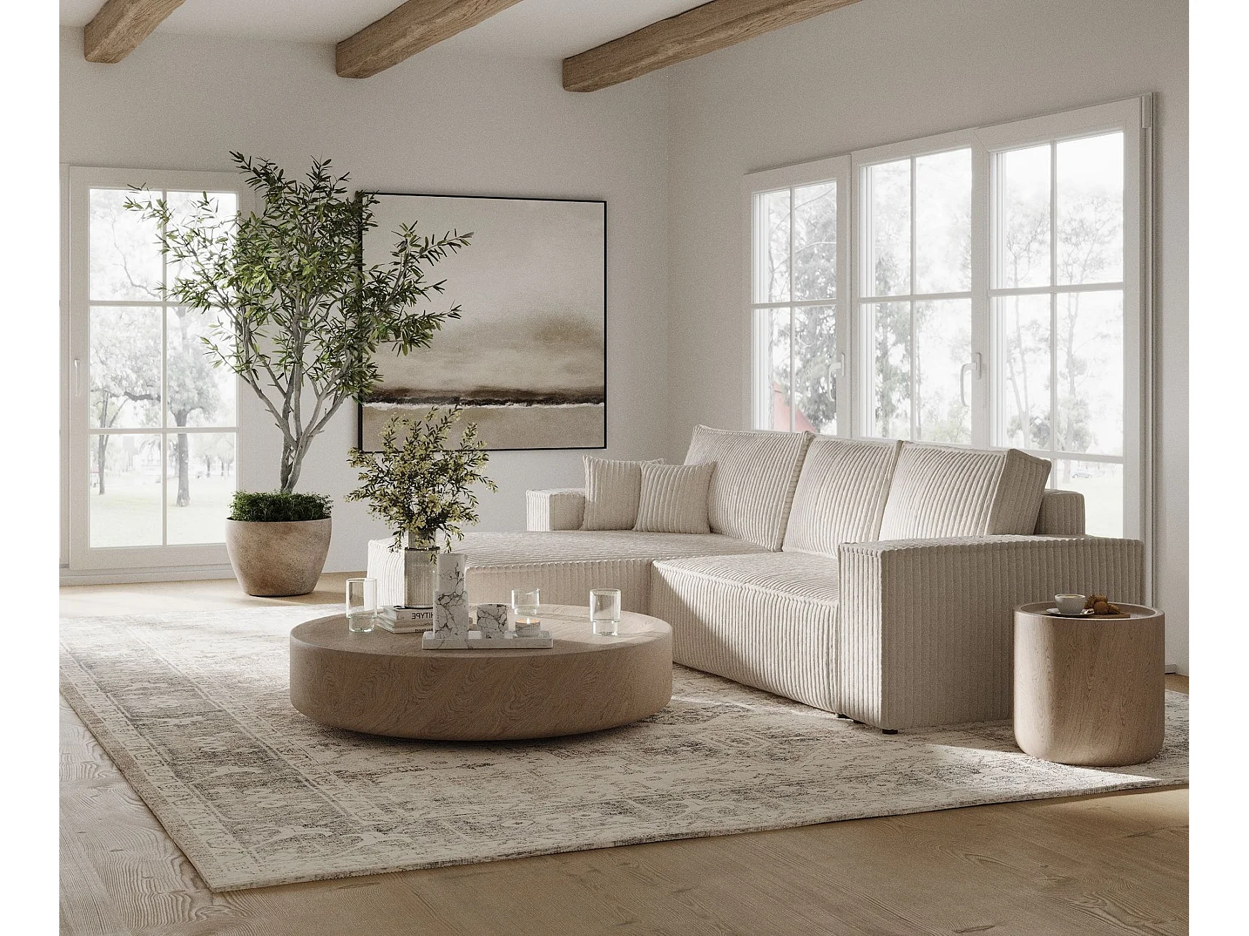 Canapé d'angle gauche 5 places en tissu en peluche creme MAZE