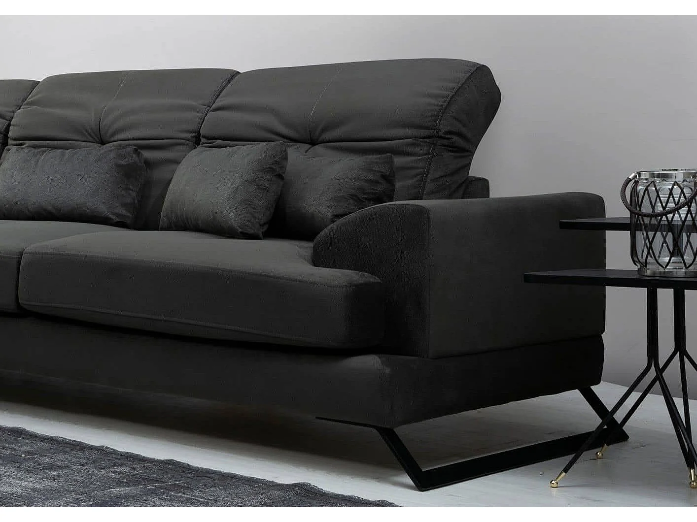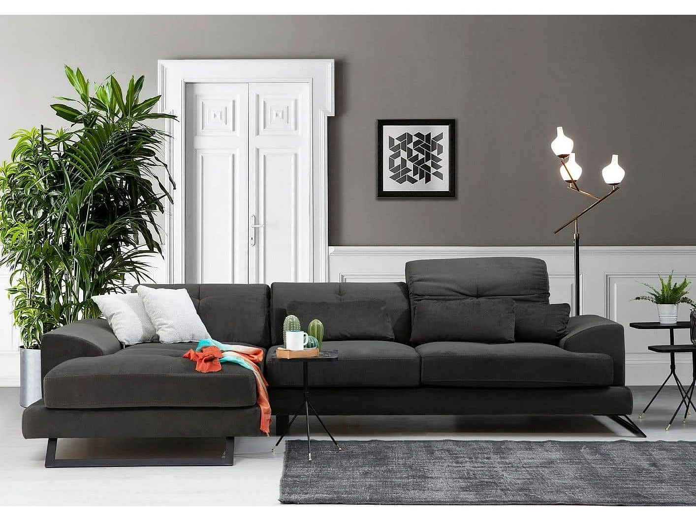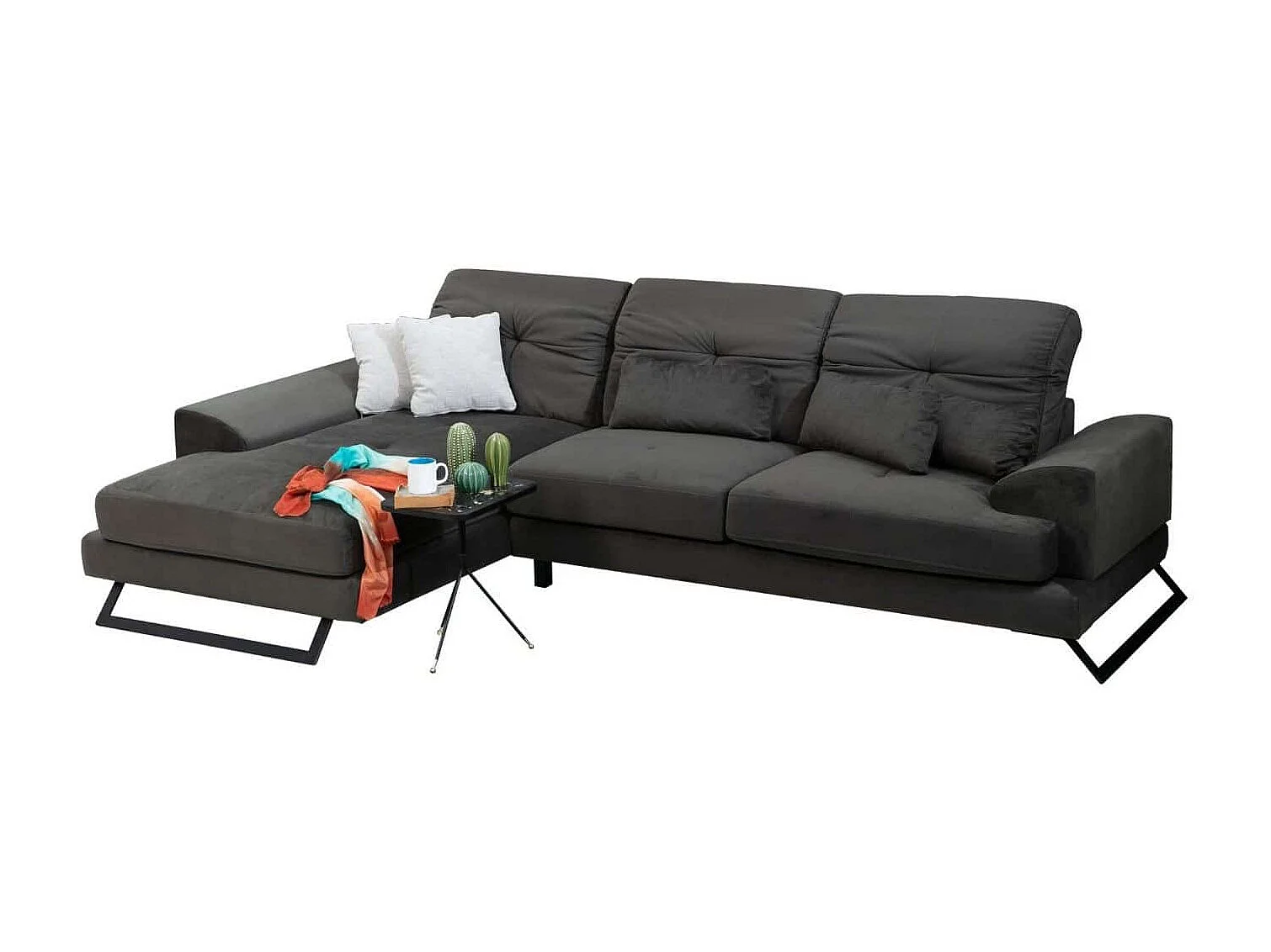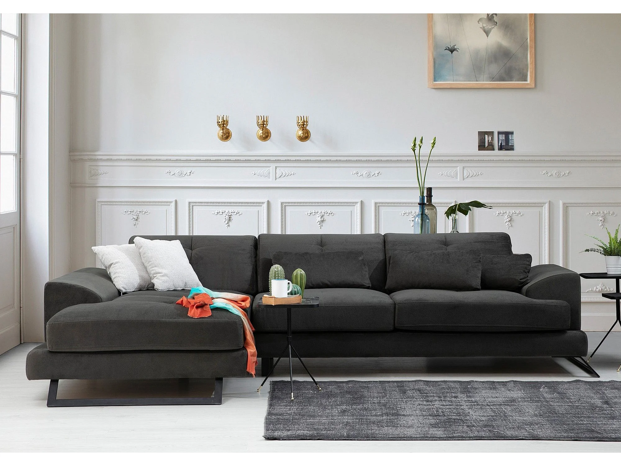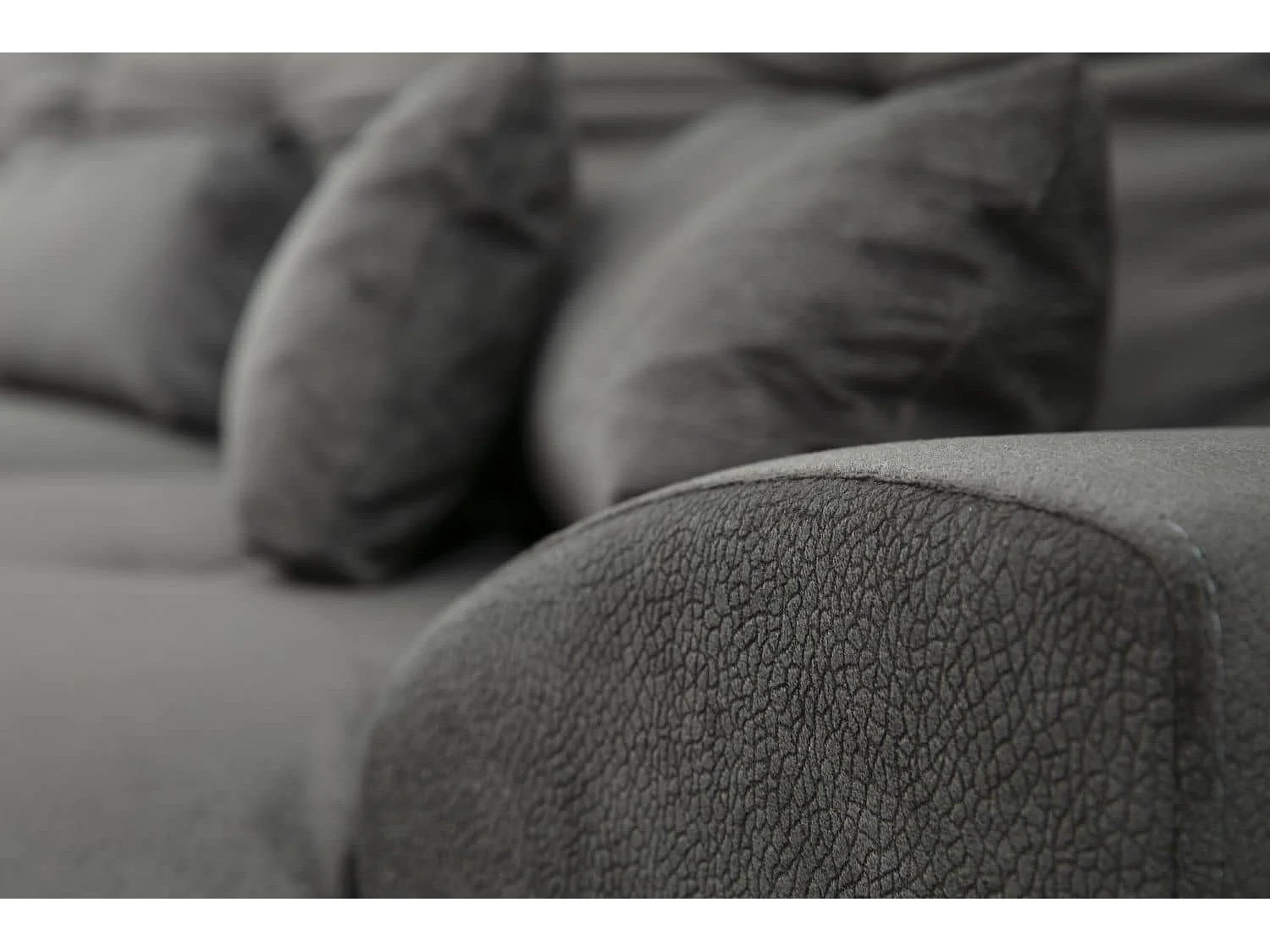 Canapé d'angle gauche avec 5 coussins Cyclades Velours texturé effet simili de vachette Anthracite