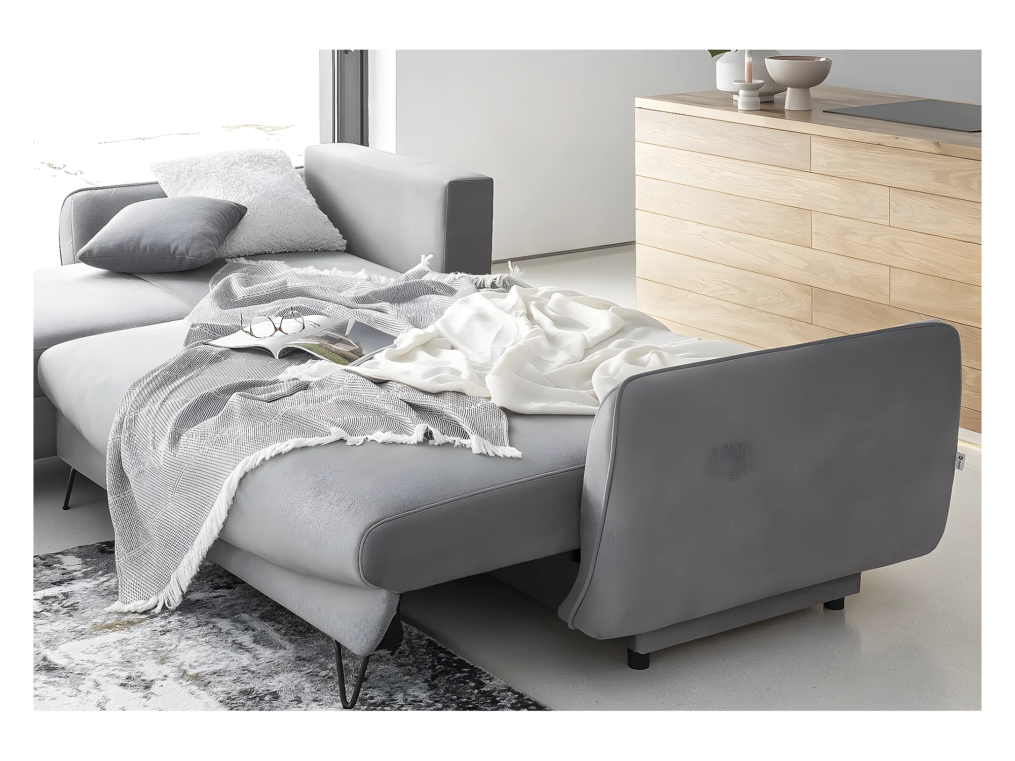 Canapé d'angle droit convertible tissu doux gris clair Zurik 276cm