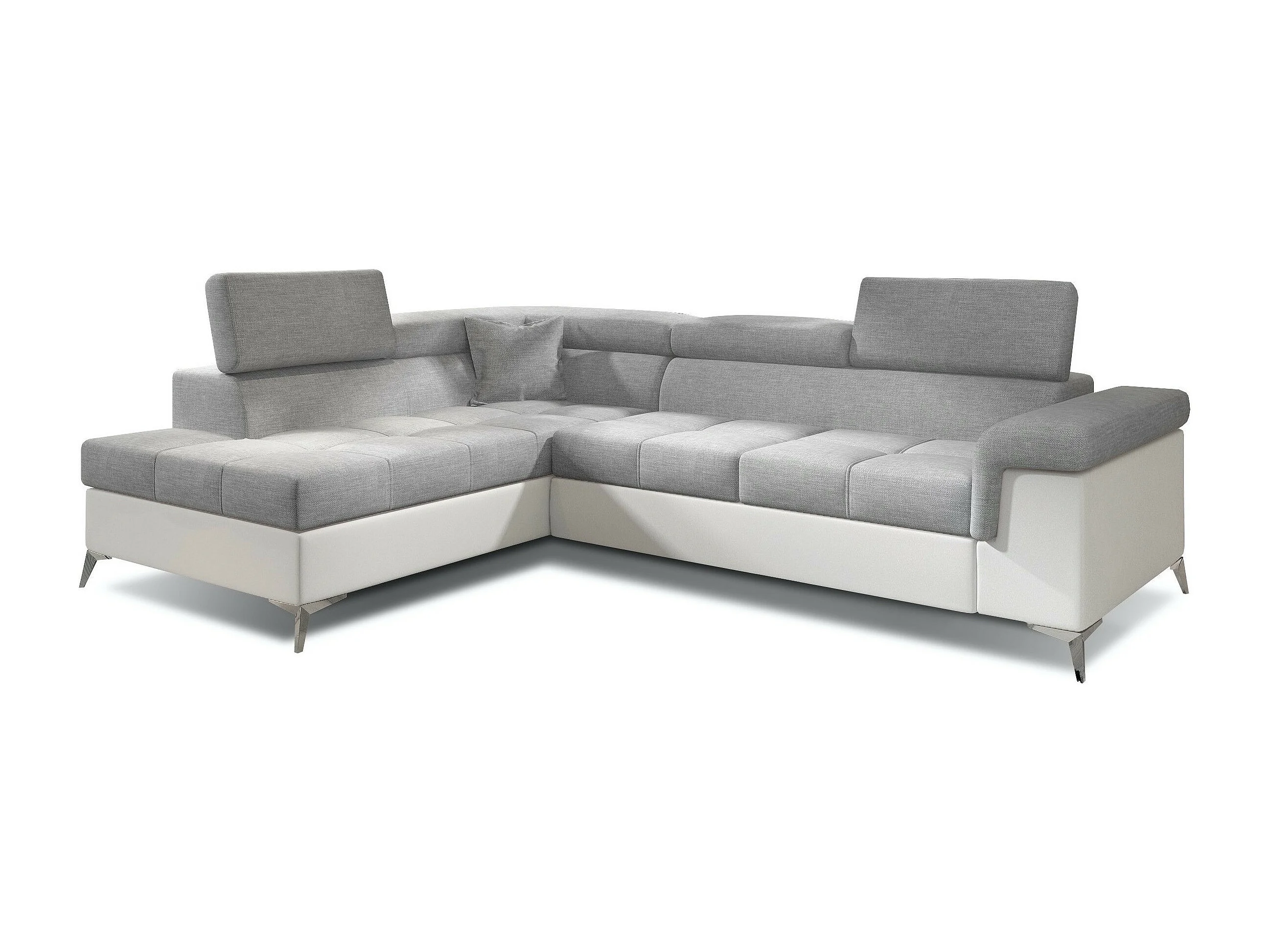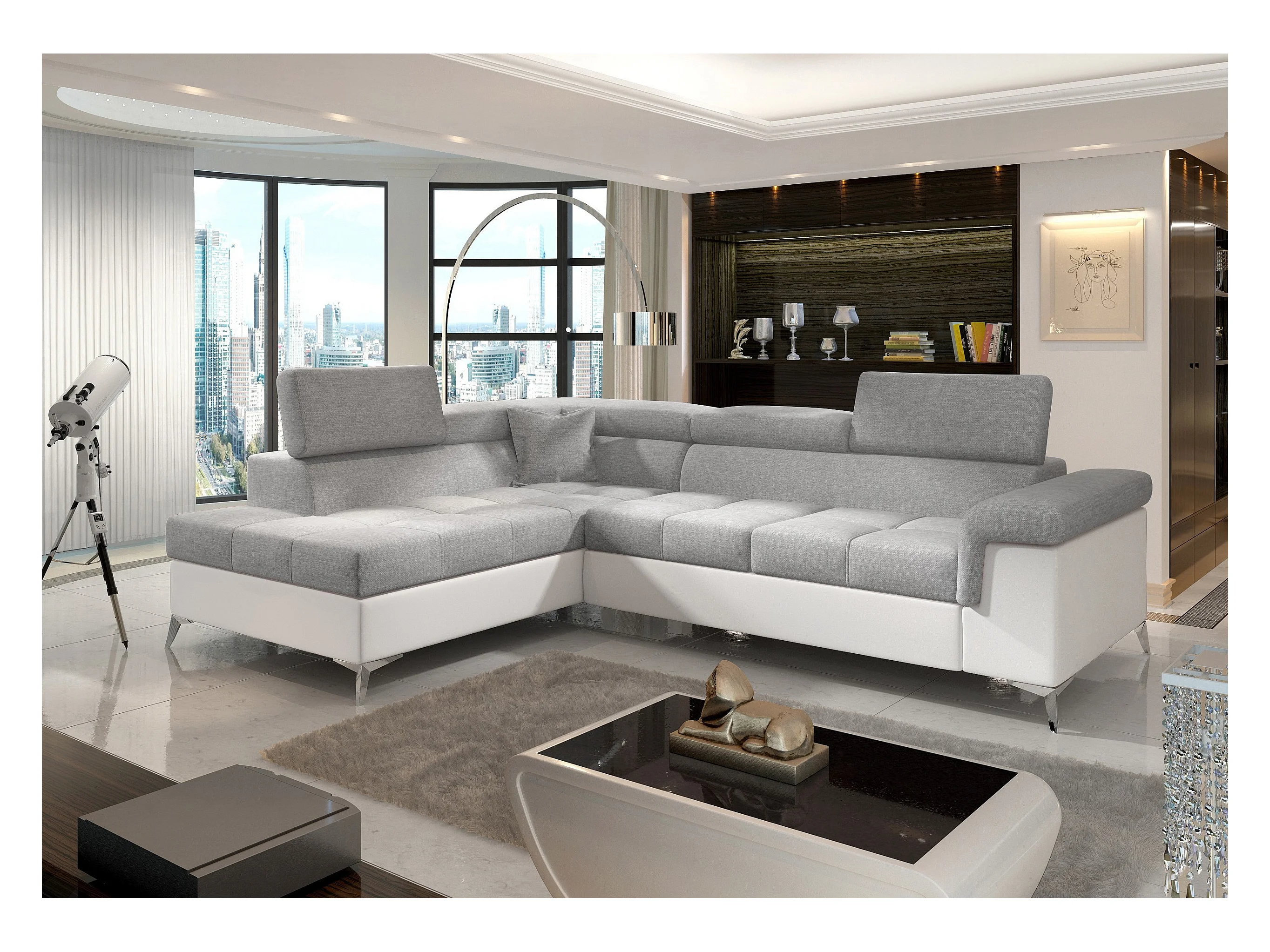 Canapé angle gauche convertible tissu gris clair et simili blanc avec appuis-tête réglables Rikaro 280cm