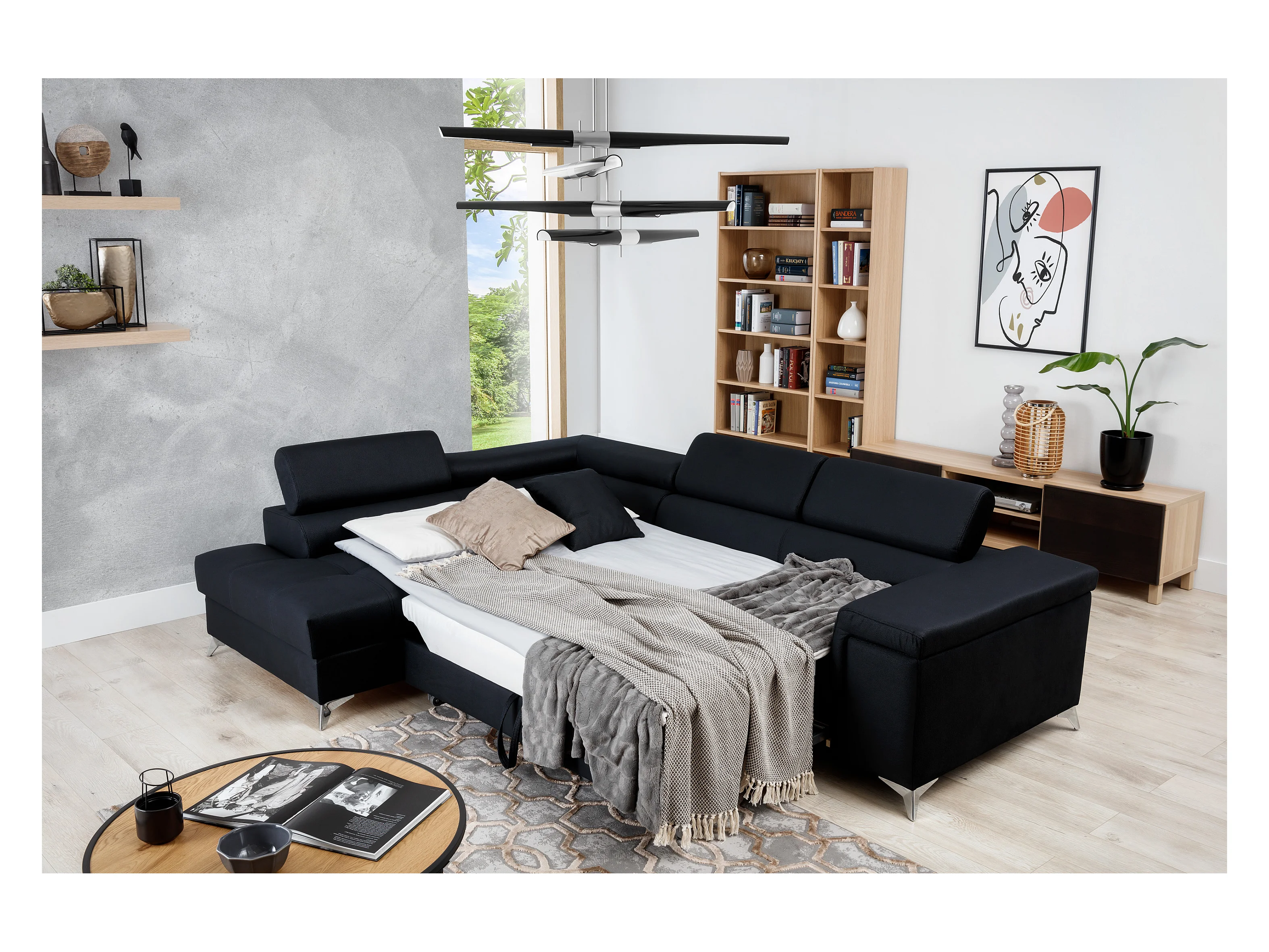 Canapé d'angle gauche convertible tissu gris clair et simili noir Marido 275cm