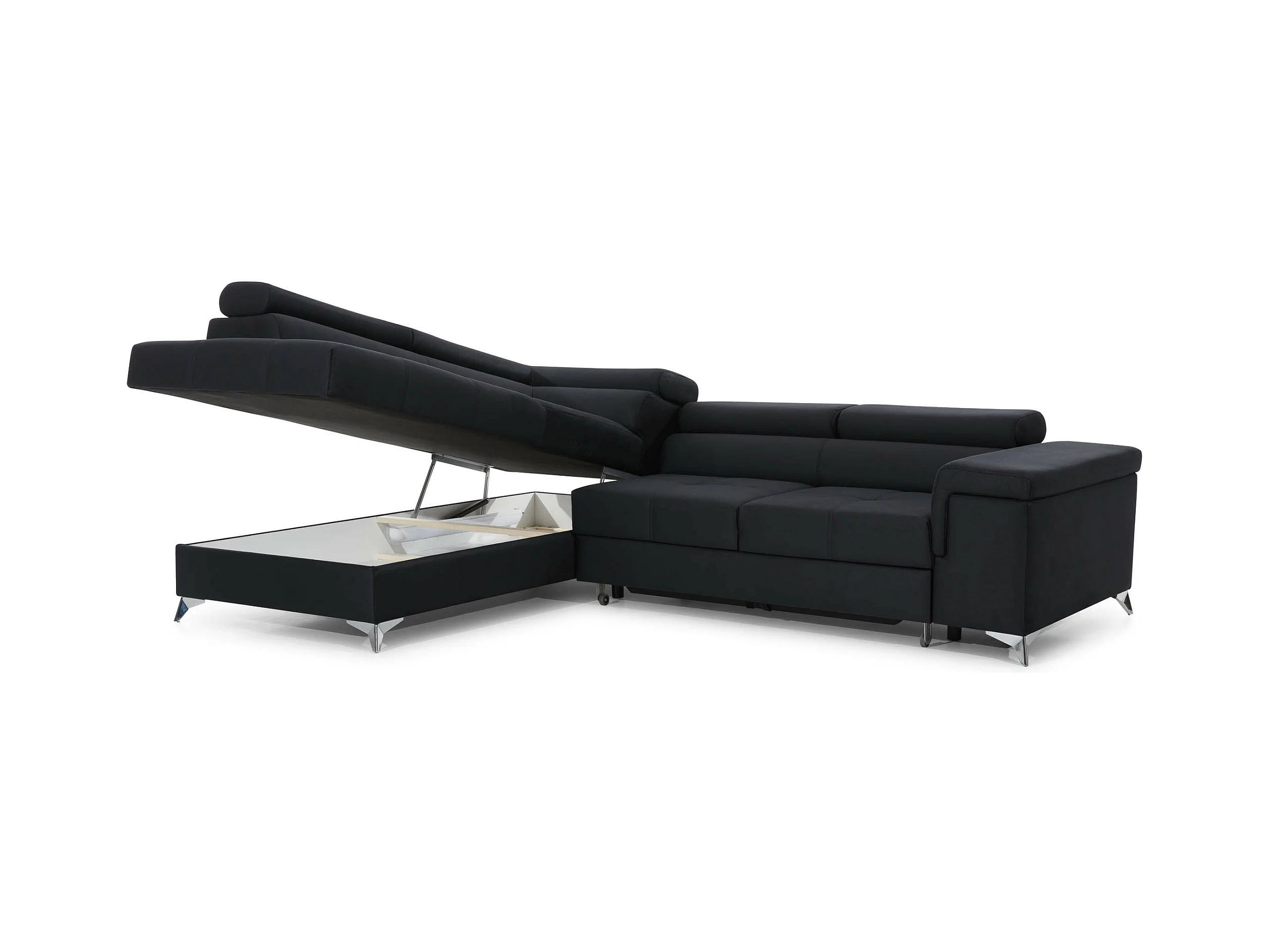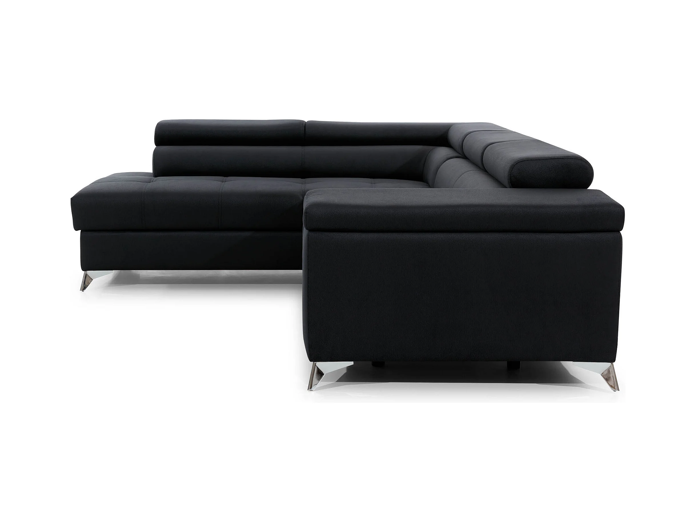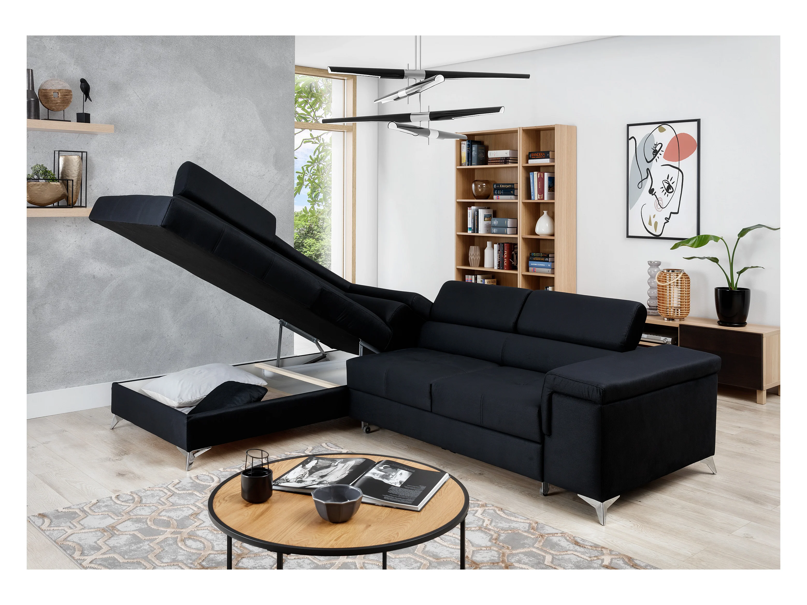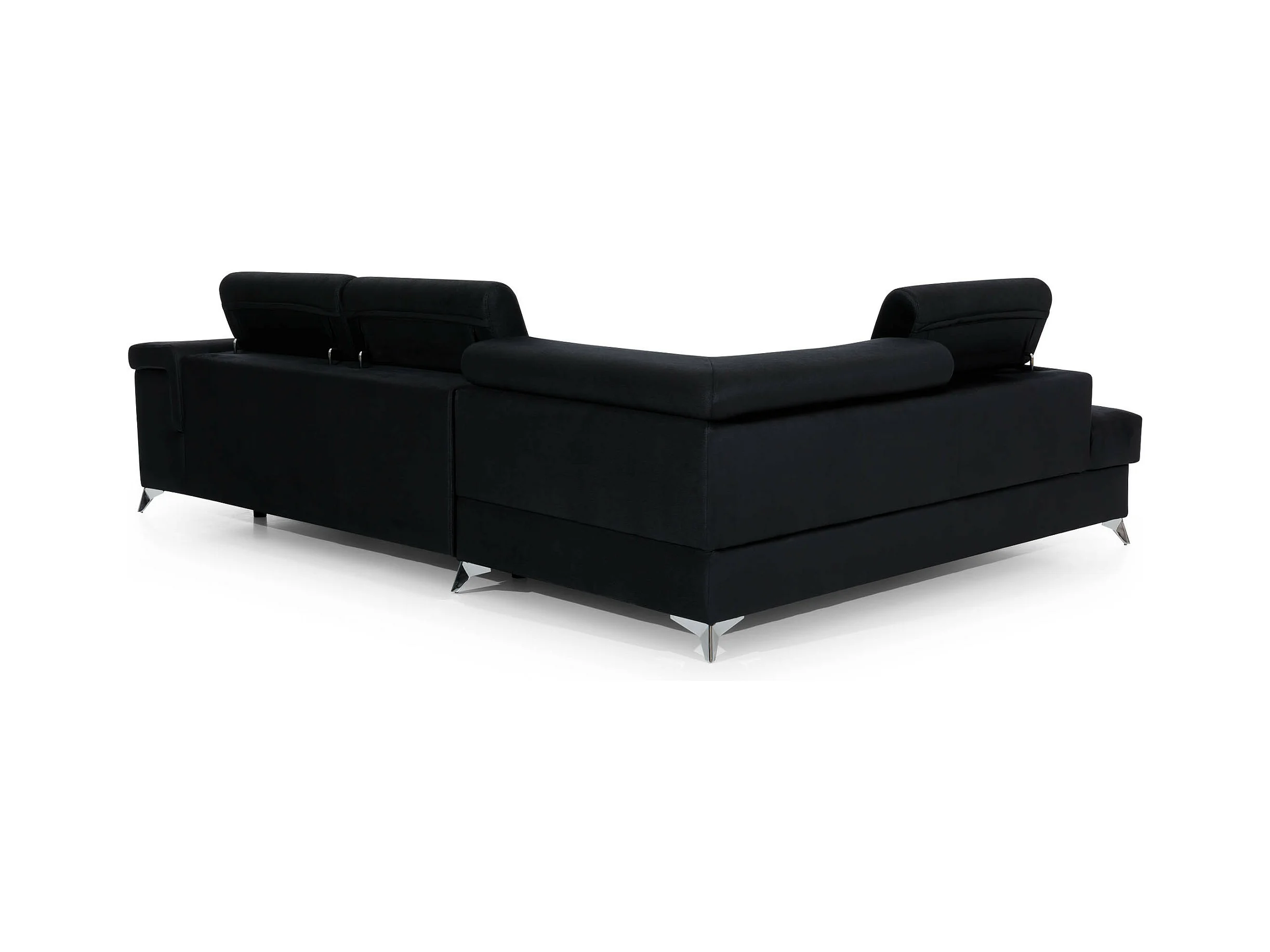 Canapé angle droit convertible tissu gris clair et simili noir avec appuis-tête réglables Rikaro 280cm