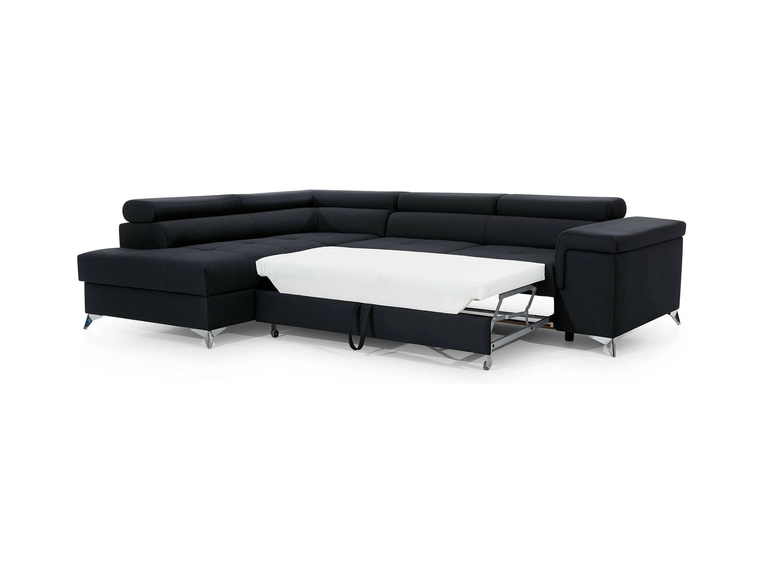 Canapé angle gauche convertible tissu gris clair et simili noir avec appuis-tête réglables Rikaro 280cm