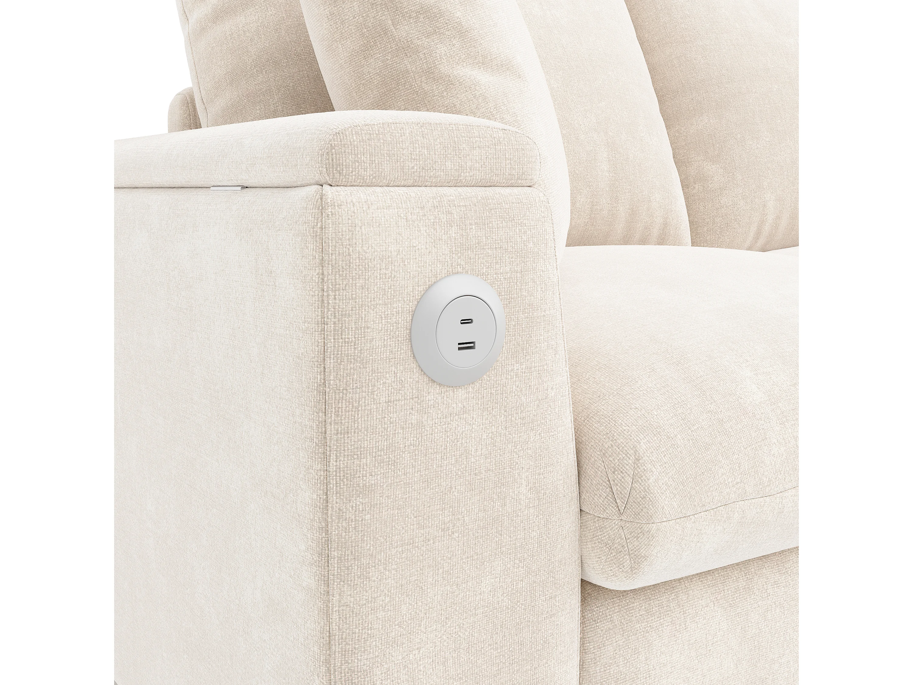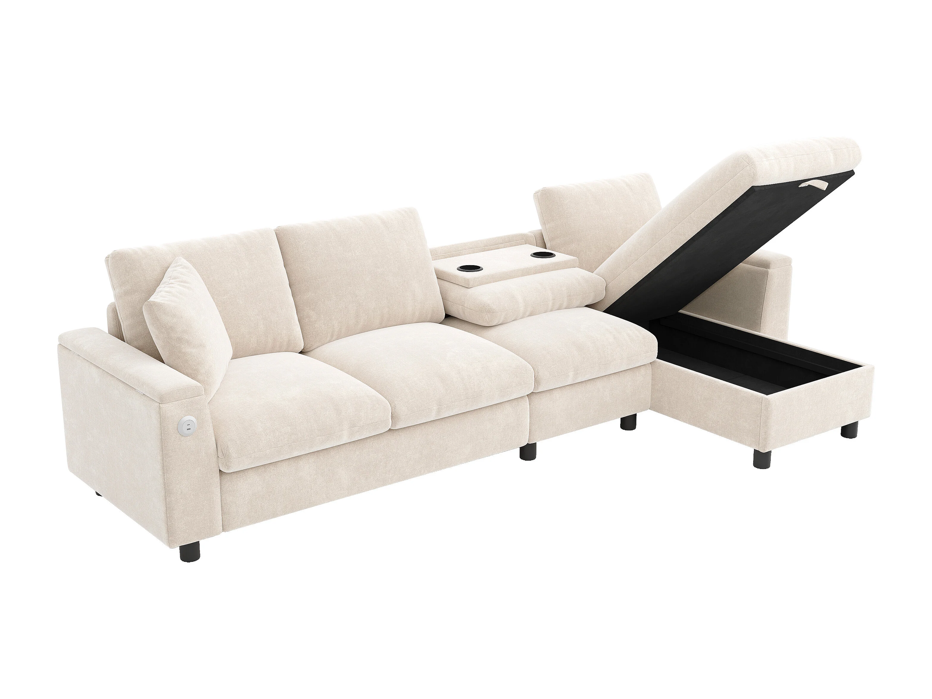 Canapé moderne - 4 places - Repose-pieds amovible - Ports USB - Compartiments de rangement + Porte-gobelets - Beige