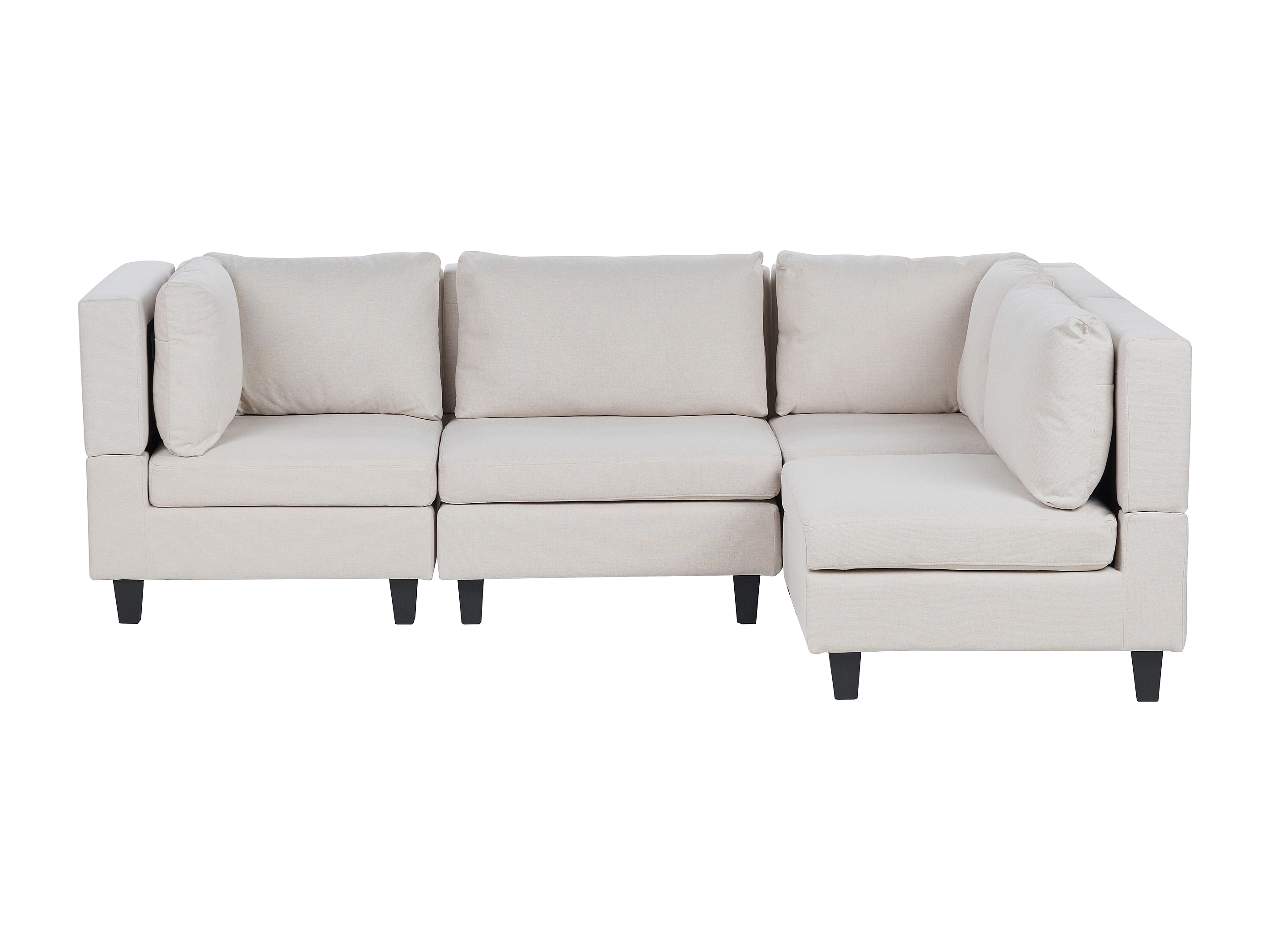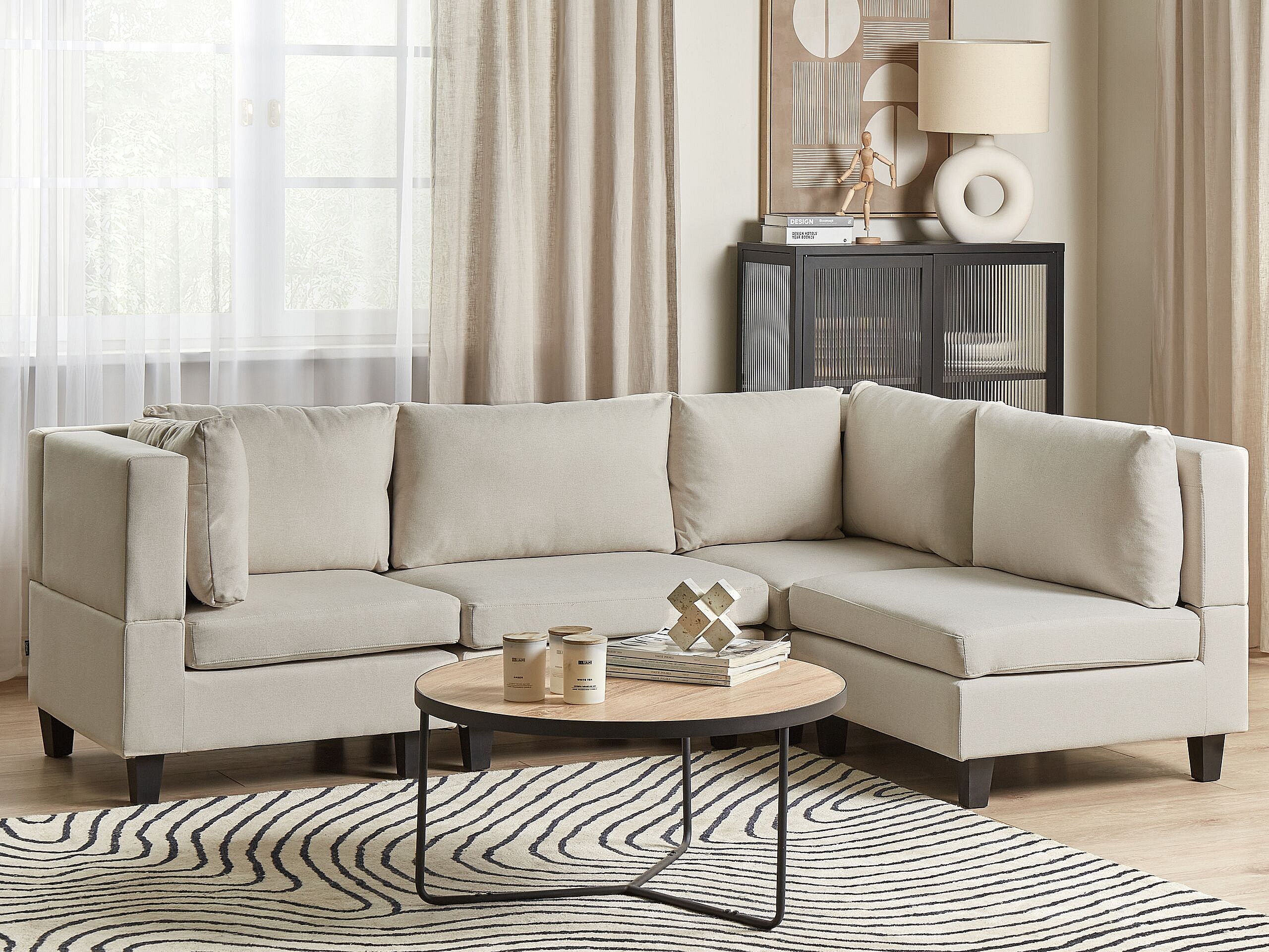 Canapé d'Angle Moderne Modulaire 4 Places Côté droite Pieds Noirs et Tissu Rembourré Beige Clair Unstad