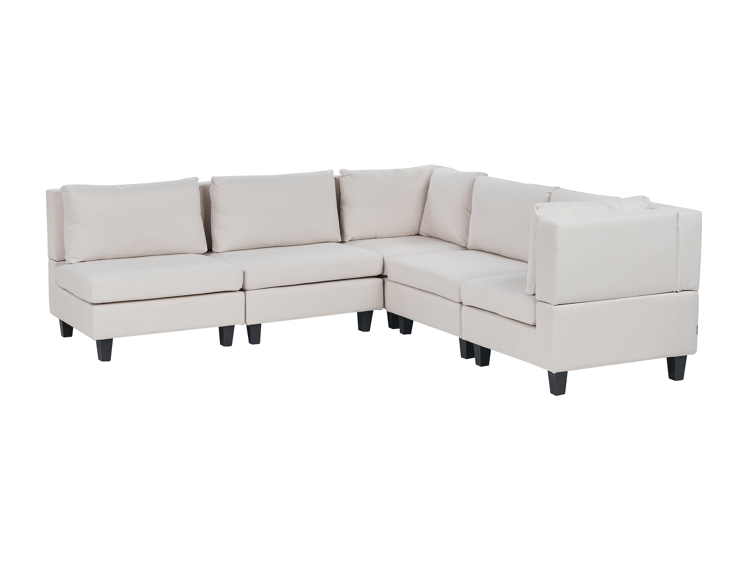 Canapé d'Angle Moderne Modulaire 5 Places Côté droite Pieds Noirs et Tissu Rembourré Beige Clair Unstad