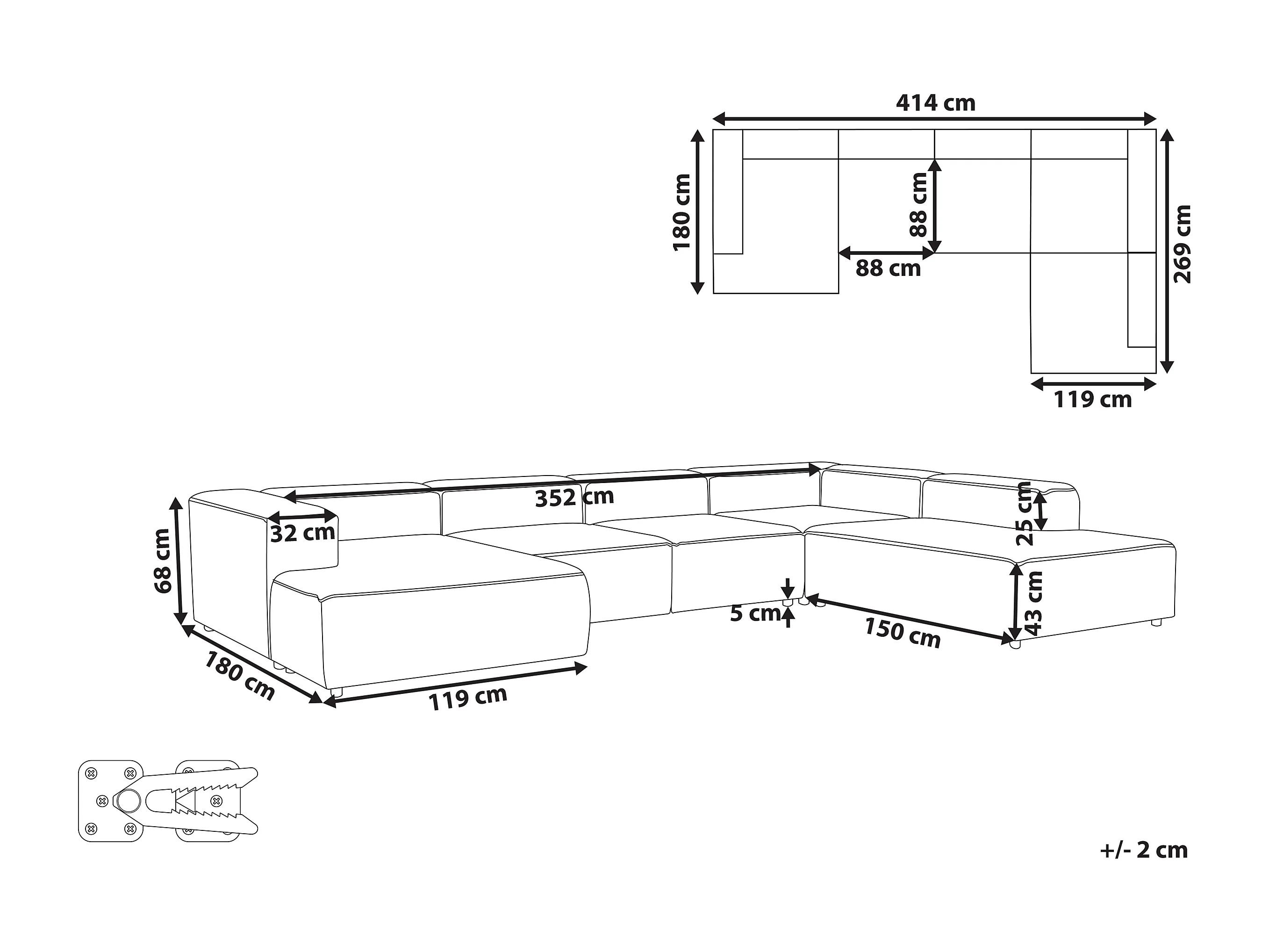 Canapé d'angle modulable 5 places ARDAL Velours côtelé Bleu foncé Côté droite