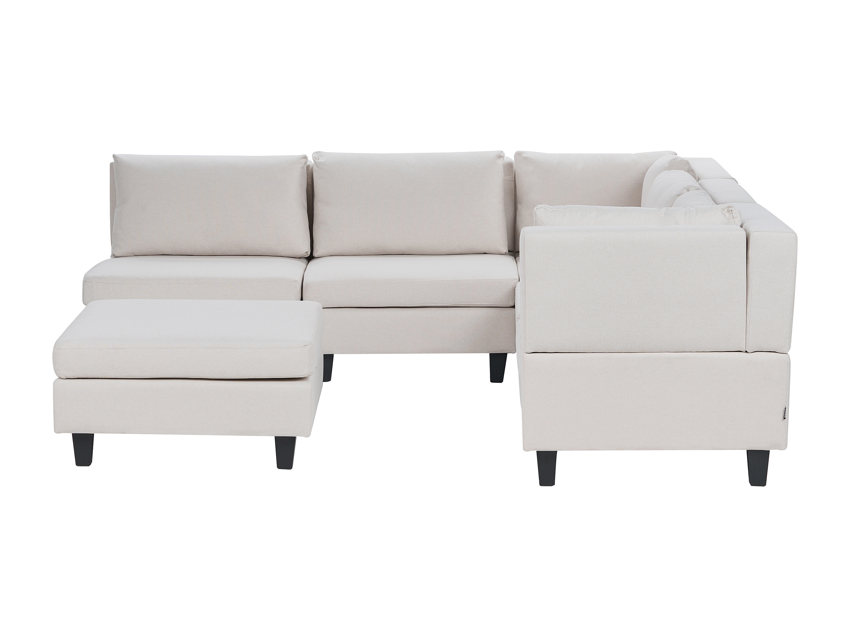 Canapé d'angle modulable 5 places UNSTAD Tissu Beige clair avec ottoman Côté droite