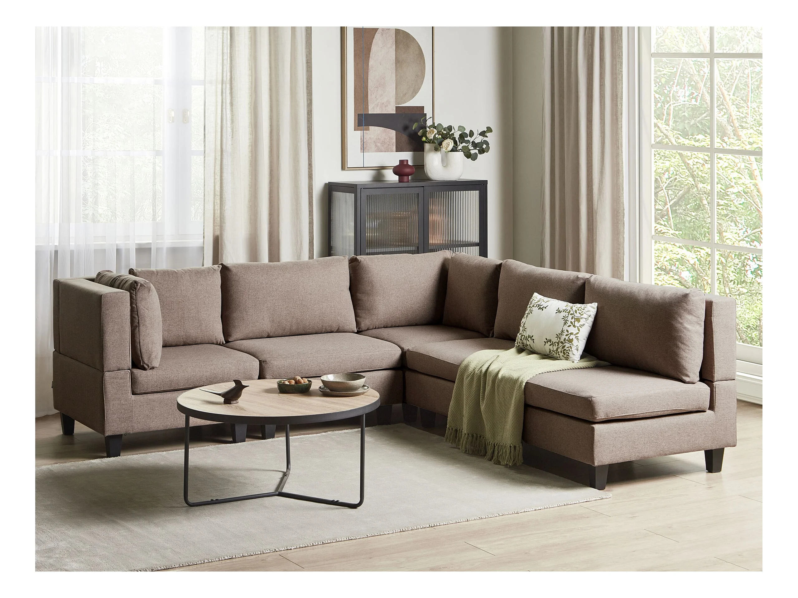 Canapé d'angle modulable 5 places UNSTAD Tissu Marron Côté droit