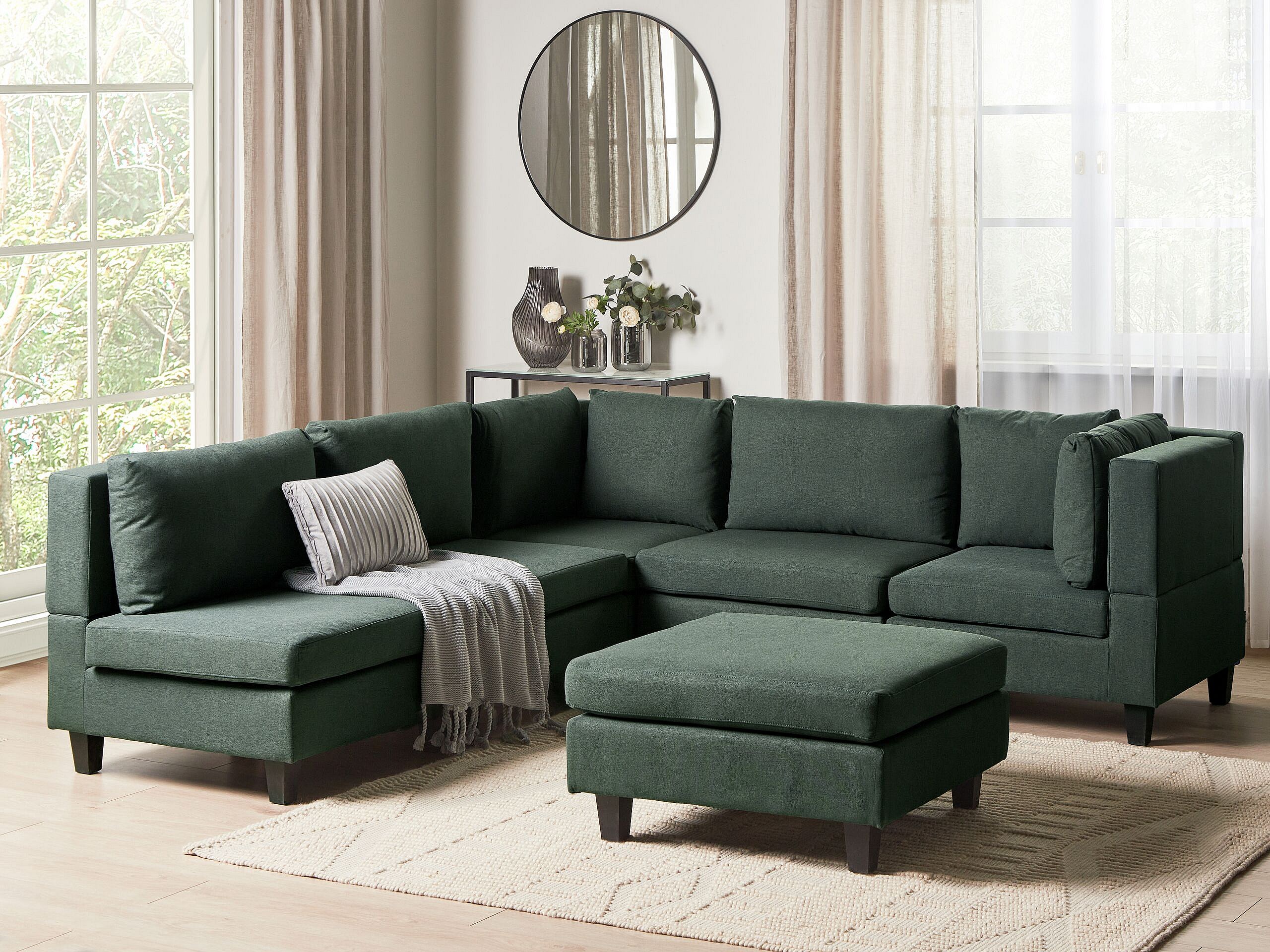 Canapé d'angle modulable 5 places UNSTAD Tissu Vert foncé avec ottoman Côté droite