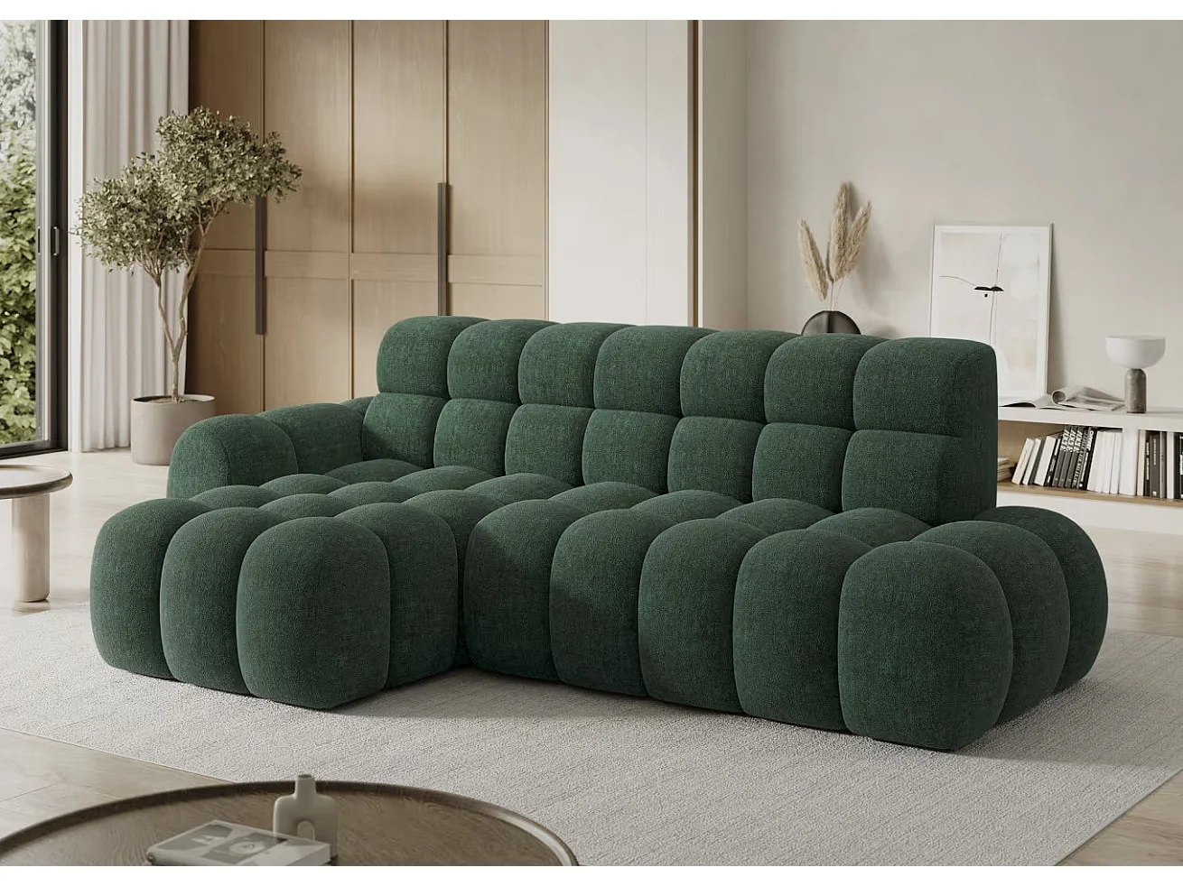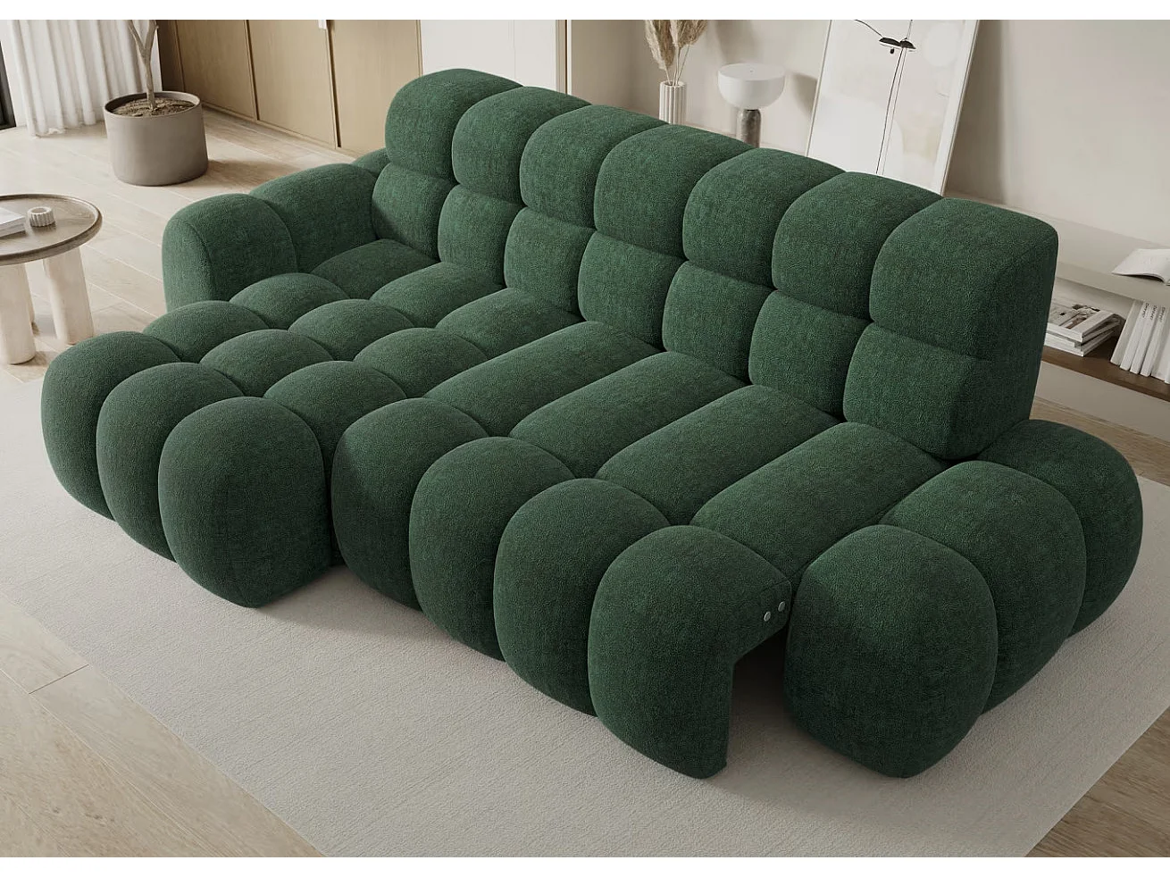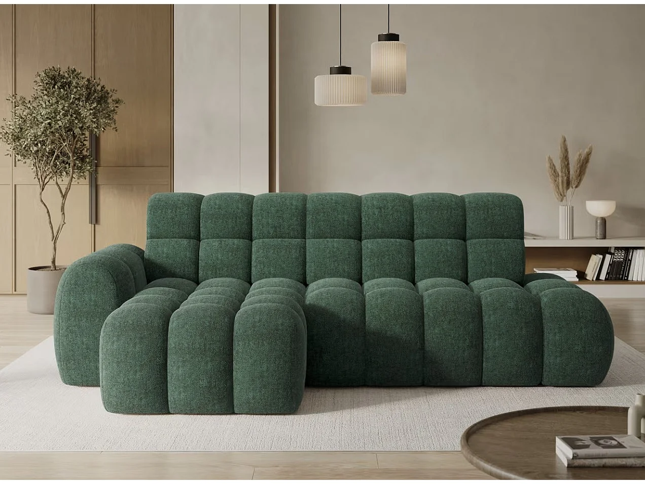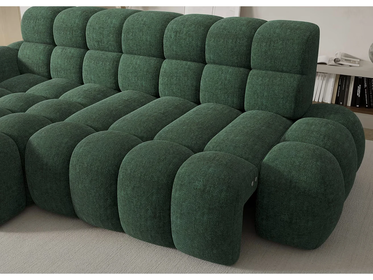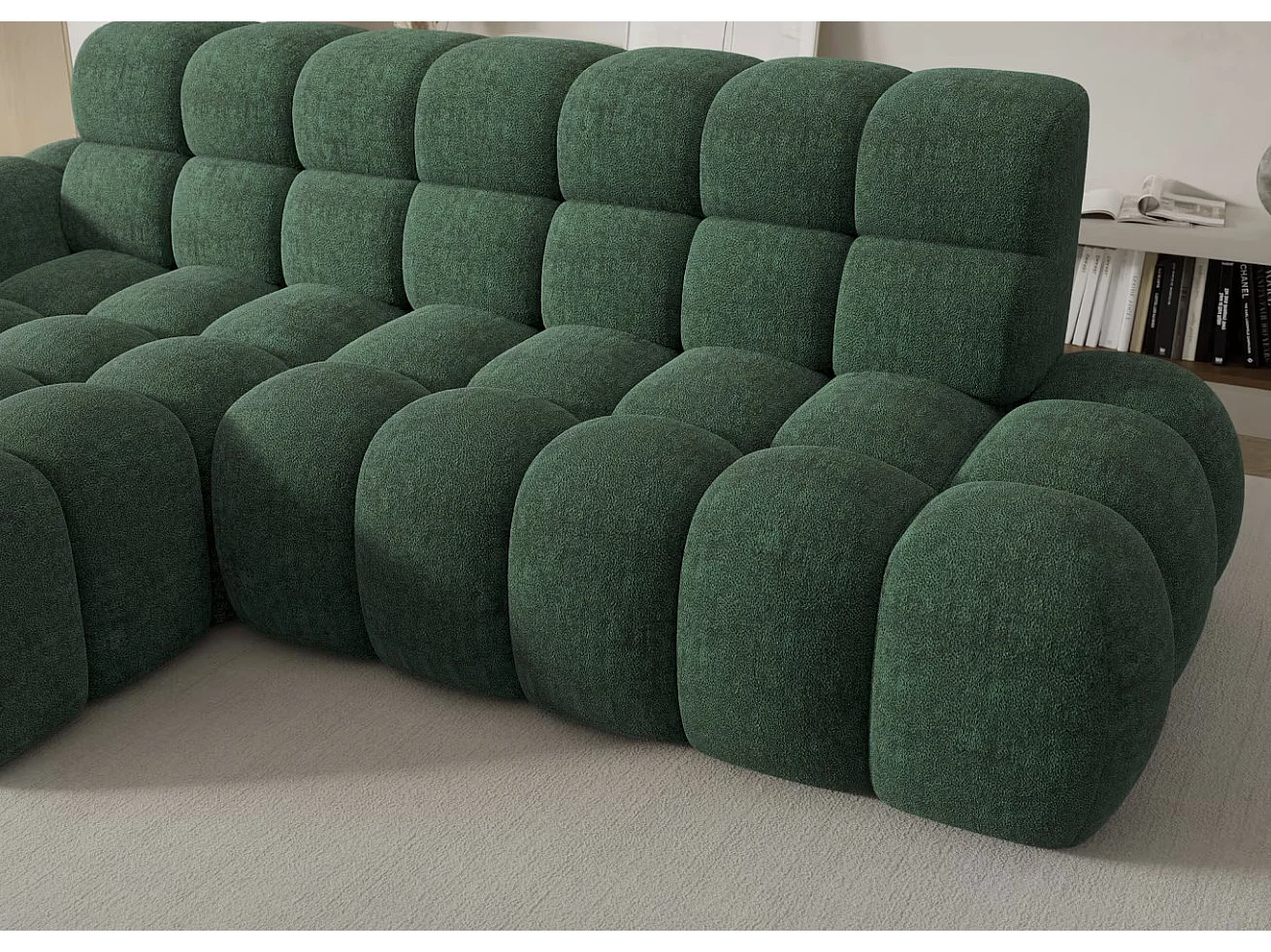 Canapé d’angle convertible 4 places tissu KINDO 283cm – Assise électrique-Beige clair-angle droit