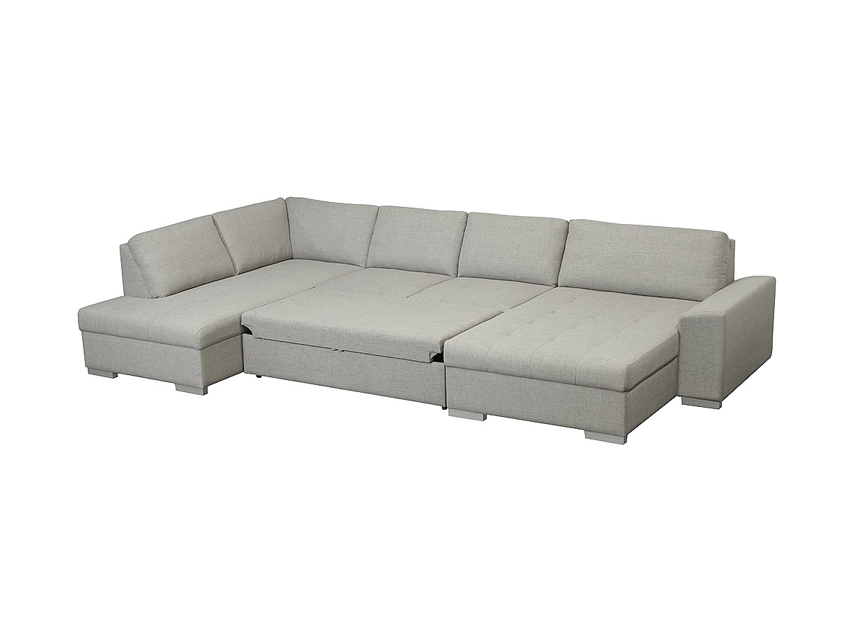 Canapé d'angle panoramique convertible en tissu PERICO - Gris clair - Angle droit