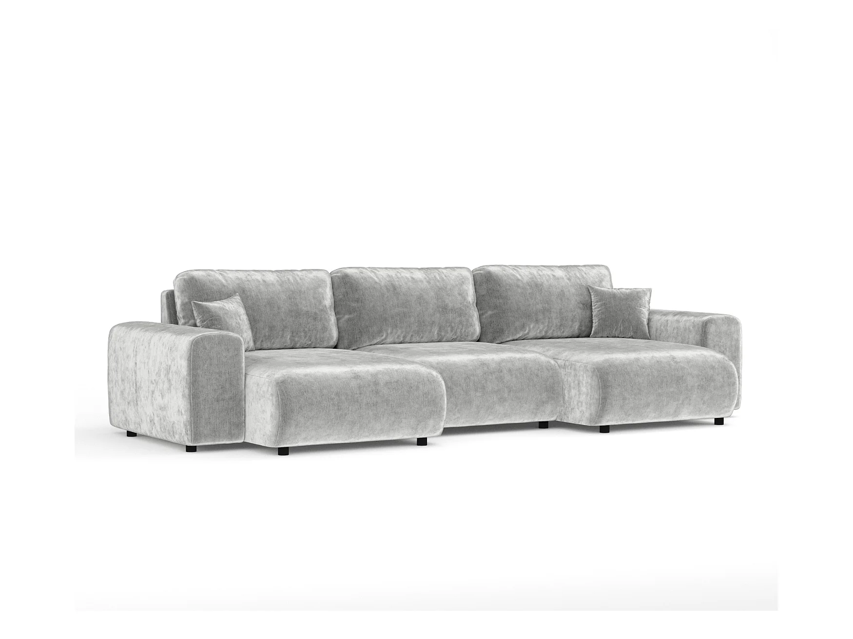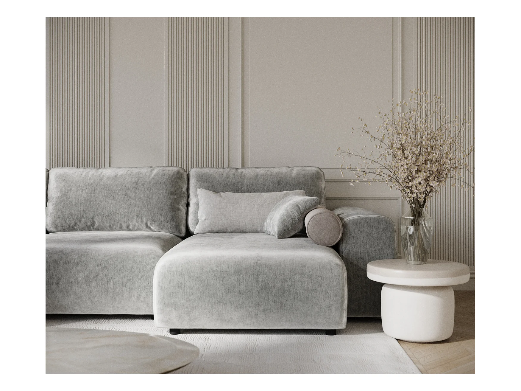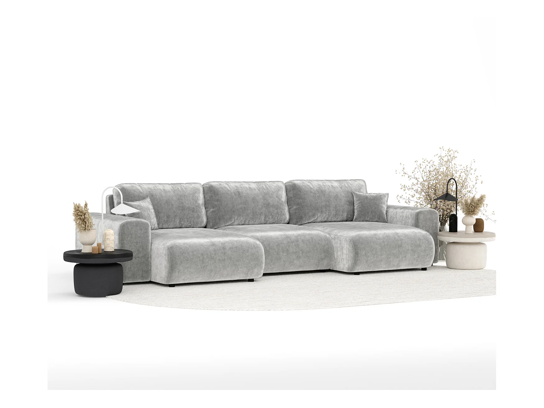 Canapé d'angle panoramique en tissu chenille Zanzibar - 6 places - gris clair