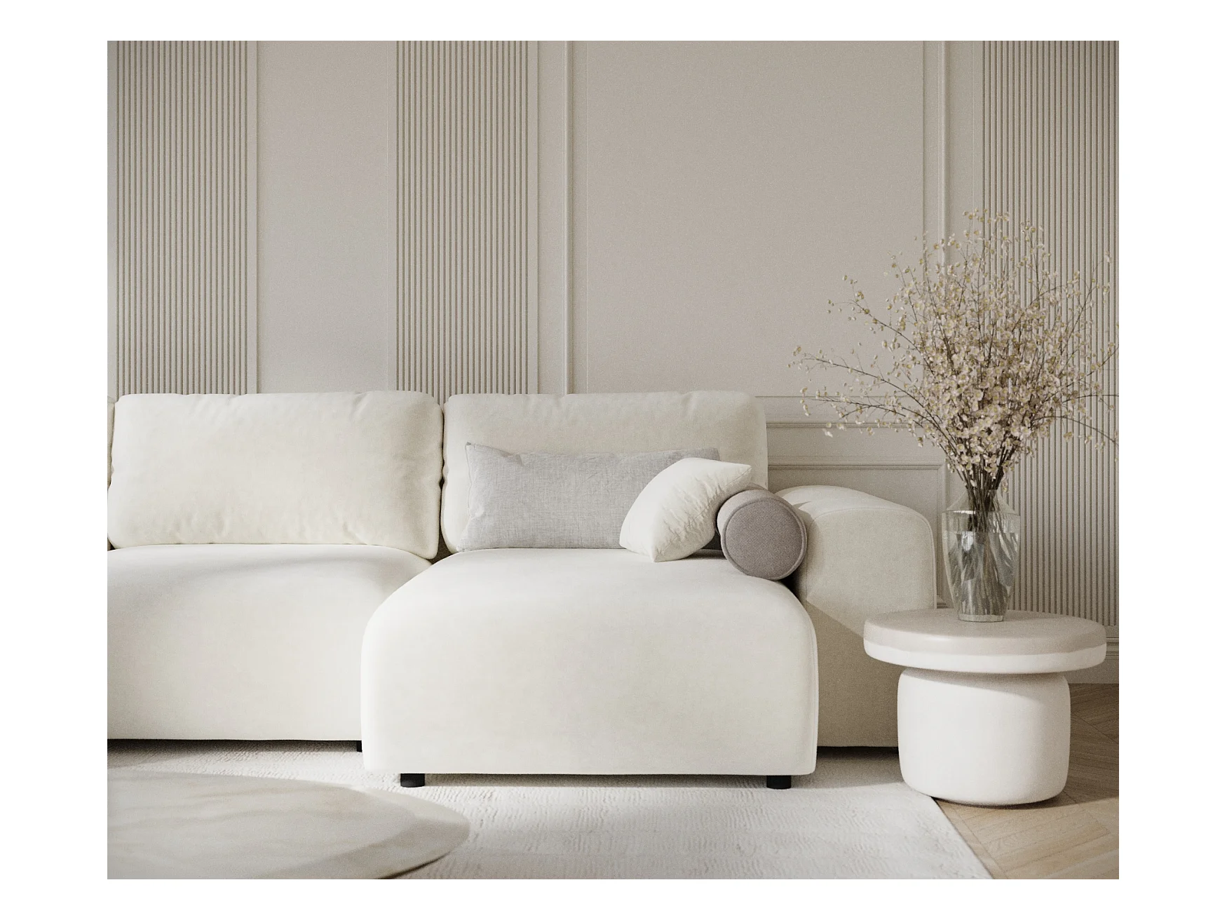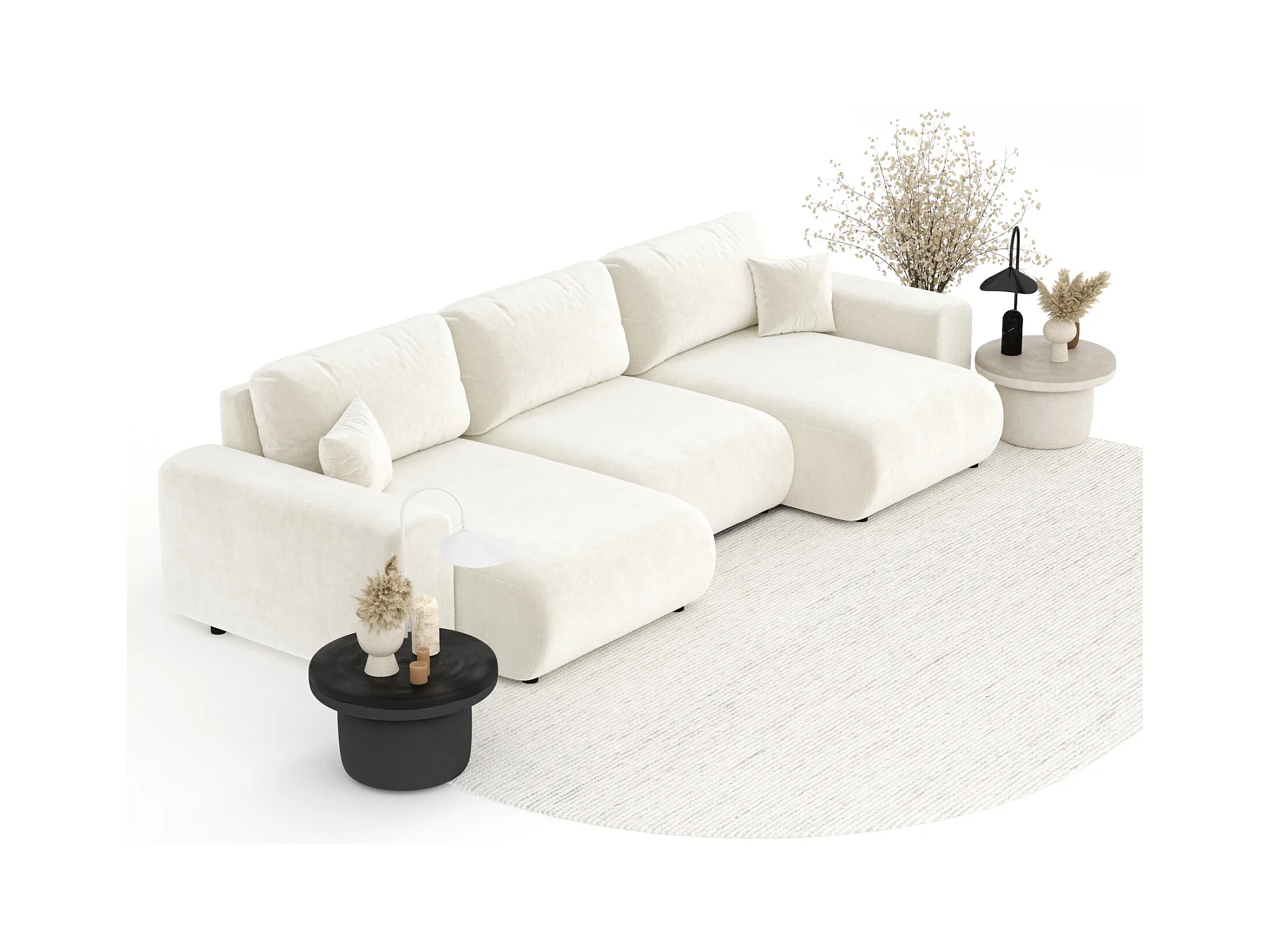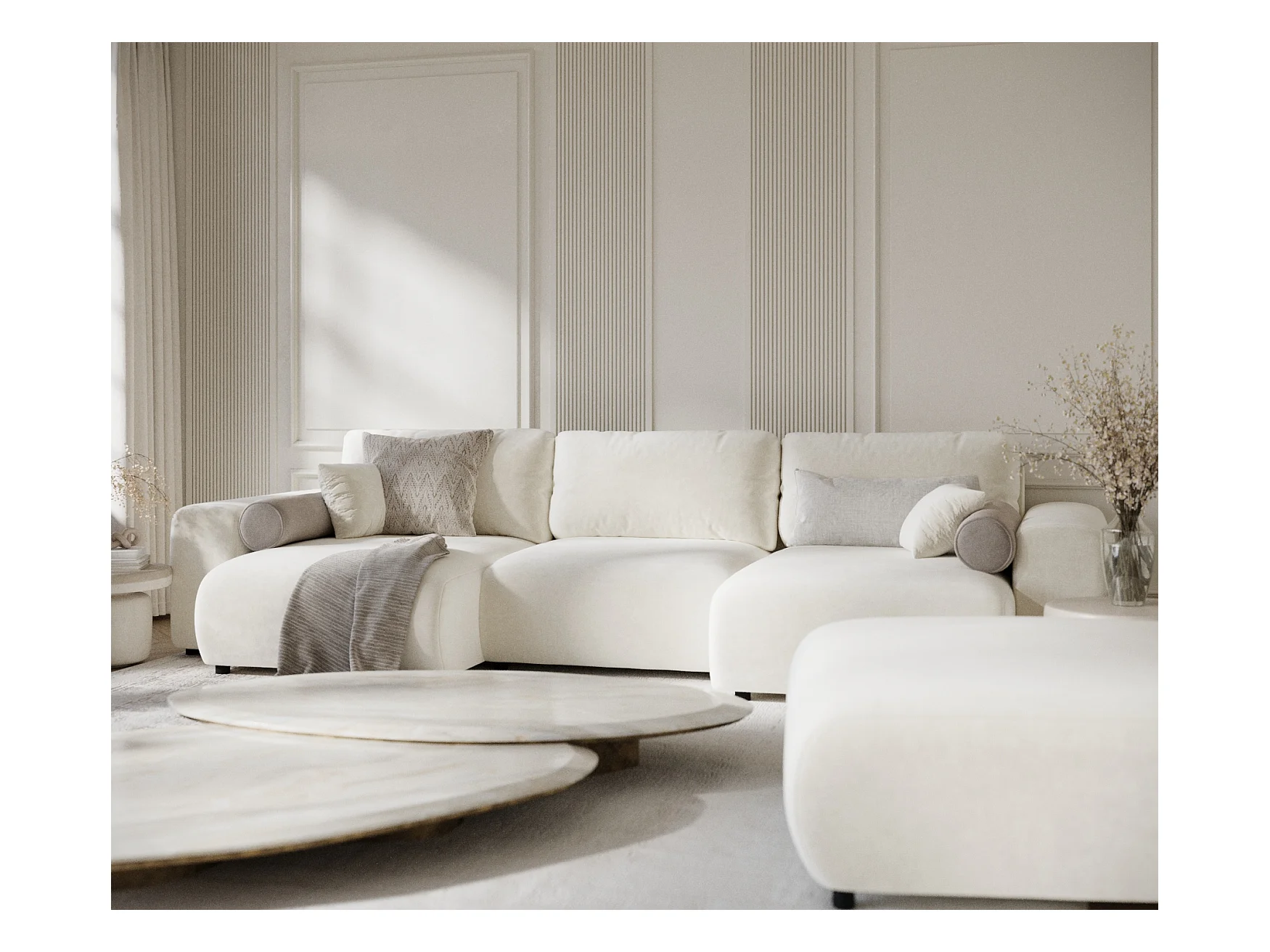 Canapé d'angle panoramique en tissu velours Zanzibar - 6 places - creme