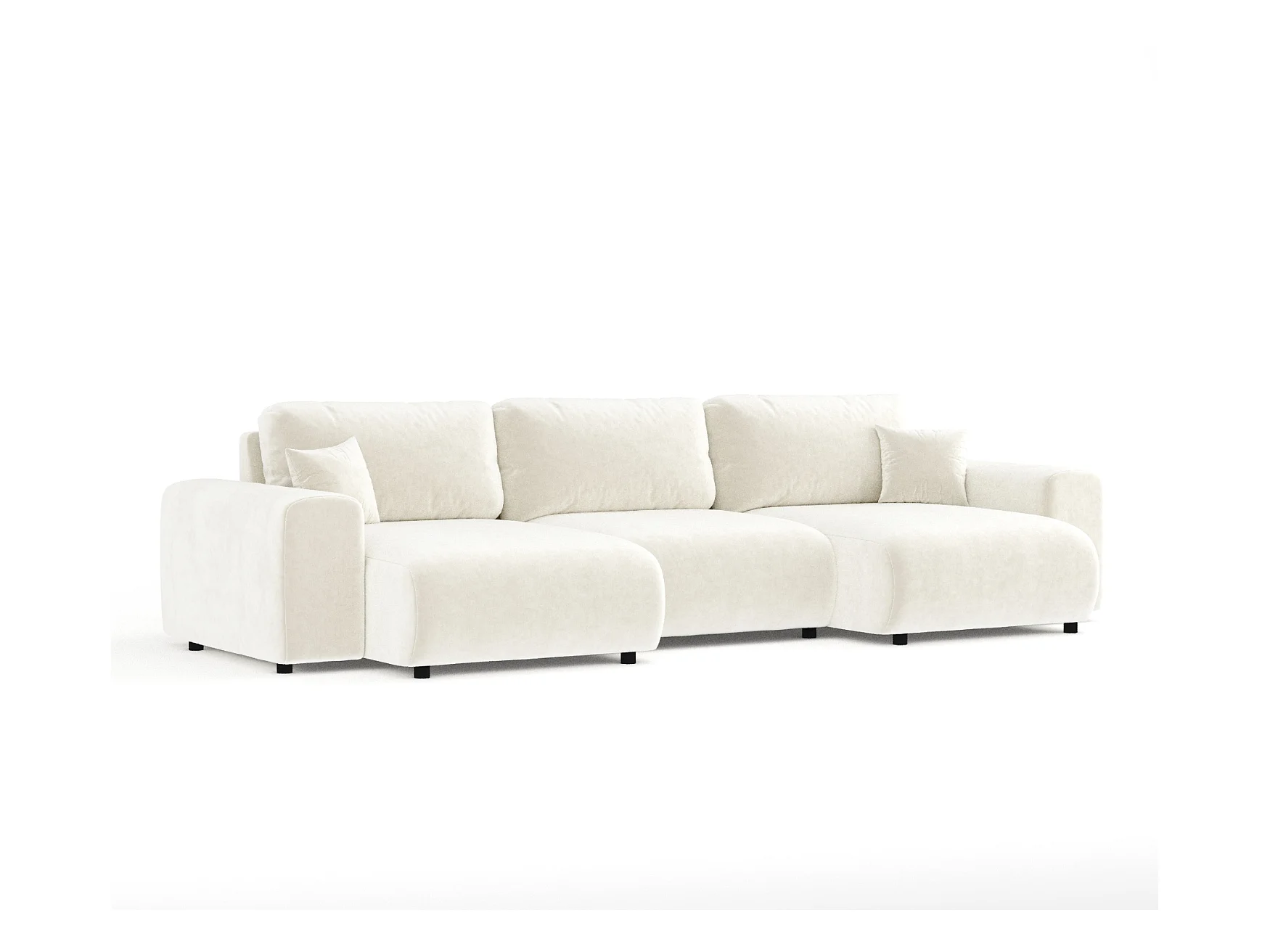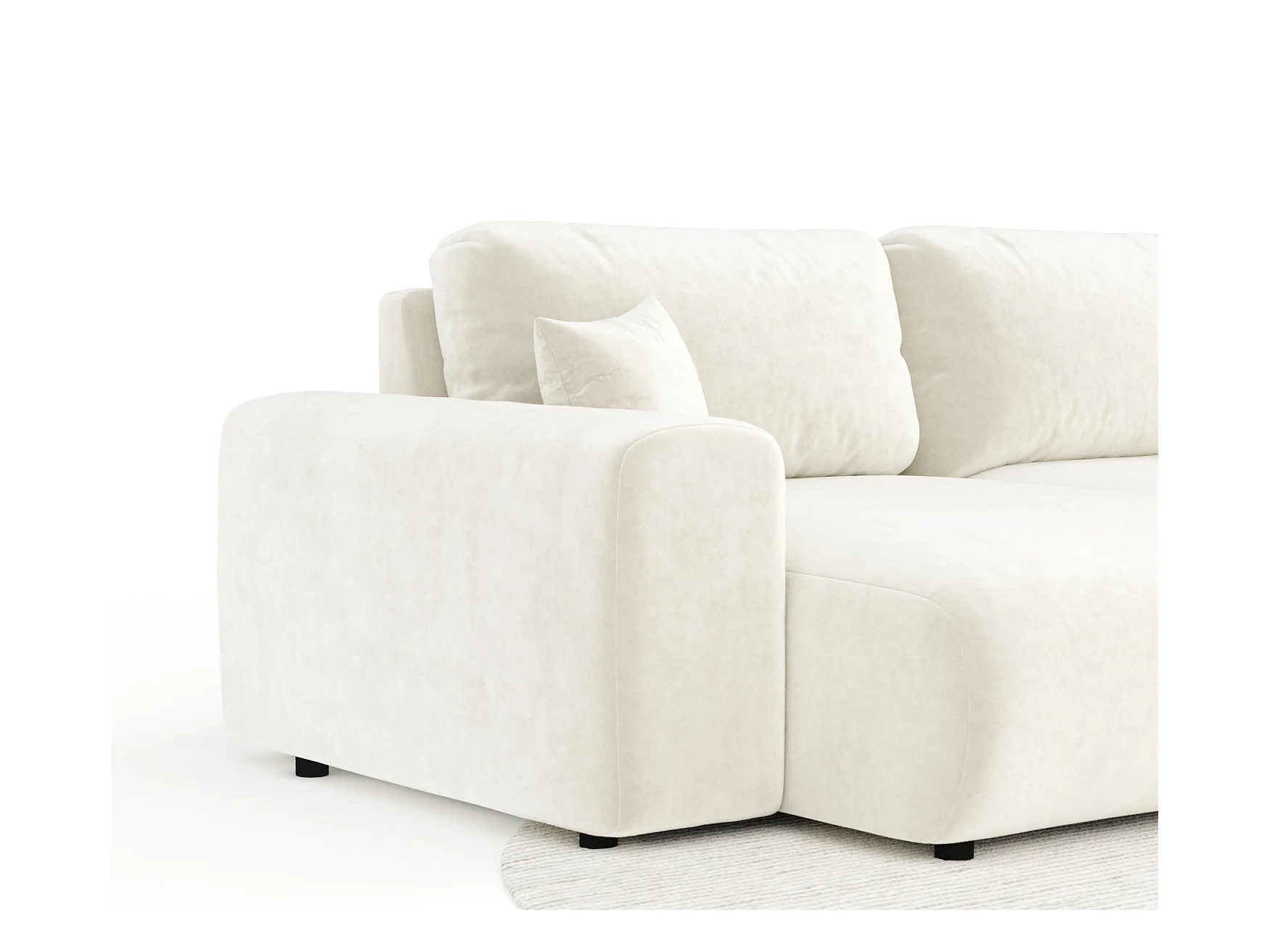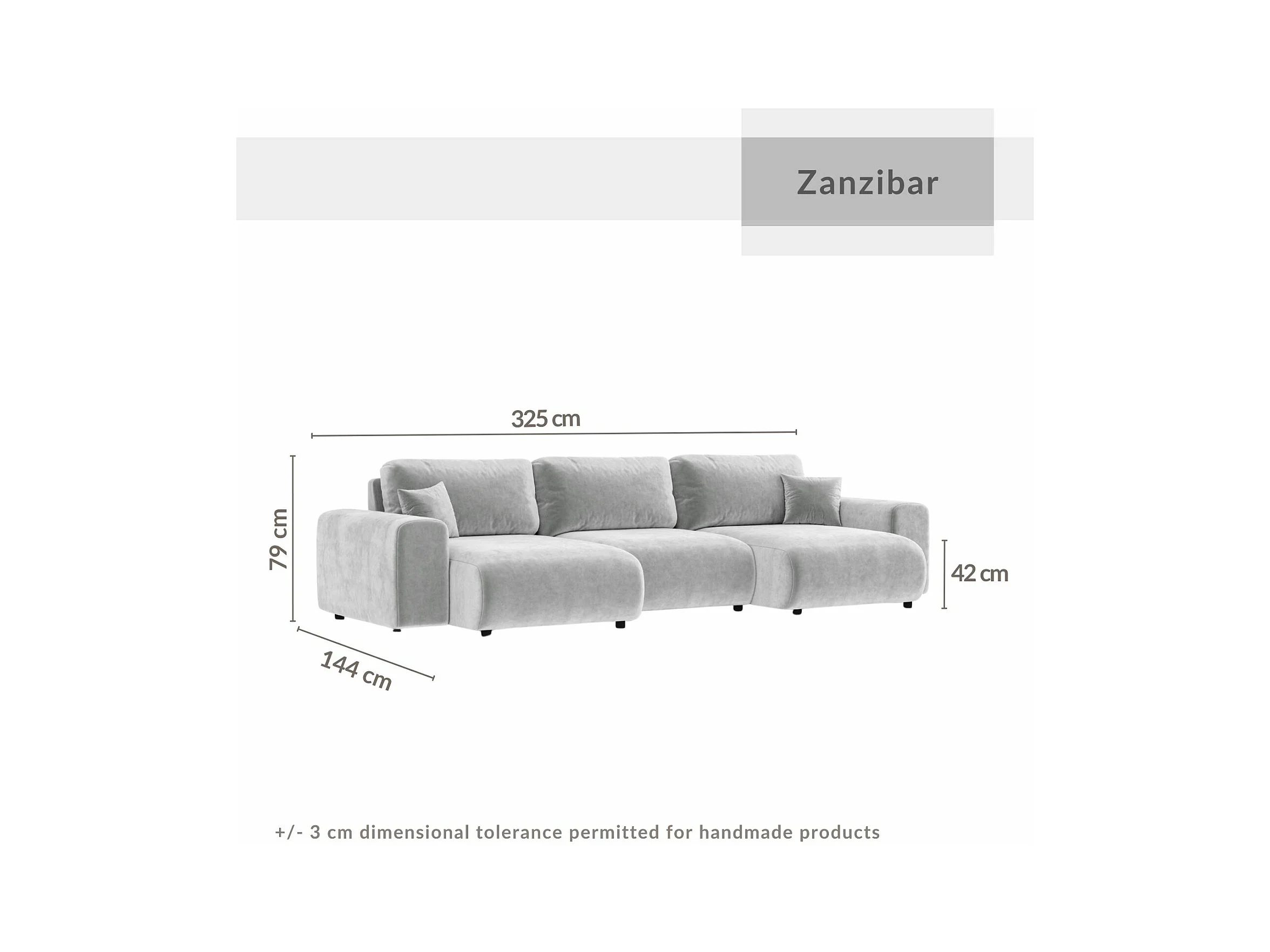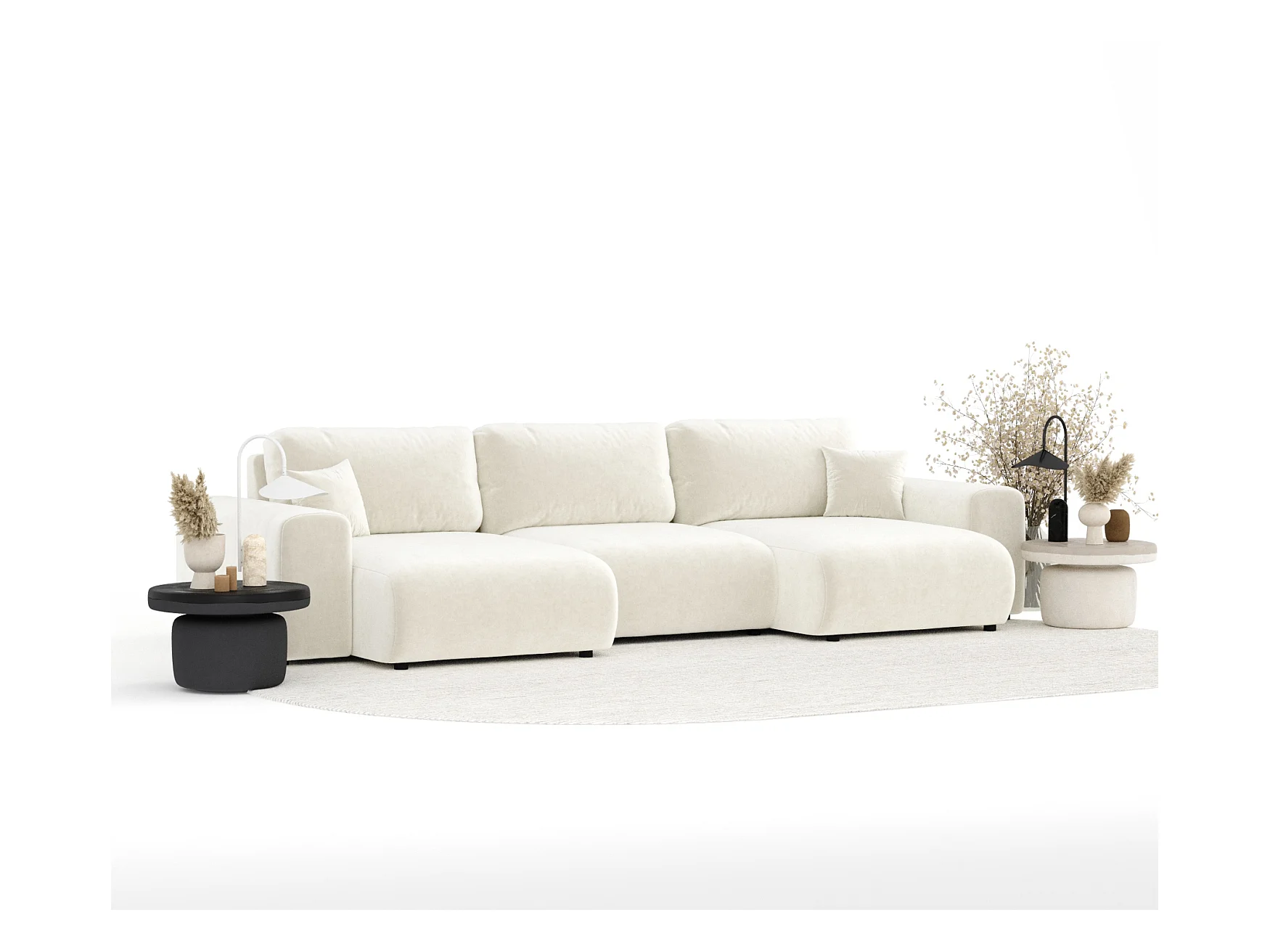 Canapé d'angle panoramique en tissu velours Zanzibar - 6 places - creme