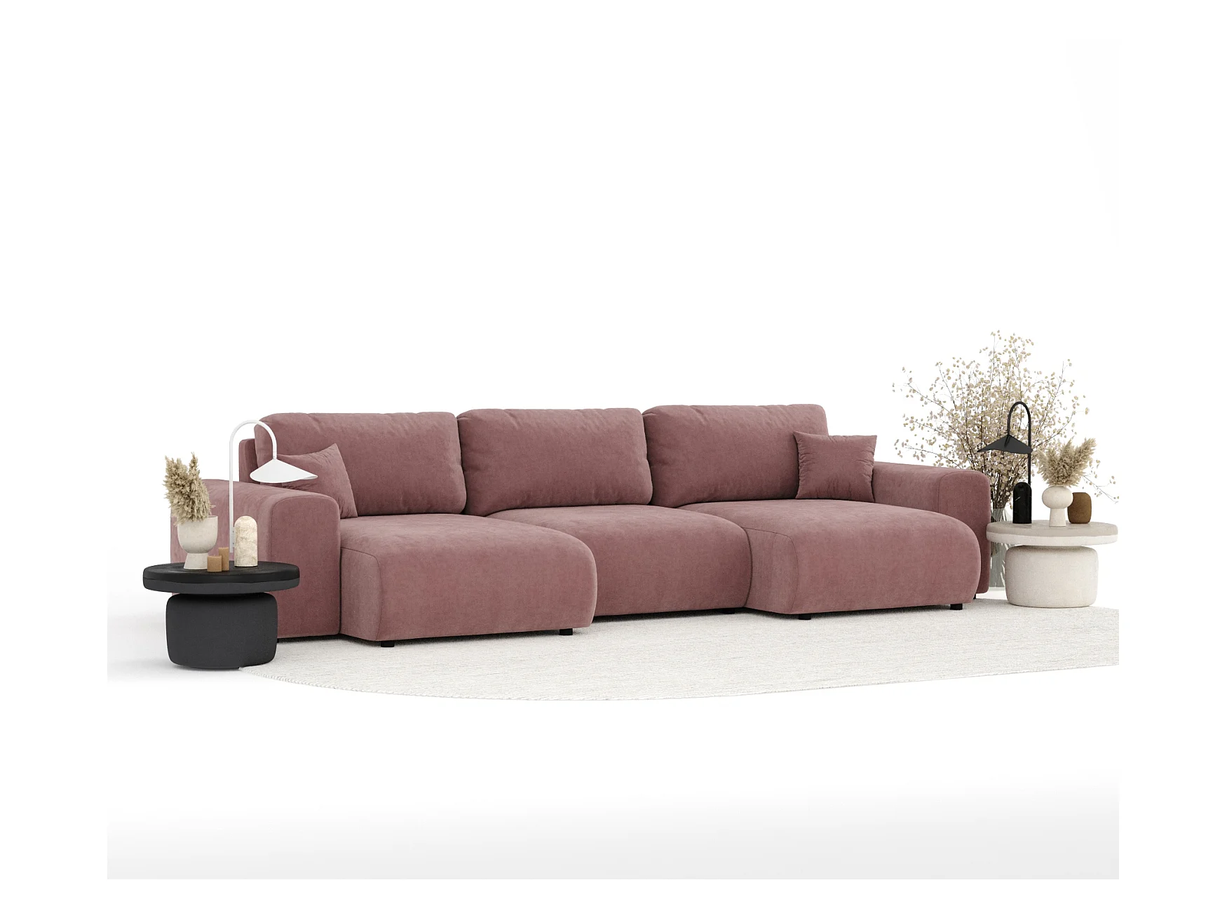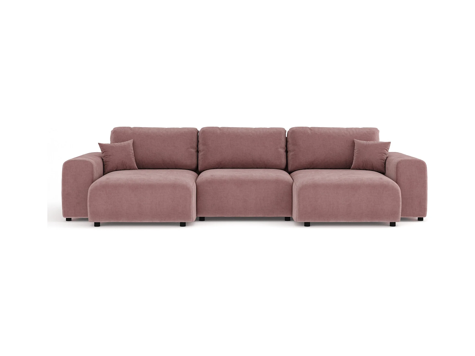 Canapé d'angle panoramique en tissu velours Zanzibar - 6 places - rose