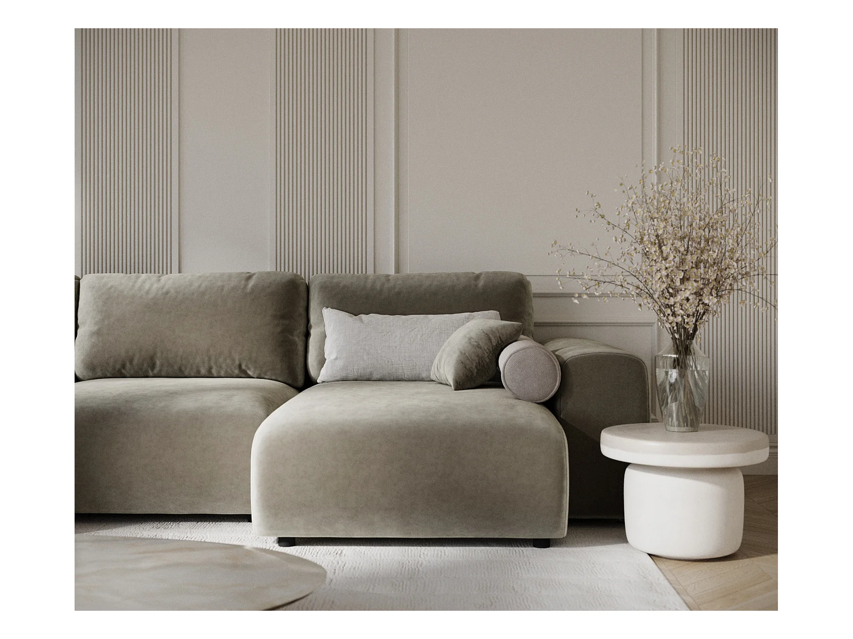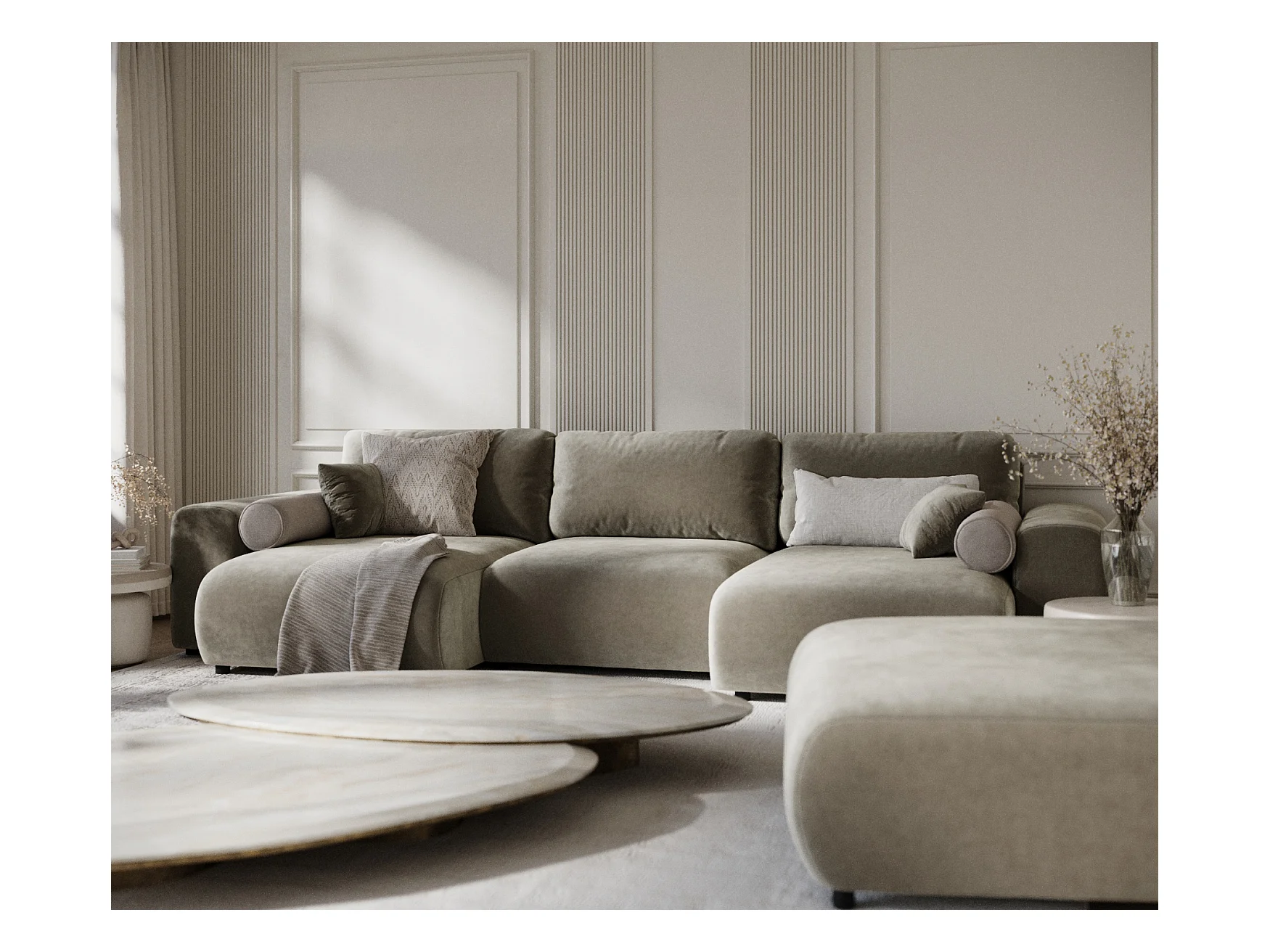 Canapé d'angle panoramique en tissu velours Zanzibar - 6 places - taupe