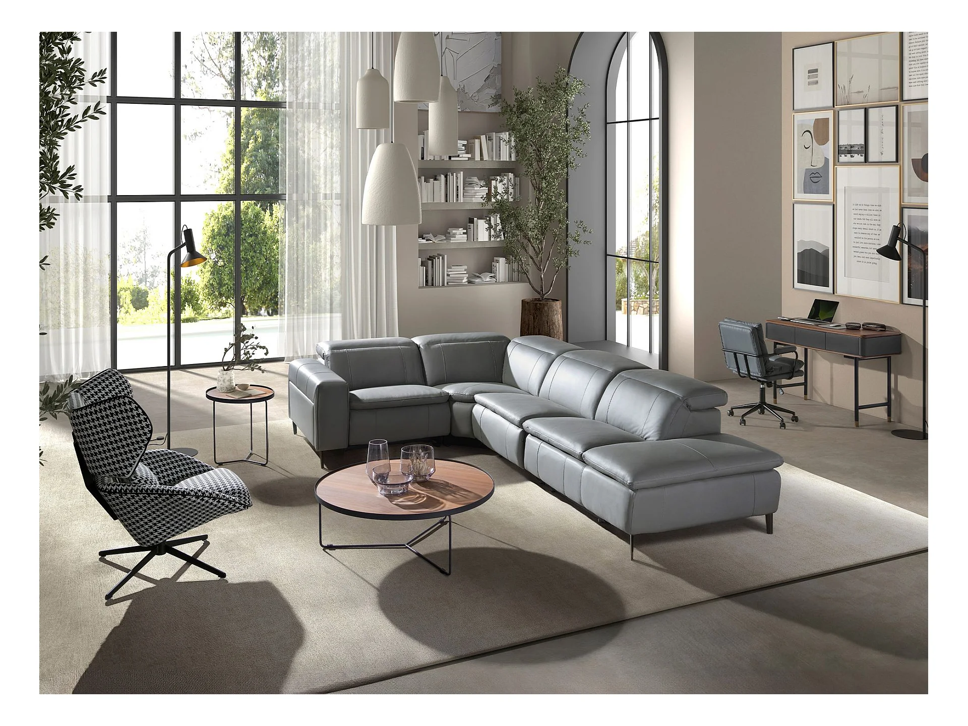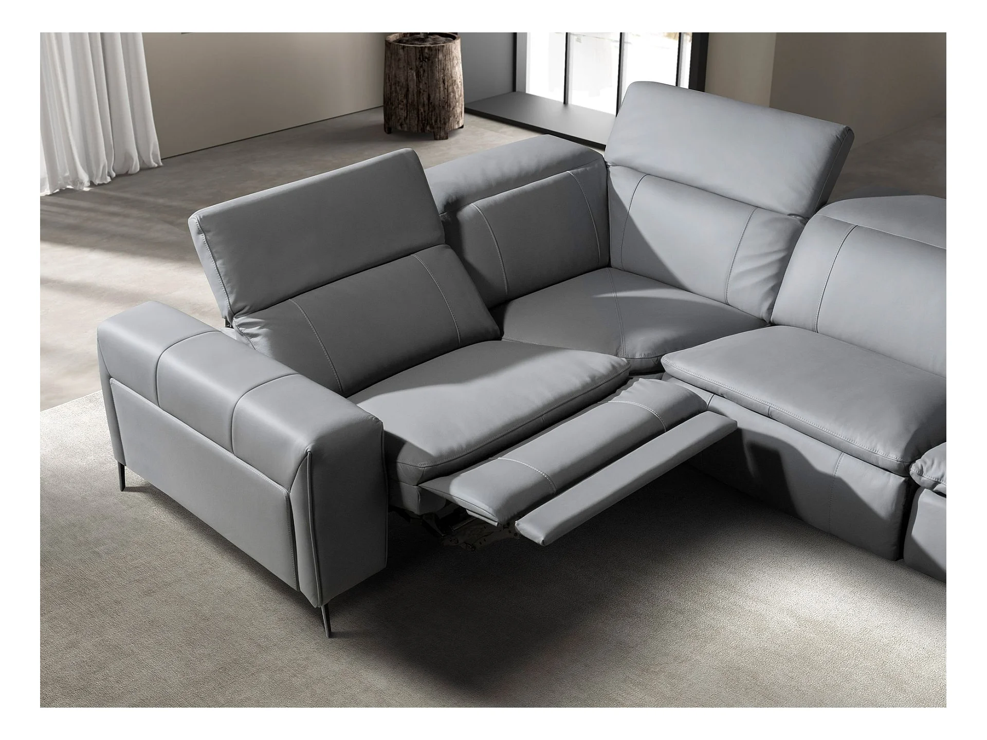 Canapé d'angle relax droite en cuir gris 6217 ANGEL CERDA