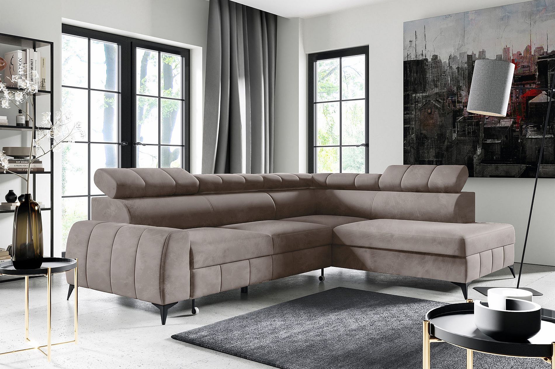 Canapé d'angle réversible - en velours marron clair - côté droit - LONDON