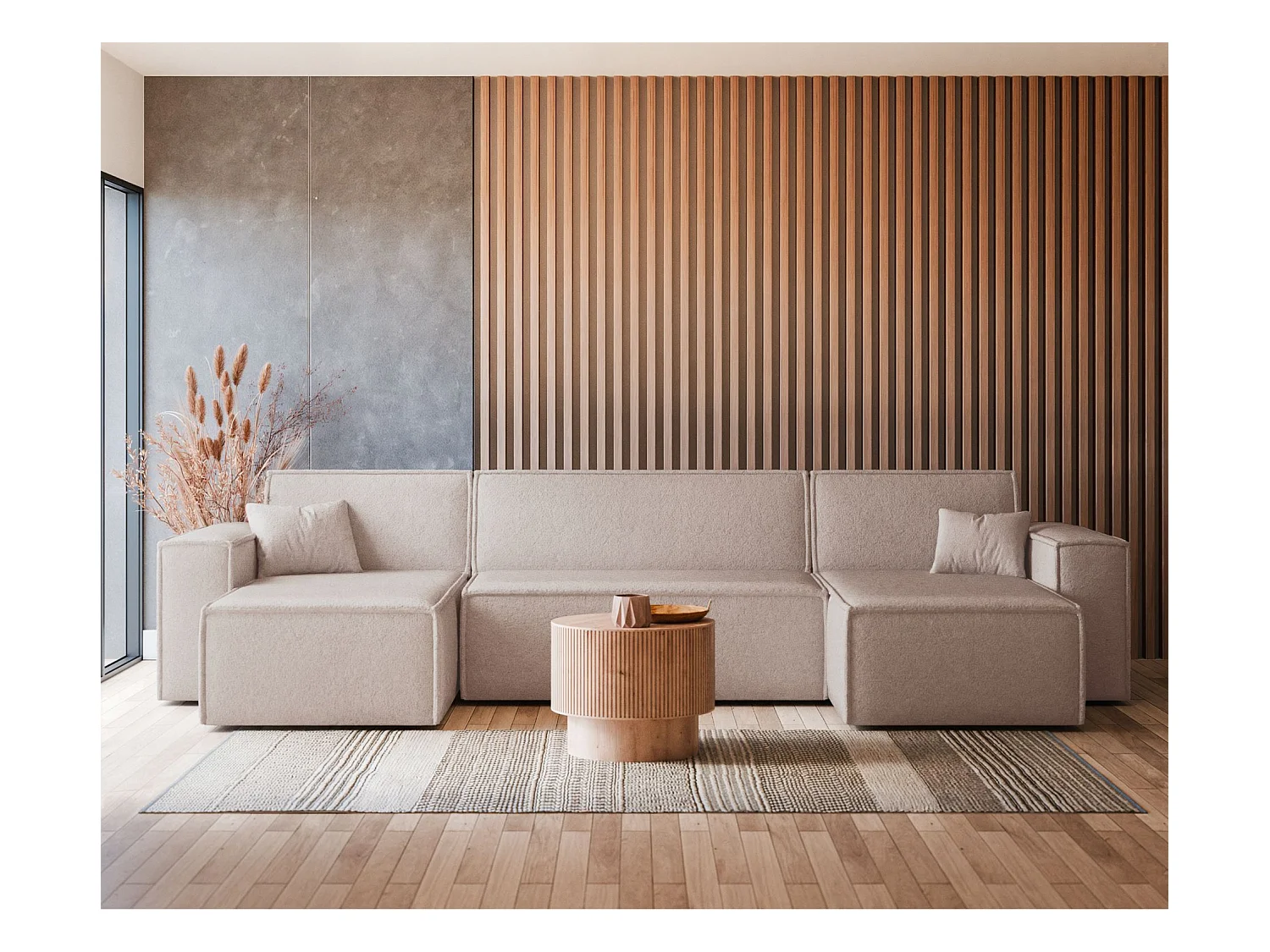Canapé d'angle U convertible - en boucle beige clair - SCARLO