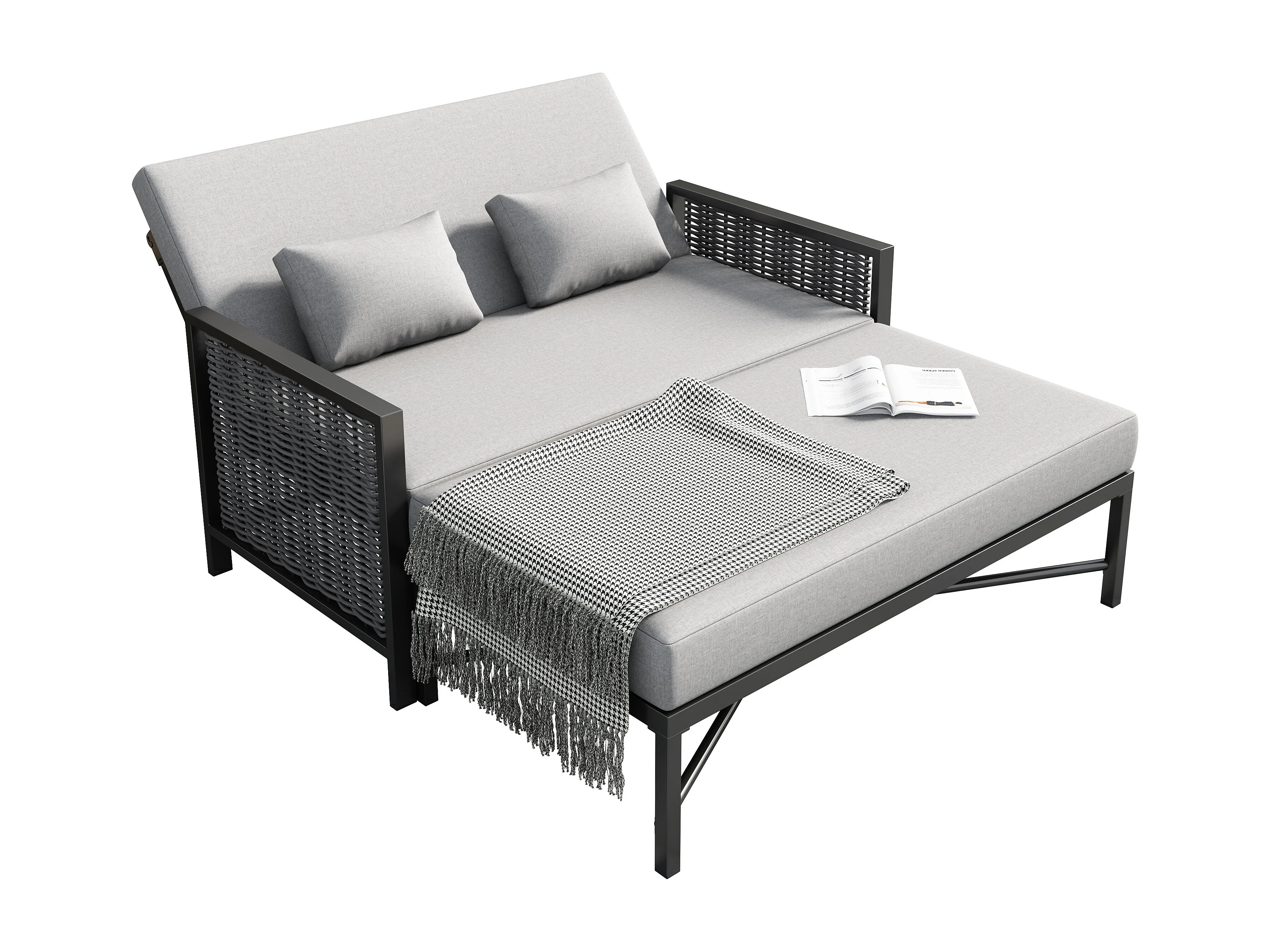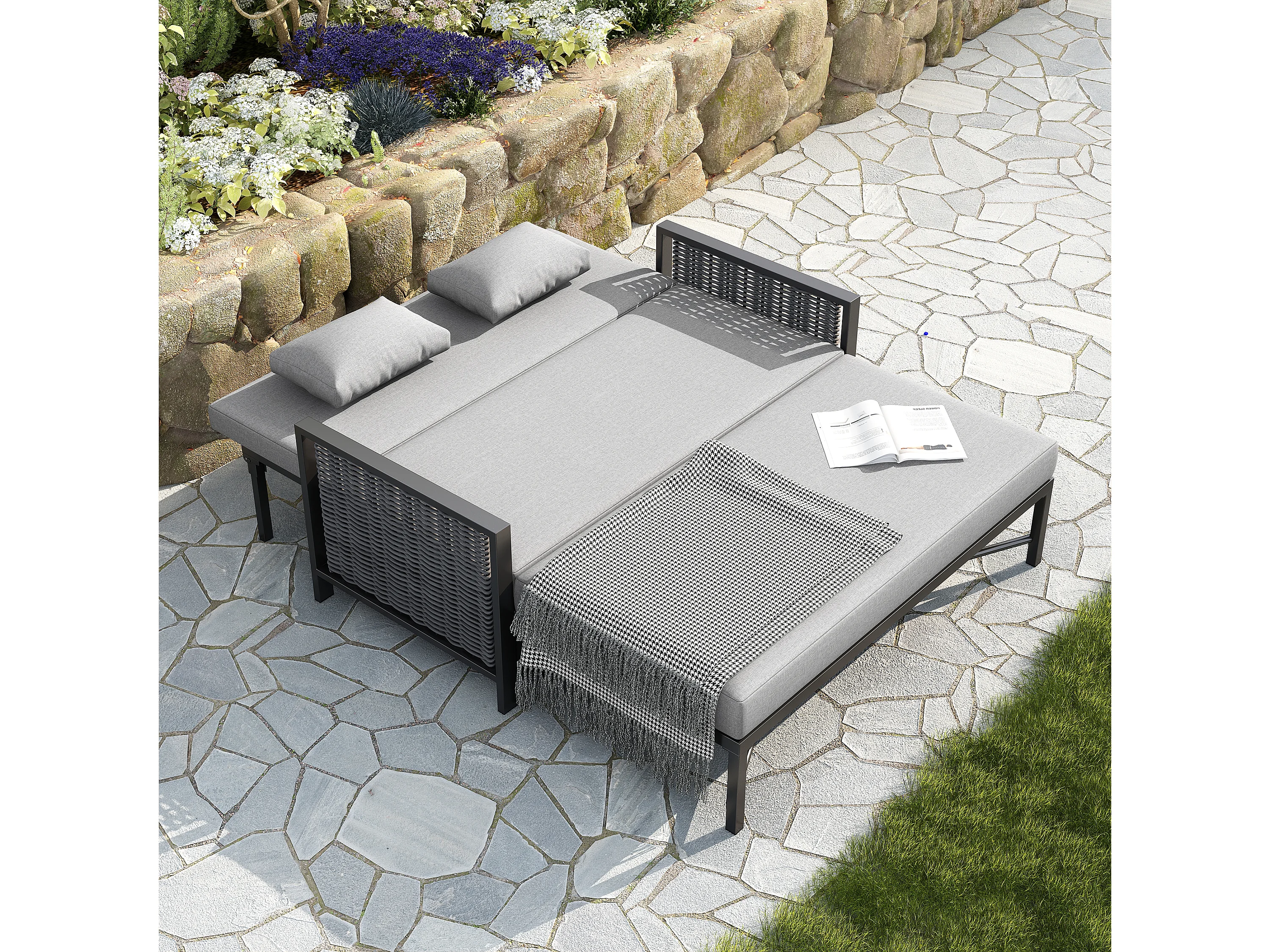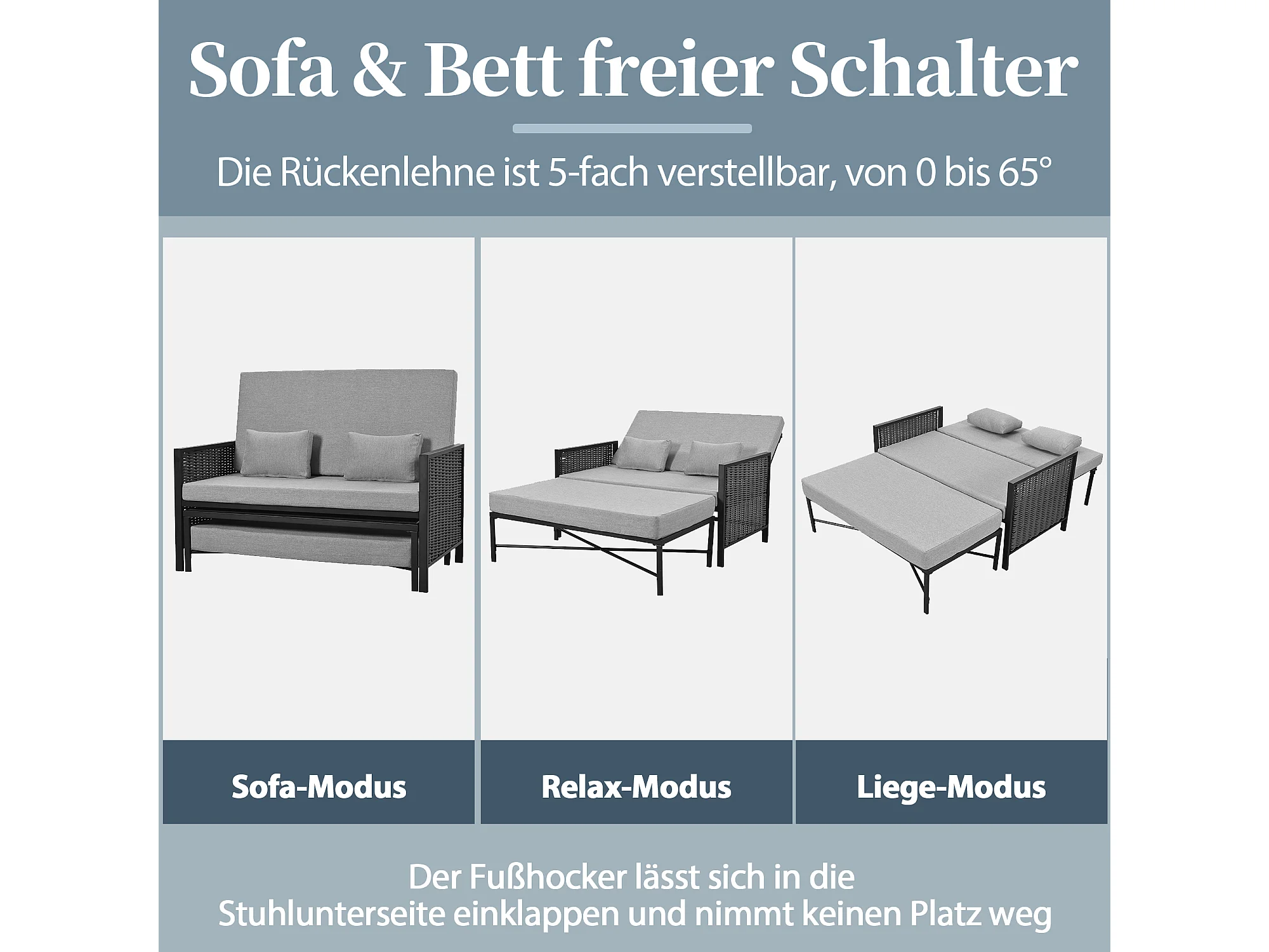 Canapé de jardin 2 places - 151.3 x 131.5 x 91 cm - canapé avec dossier réglable + repose-pieds rétractable - Polyester - gris