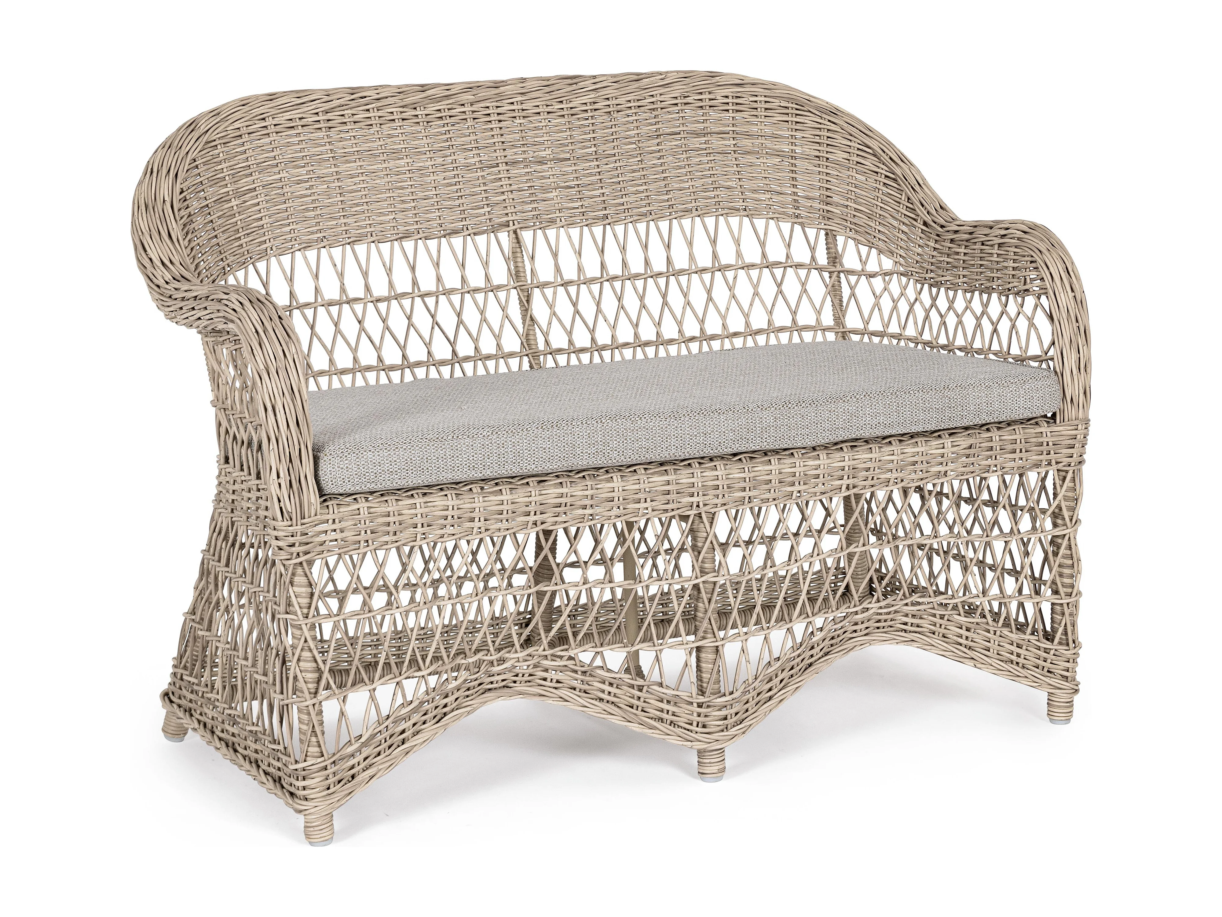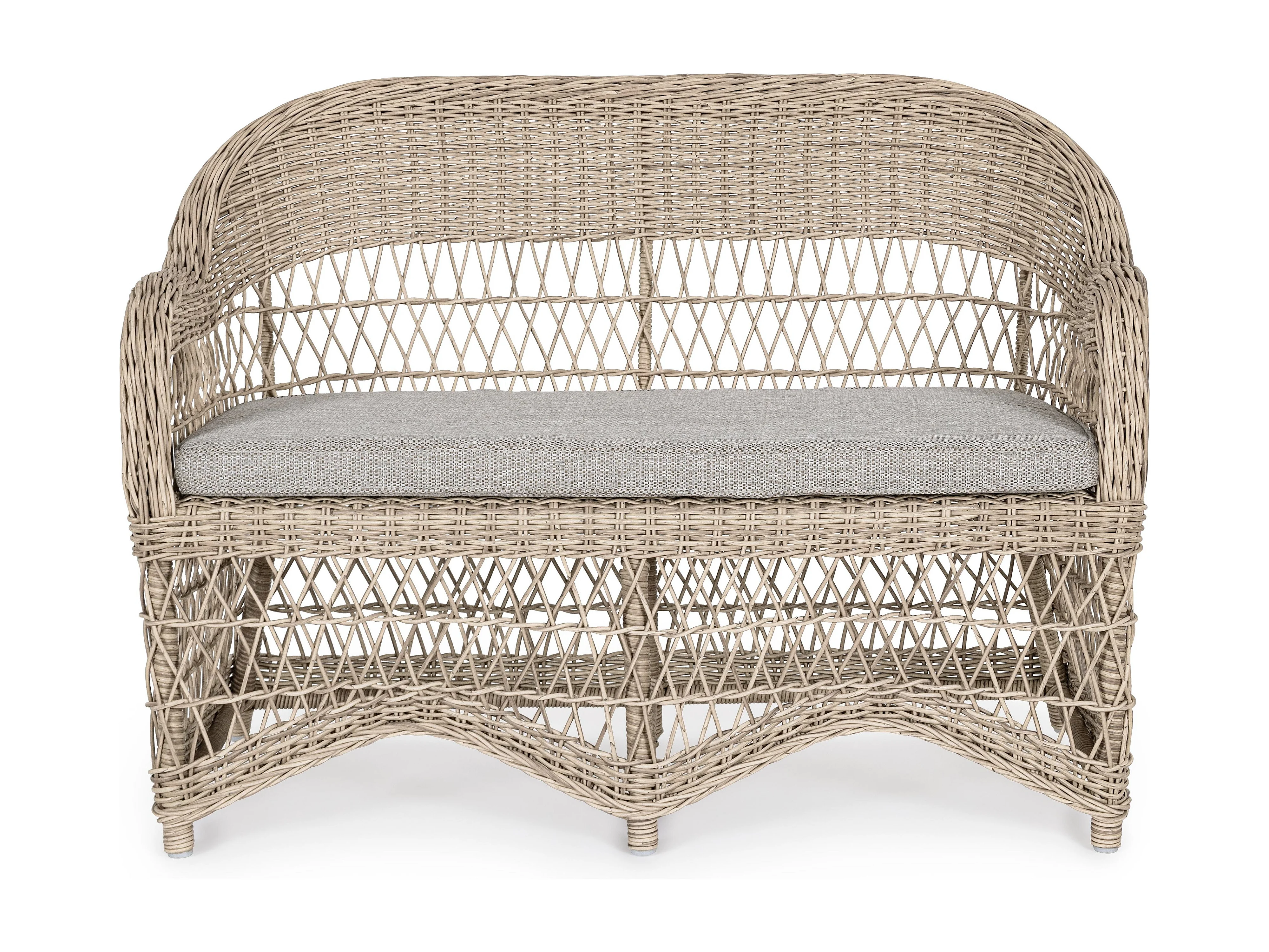 Canapé de jardin arrondi tressages fibres synthétiques beige Guliver