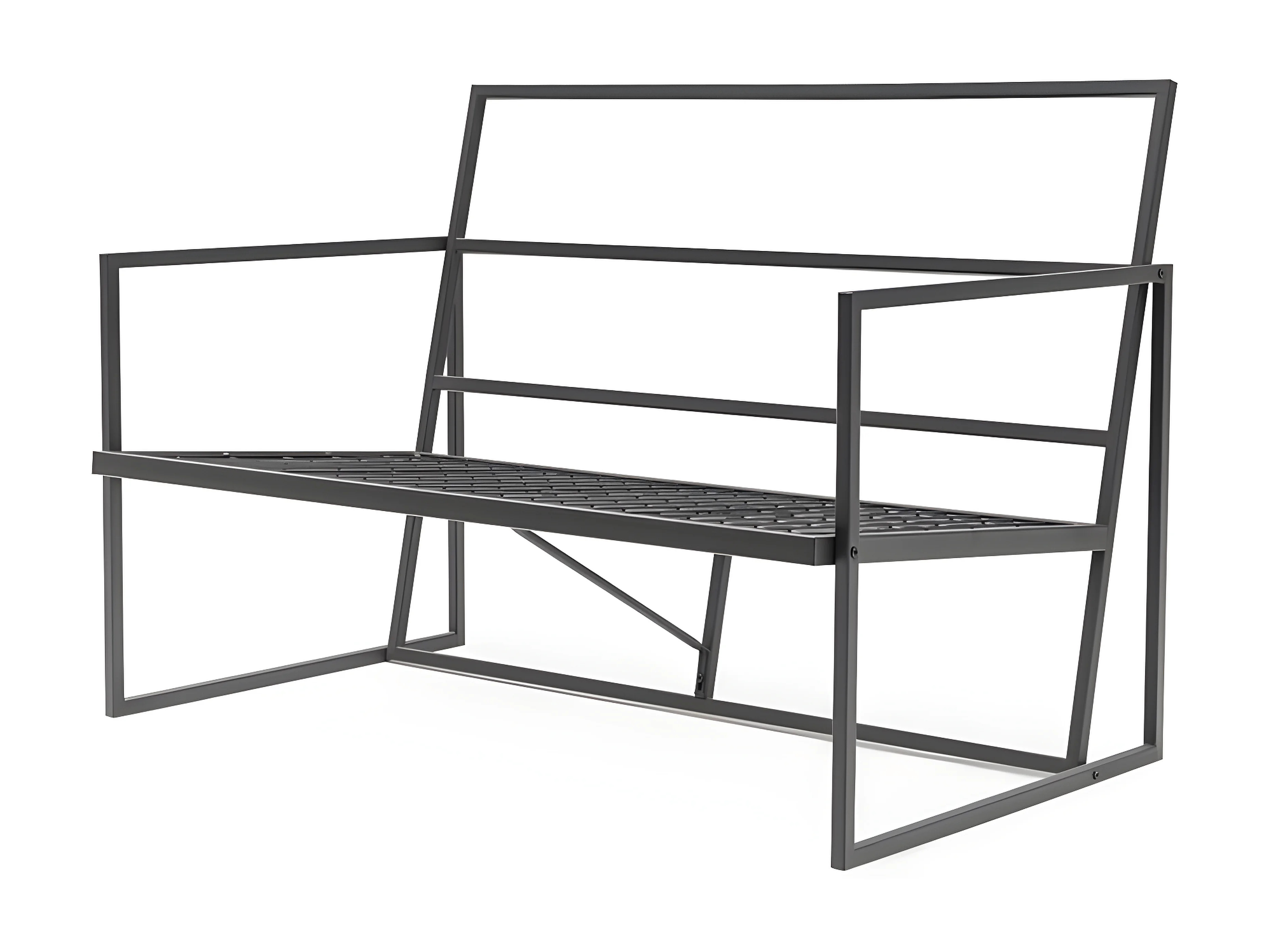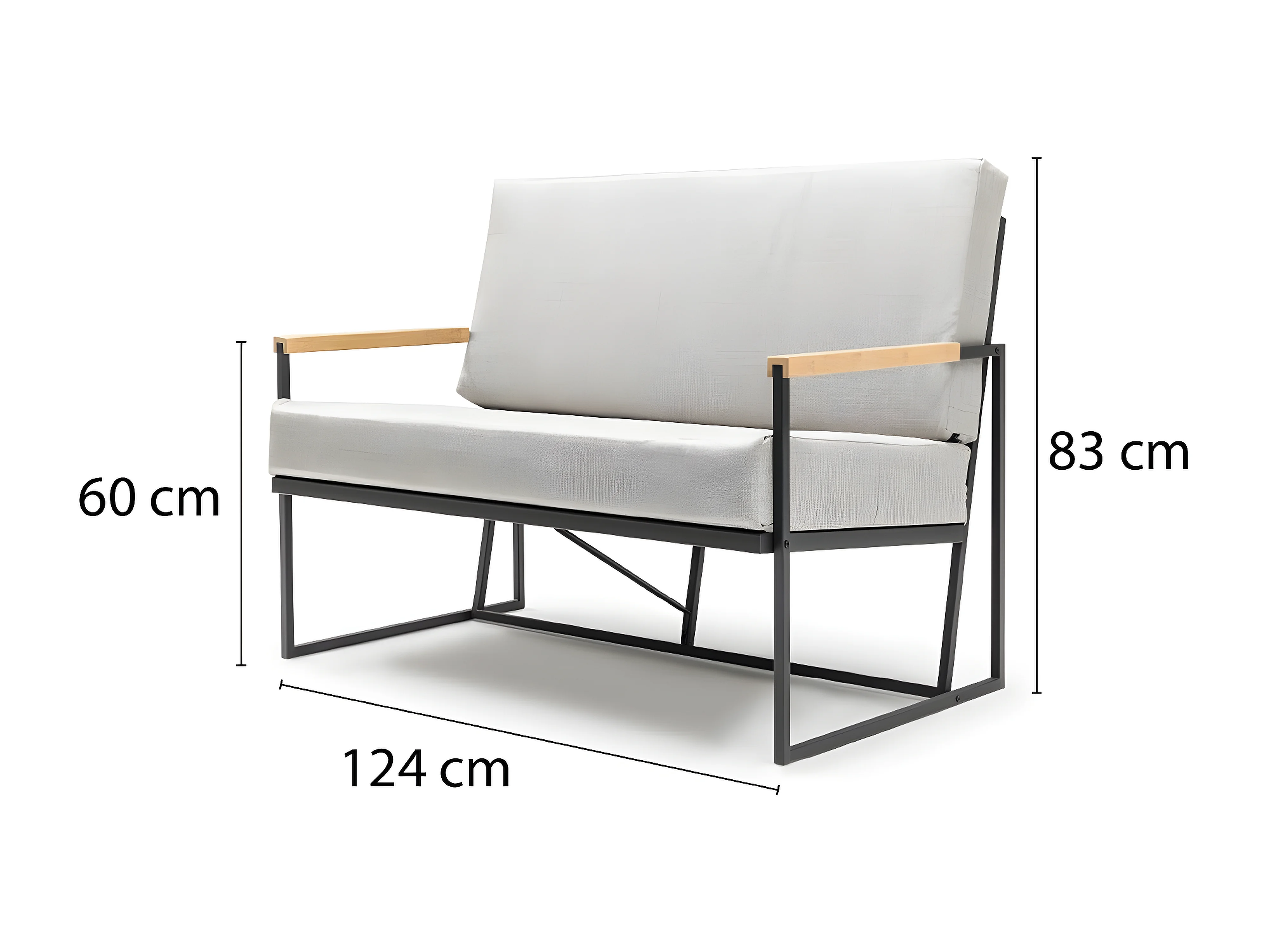 Canapé de Jardin minimaliste 2 Places Akayni Lin Beige et Métal Noir