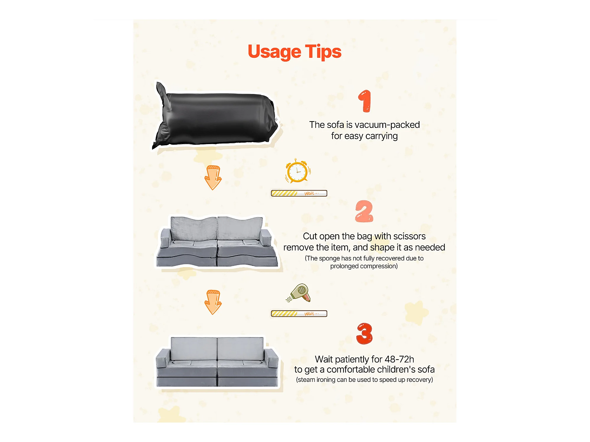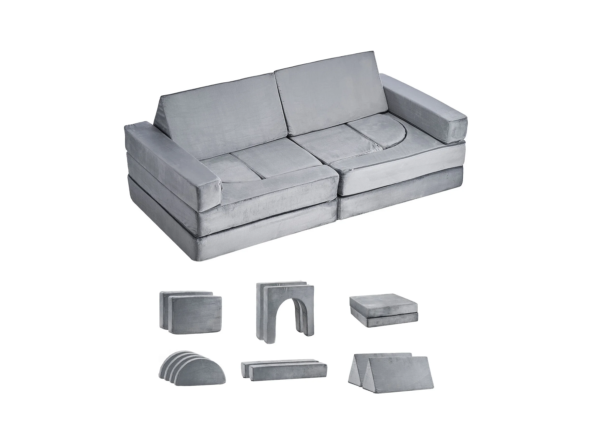Canapé de Jeu Modulaire SucceBuy pour Enfants Composant 14PCs, Canapé Sectionnel Convertible, avec Accoudoirs, en Éponge 28D et Poils Courts, Sofa Tout-petits