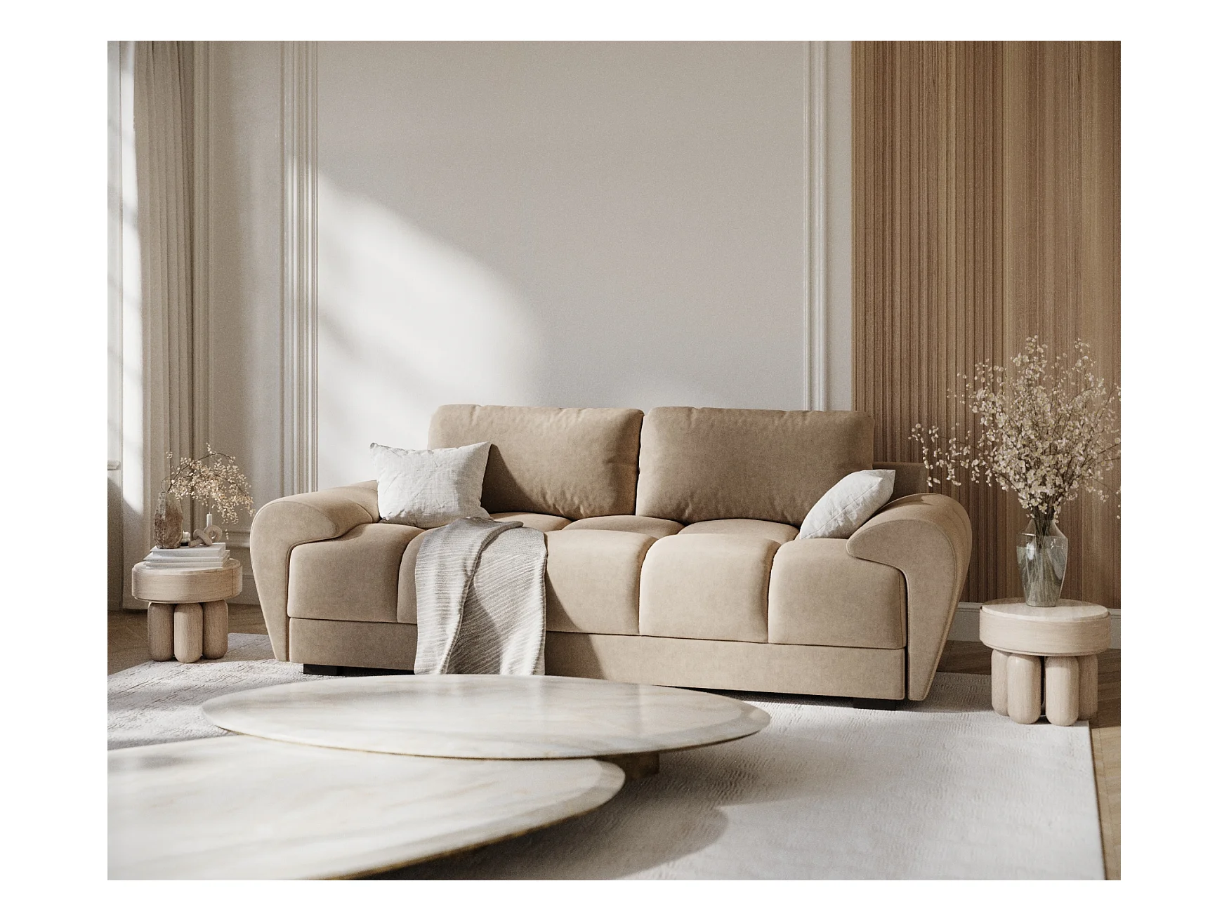 Canapé en tissu velours Peebles - 3 places - beige