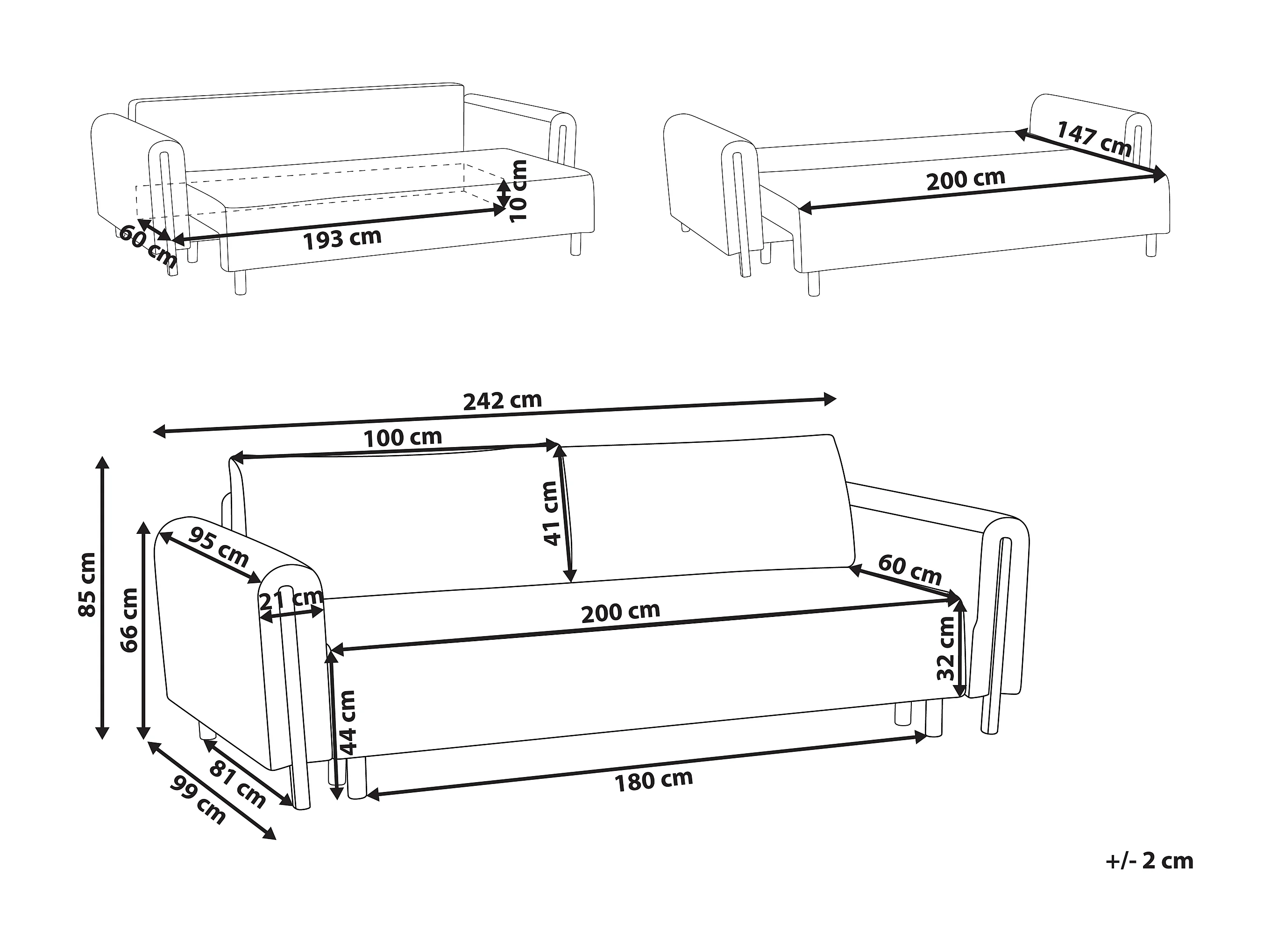 Canapé-lit 3 places KVAM Tissu Gris avec rangement
