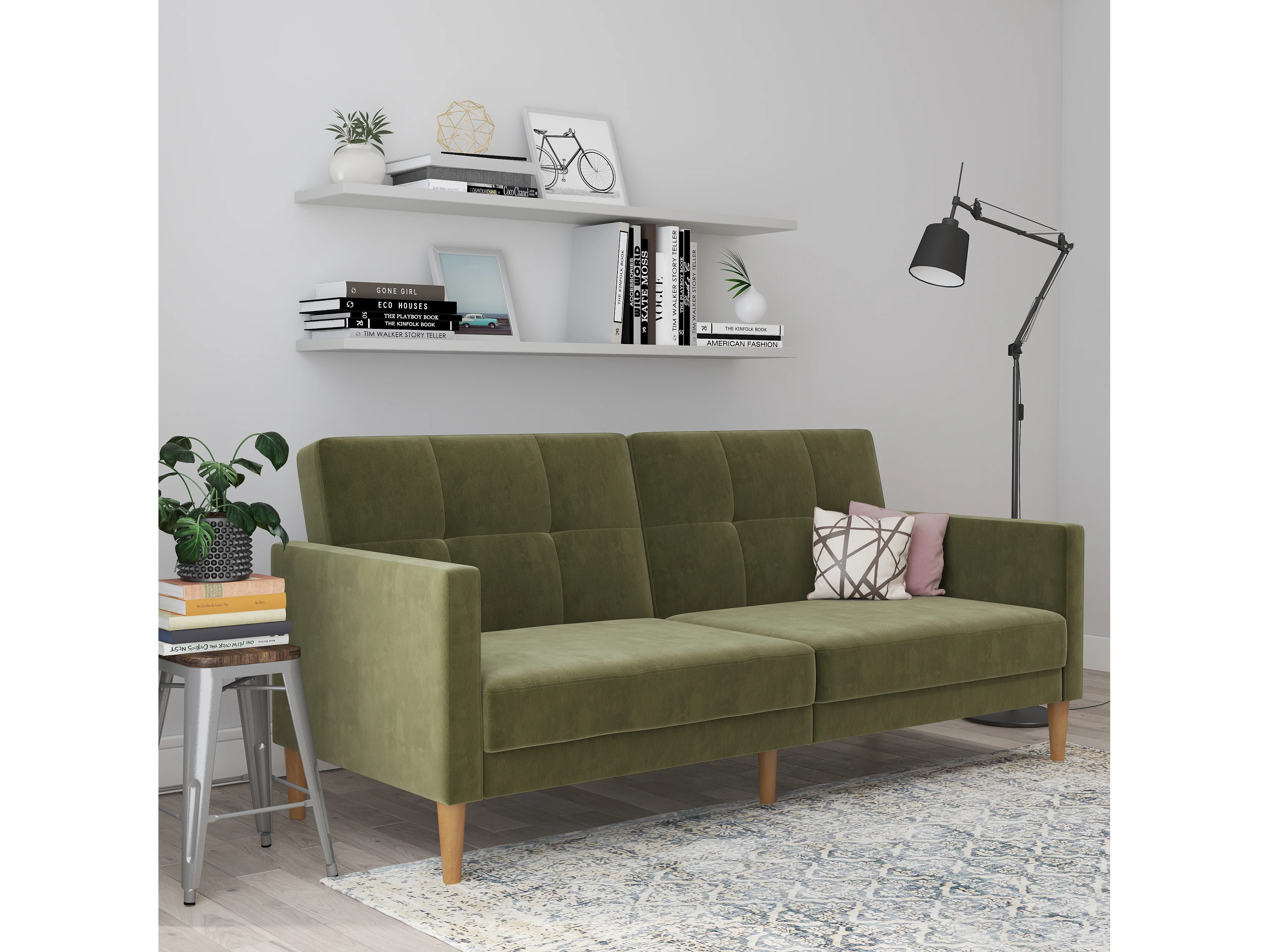 Lilly|Canapé-lit 3 places en velours vert